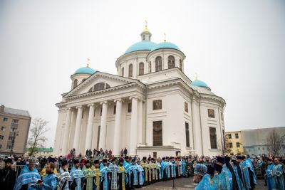 Накануне в Благовещенский собор из Казанско-Богородицкого мужского монастыря был доставлен чтимый образ Пресвятой Богородицы «Казанская».