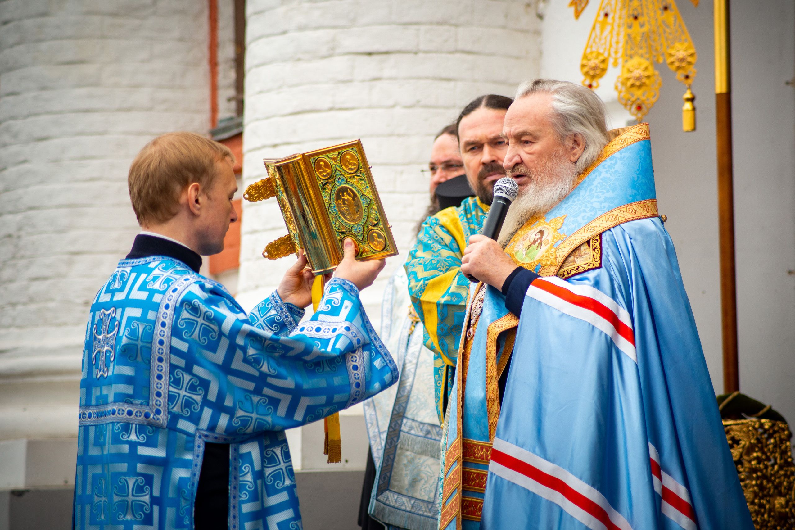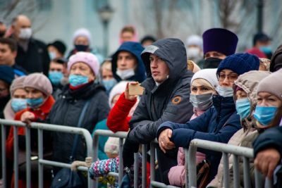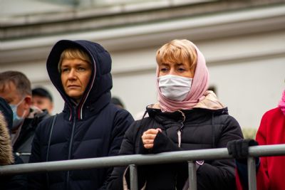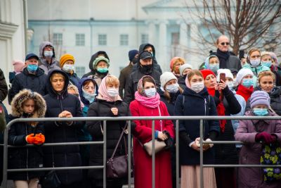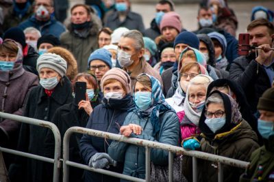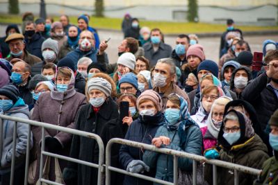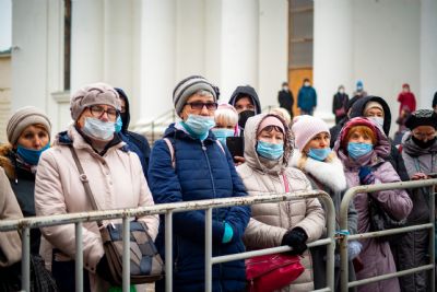 Весь мир в тревоге — COVID. Ищут учёные разных стран вакцину. Конечно, это правильно, конечно, надо беречься от болезни. Но мы, верующие люди, говорим: «Уже есть вакцина». Это вера нашего народа, это обращение народа к историческим нравственным и религиозным корням. Посмотрите на наших верующих. Мы — законопослушные и разумные люди, во множестве пришли сюда, стоим в масках. А сердца наши обращены сейчас к Той, Которая всегда была заступницей усердной рода христианского.