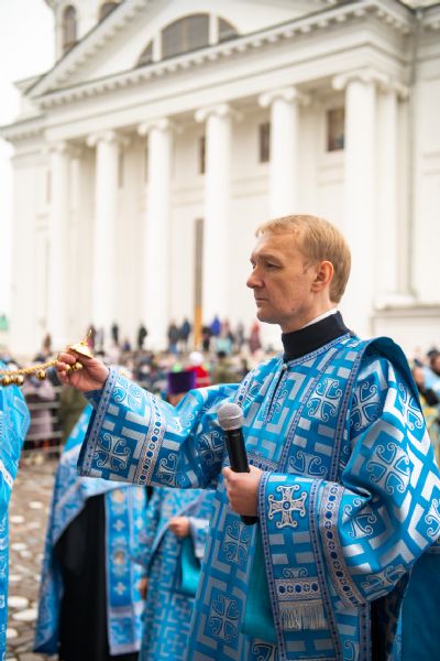 По окончании Литургии глава митрополии поздравил духовенство и мирян с праздником.