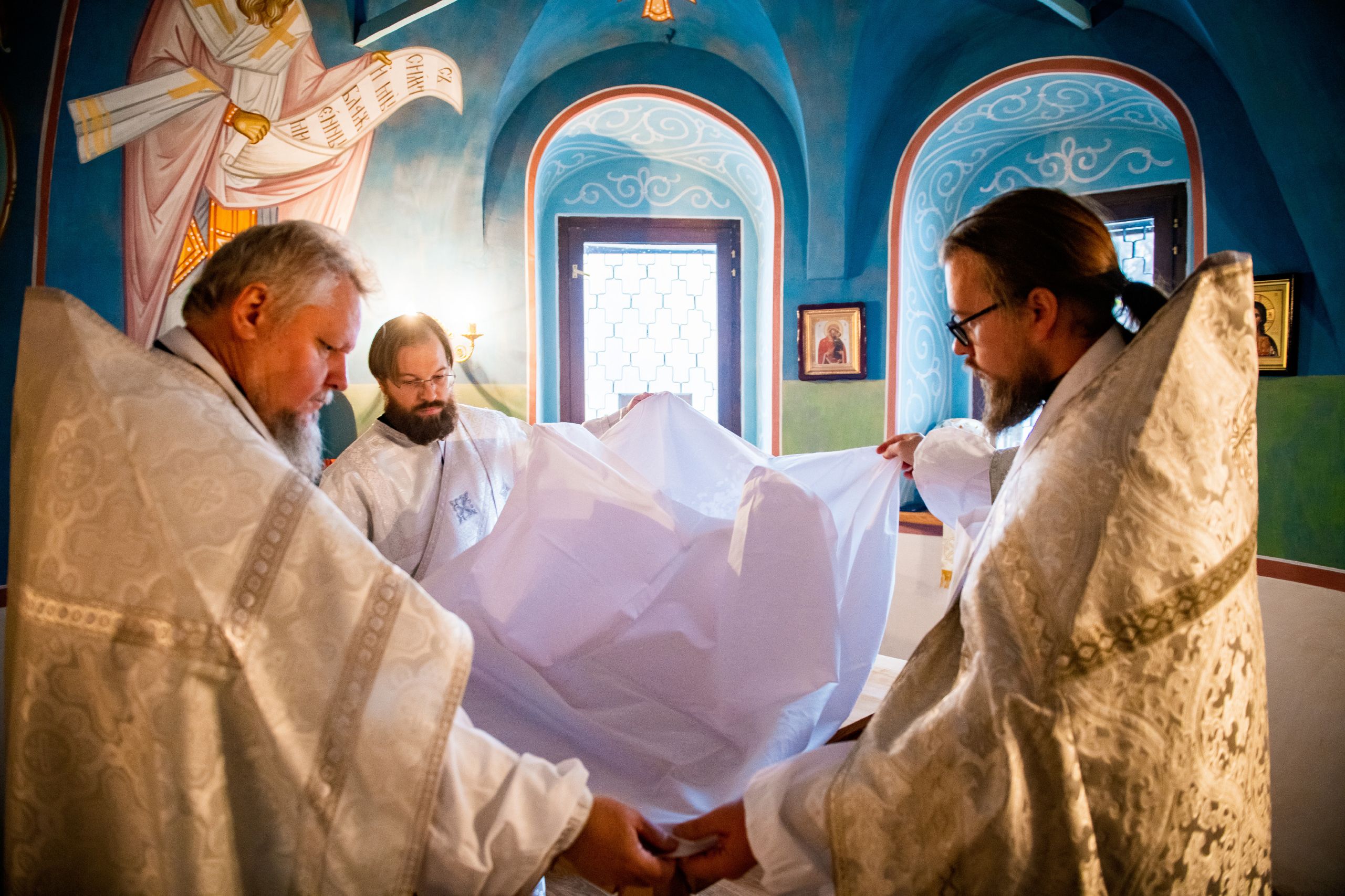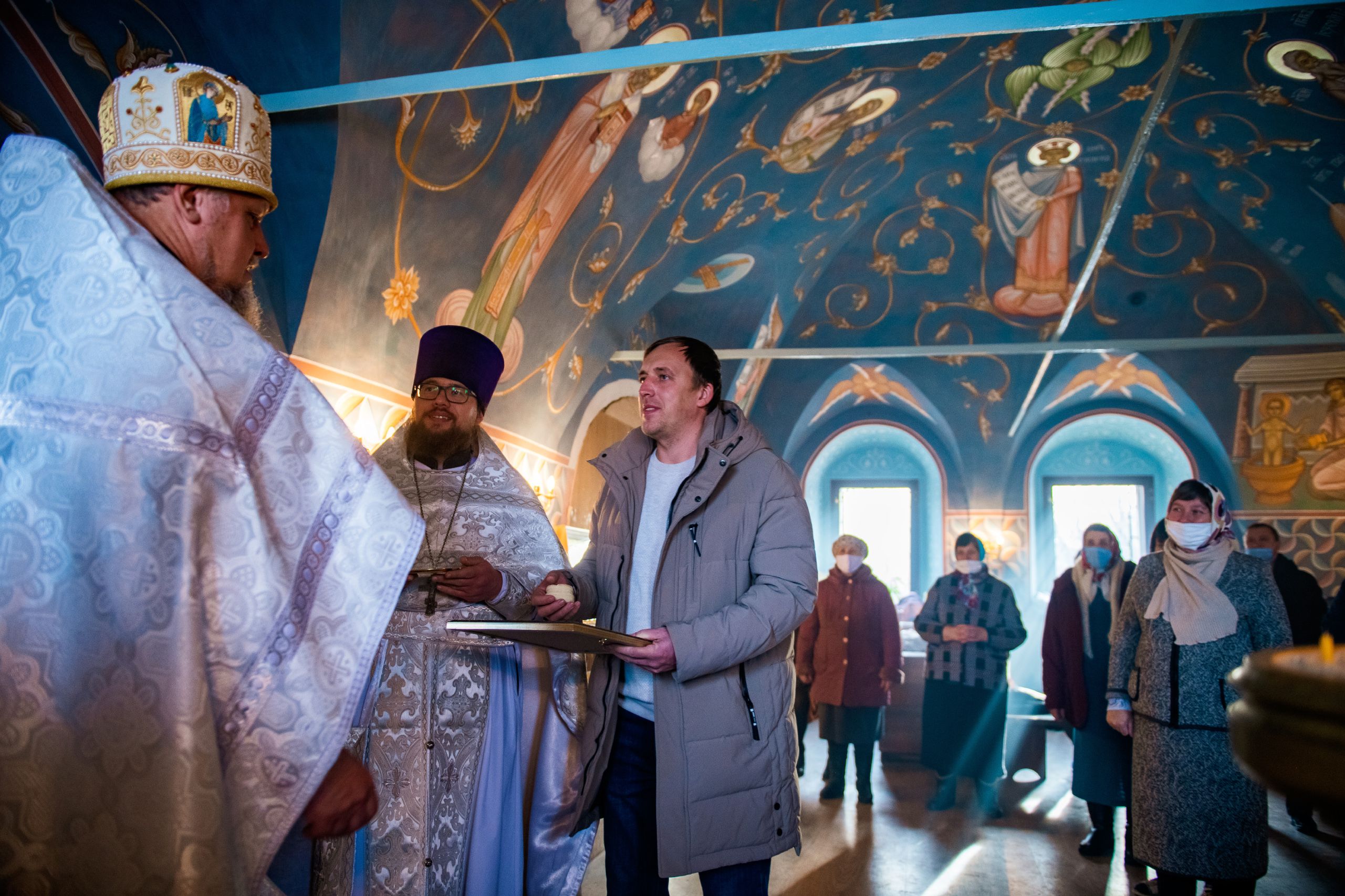 От имени митрополита Феофана отец Владимир выразил благодарность меценату Роману Тарасову, который инициировал восстановление церкви и материально обеспечивает проведение всех реставрационных работ.