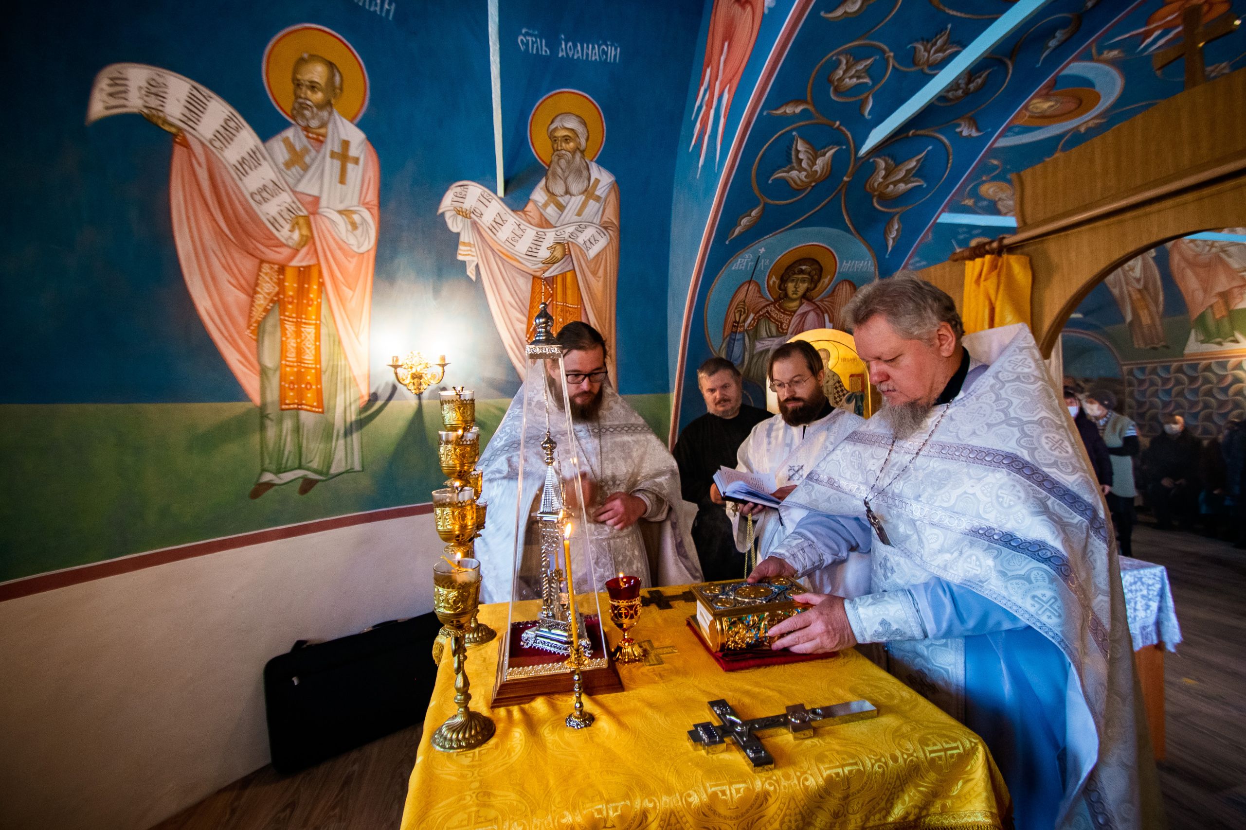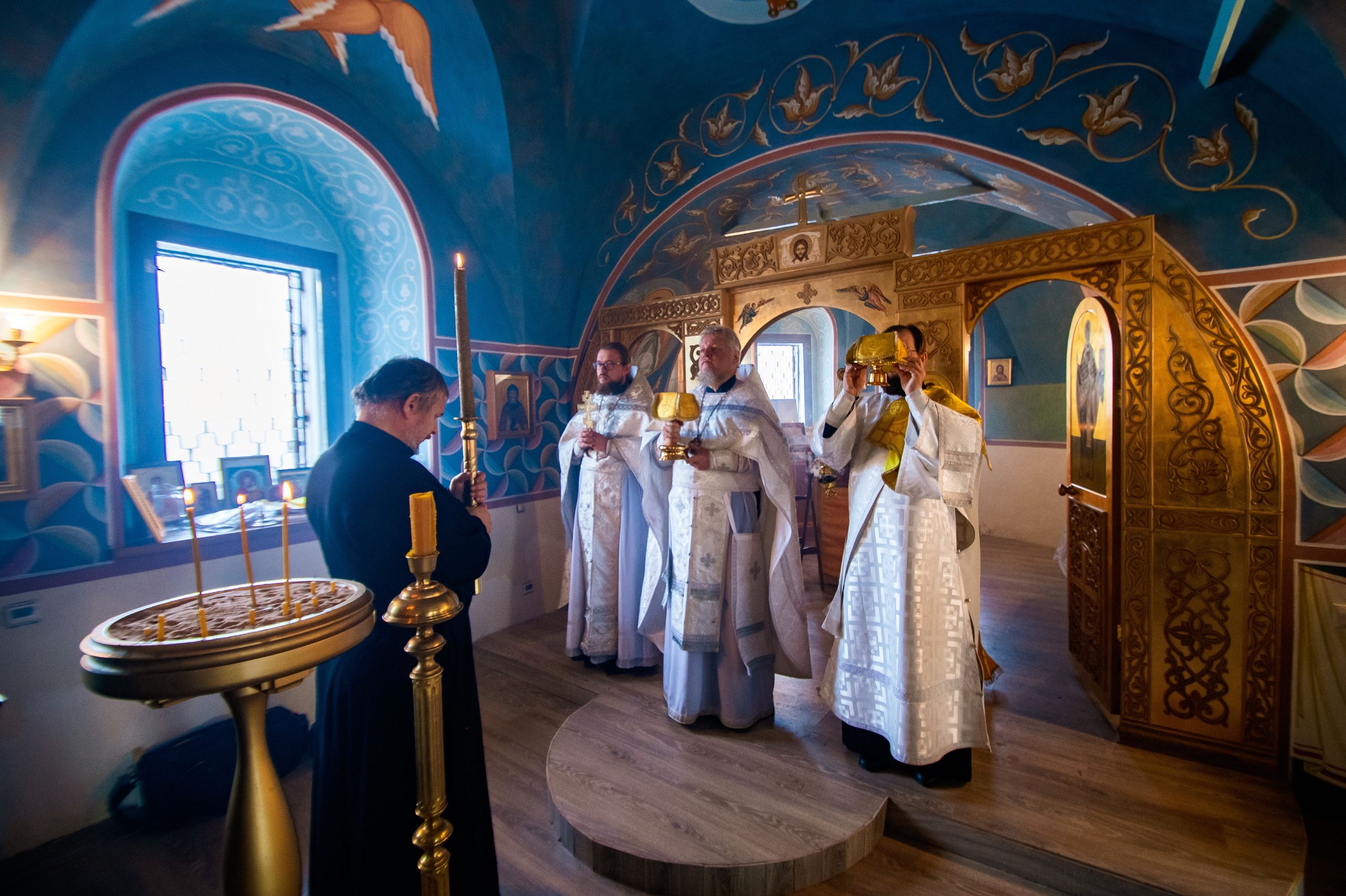 По благословению митрополита Казанского и Татарстанского Феофана освящение храма иерейским чином и Божественную литургию в новоосвященной церкви совершил протоиерей Владимир Самойленко. Секретарю Казанского епархиального управления сослужил настоятель храма иерей Александр Ермолин. Богослужебные песнопения исполнял малый состав мужского хора Казанско-Богородицкого мужского монастыря под управлением Алексея Федотова.