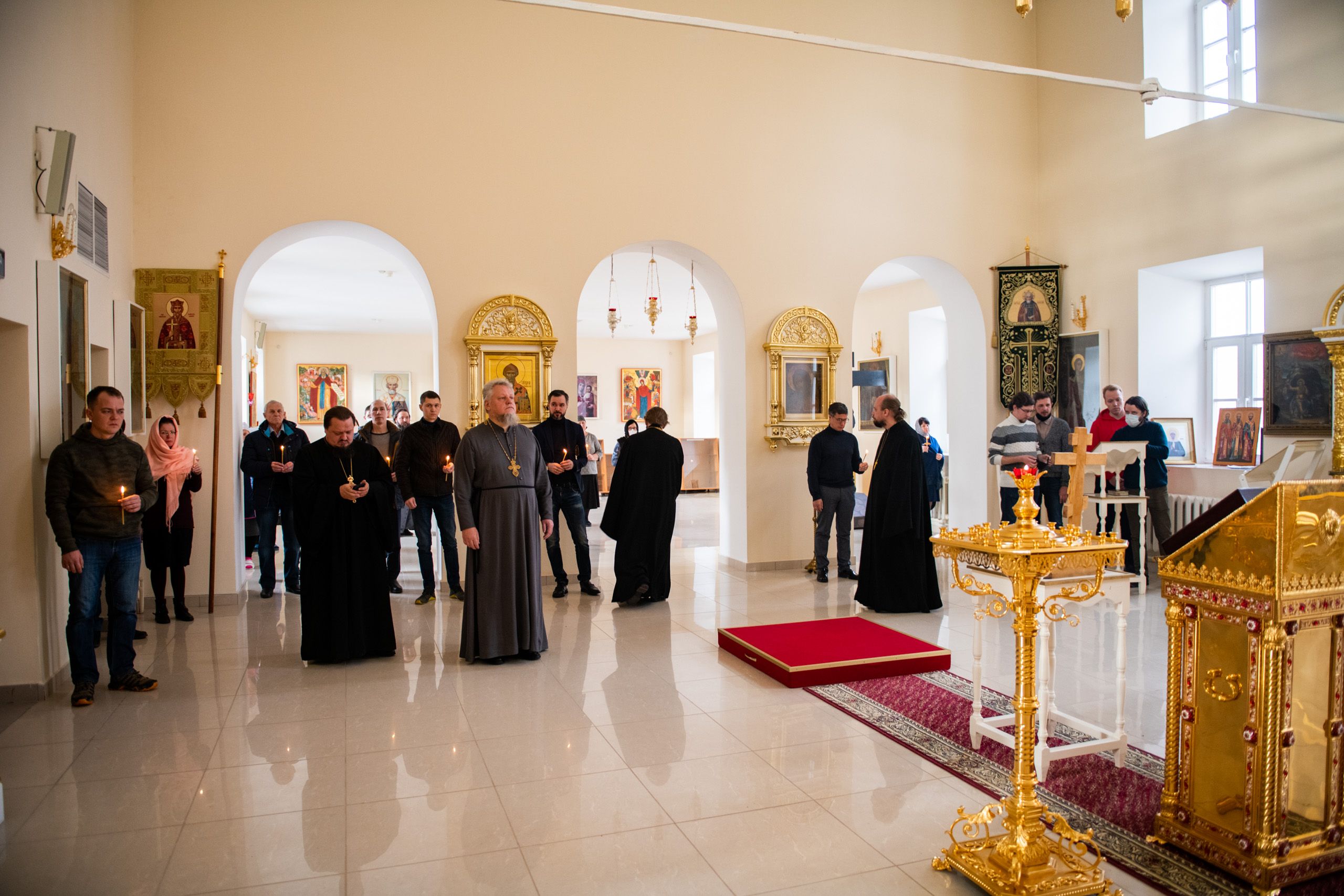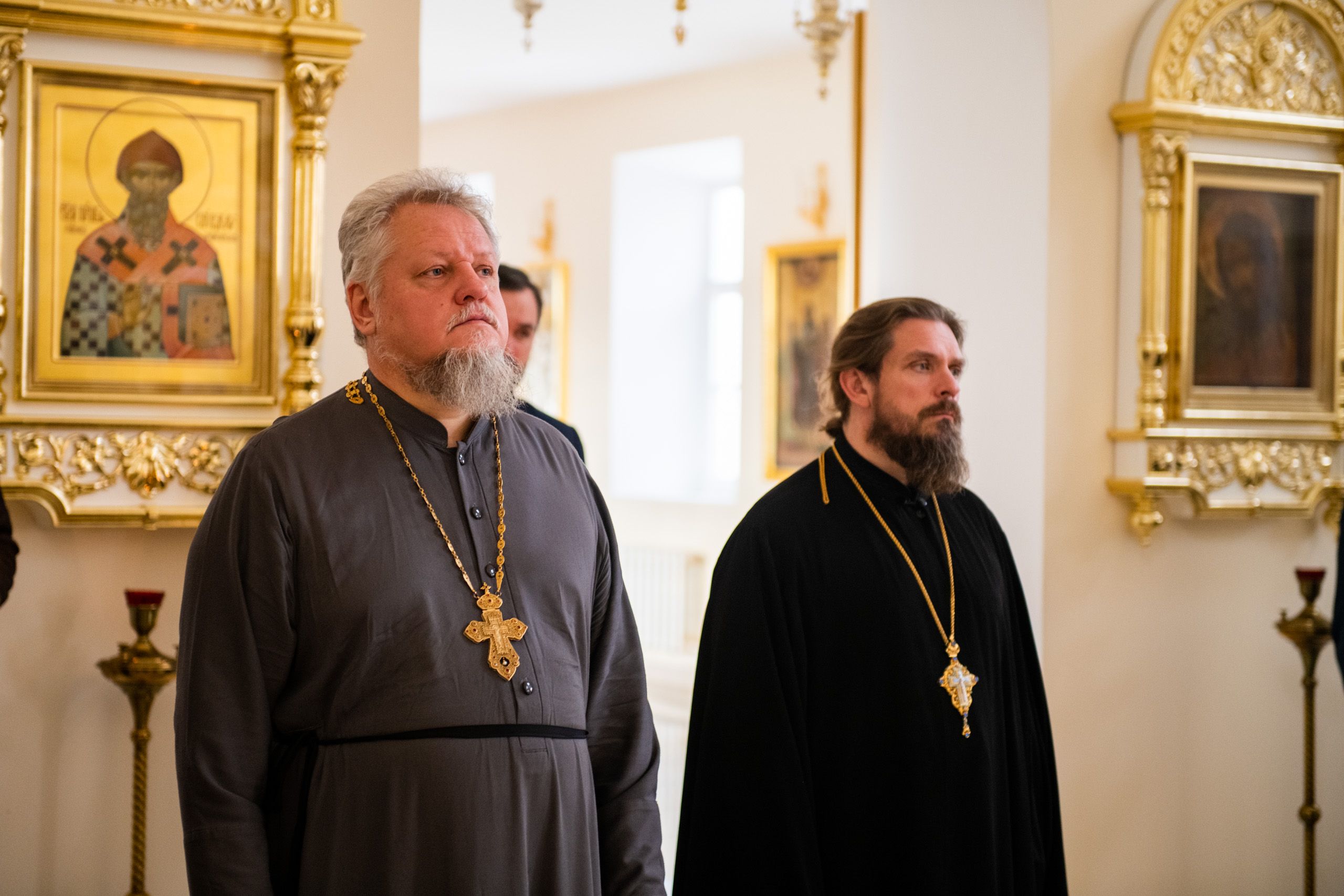 За богослужением молились викарий Казанской епархии епископ Елабужский Иннокентий, секретарь Казанского епархиального управления протоиерей Владимир Самойленко, благочинный I Казанского округа протоиерей Алексий Чубаков, настоятель Богоявленского собора города Казани протоиерей Алексий Державин, заведующий канцелярией Казанской епархии протоиерей Александр Павлов, сотрудники епархиального управления.
