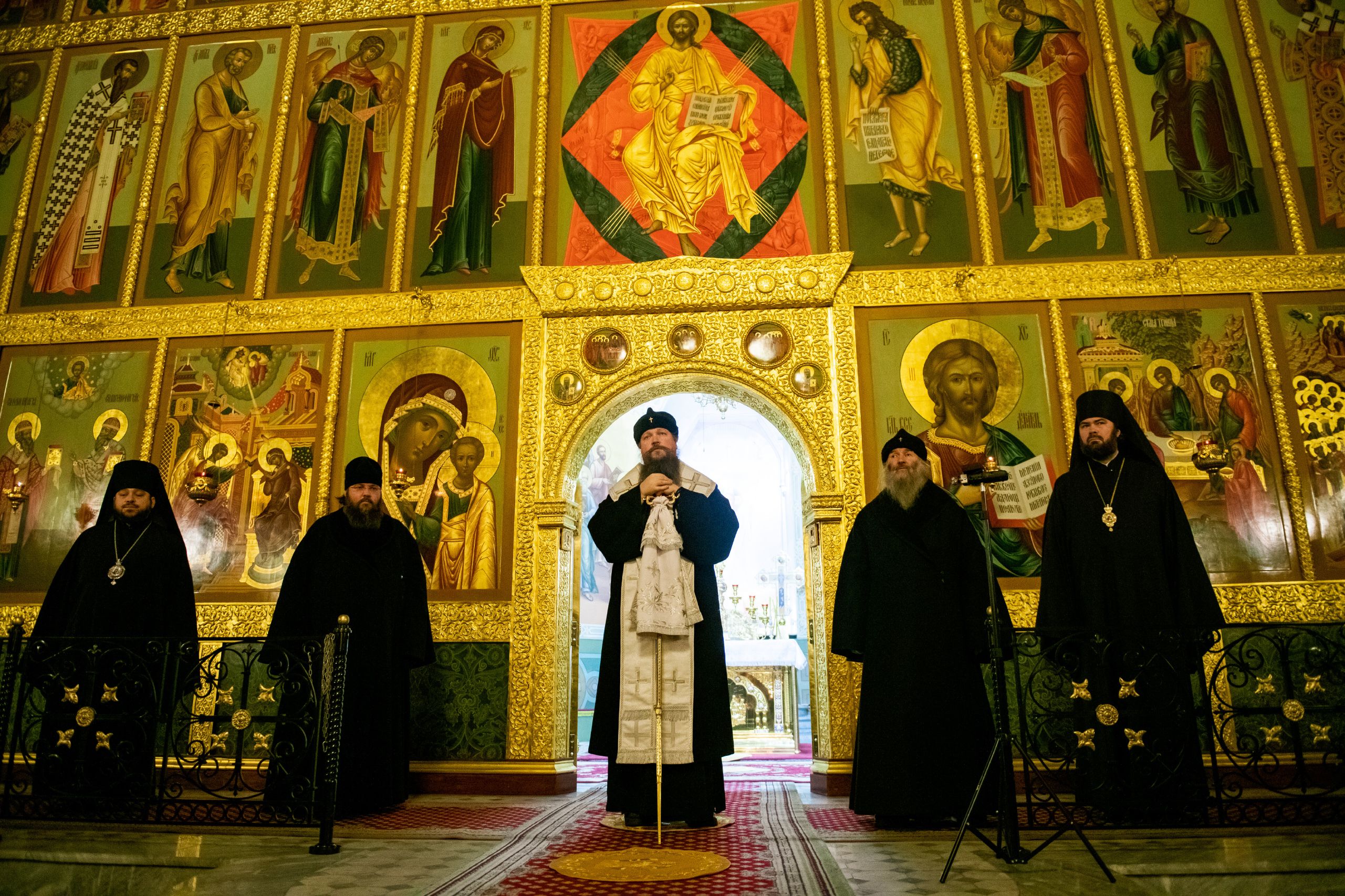 Вечером 21 ноября 2020 года в Благовещенский кафедральный собор прибыл управляющий делами Московской Патриархии митрополит Воскресенский Дионисий.
