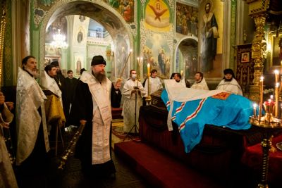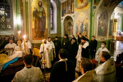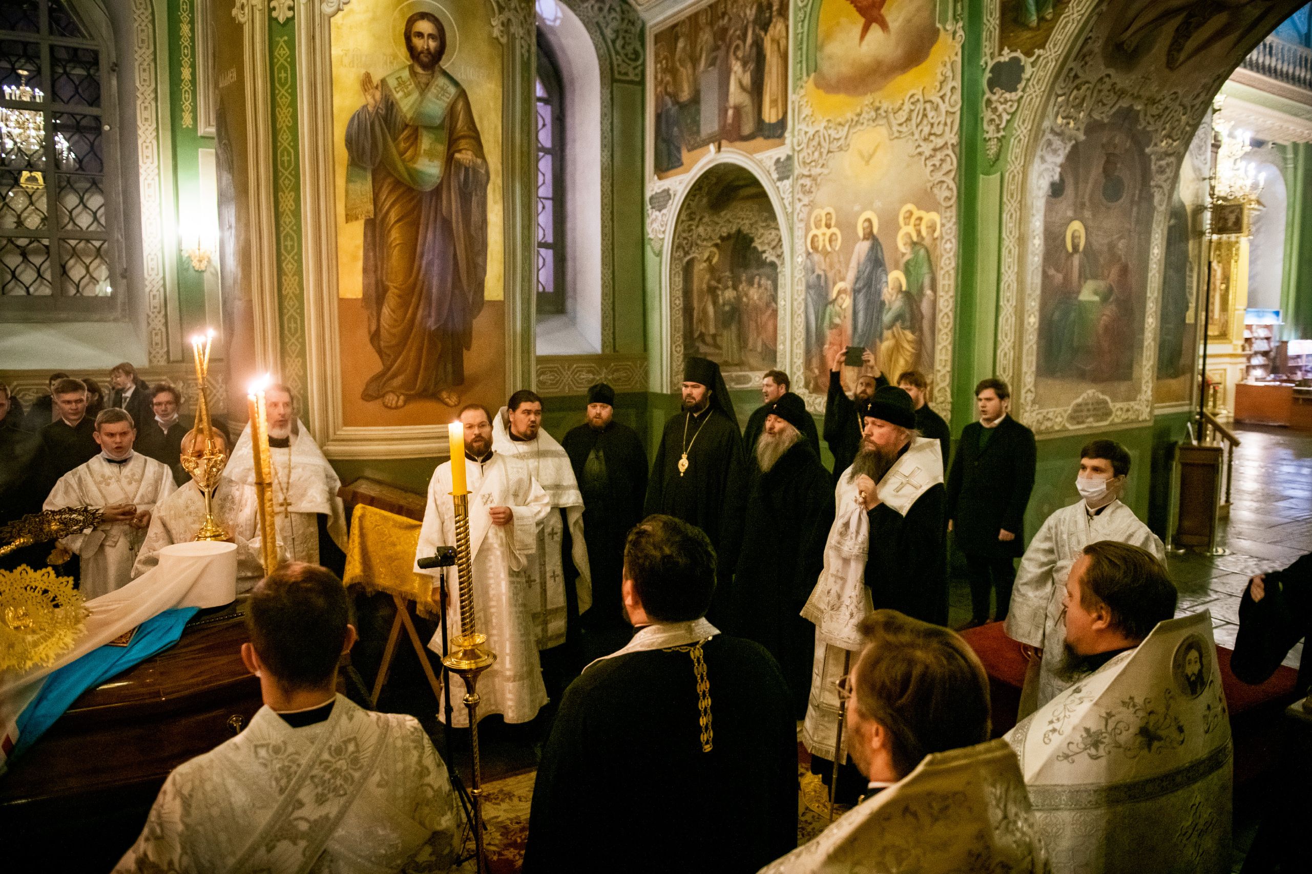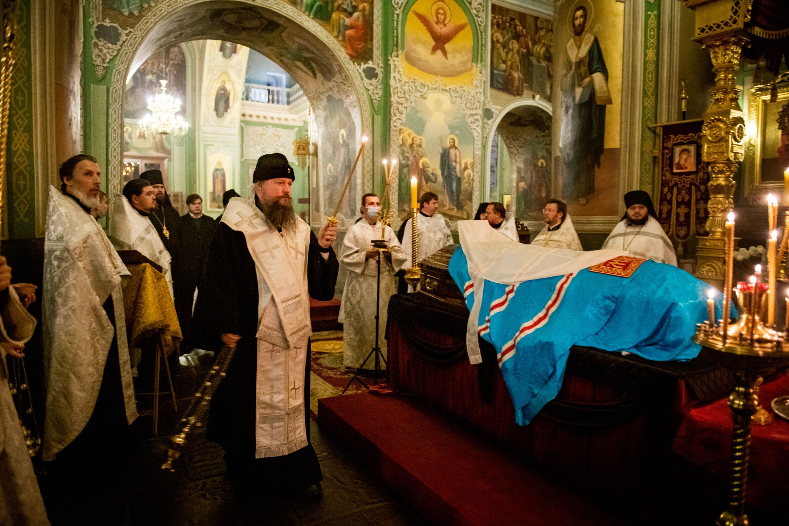 Его Высокопреосвященство в сослужении казанского духовенства совершил панихиду над гробом почившего митрополита Казанского и Татарстанского Феофана.