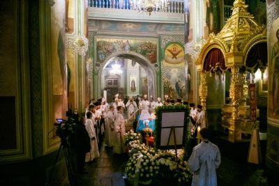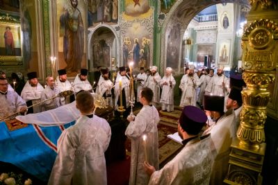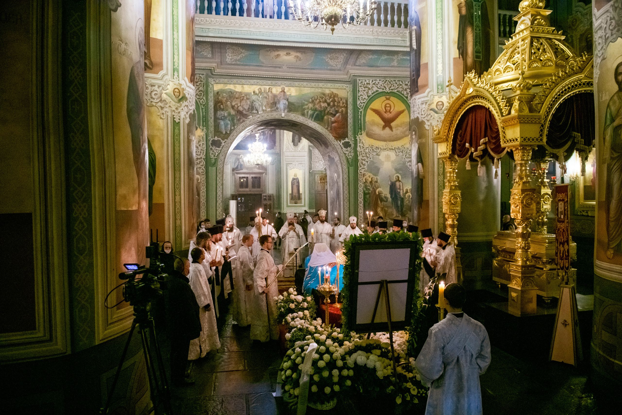 На утрене архипастыри и духовенство совершили панихиду с чтением 17-й кафизмы и пением канона об усопшем.