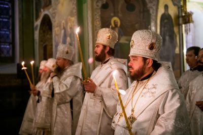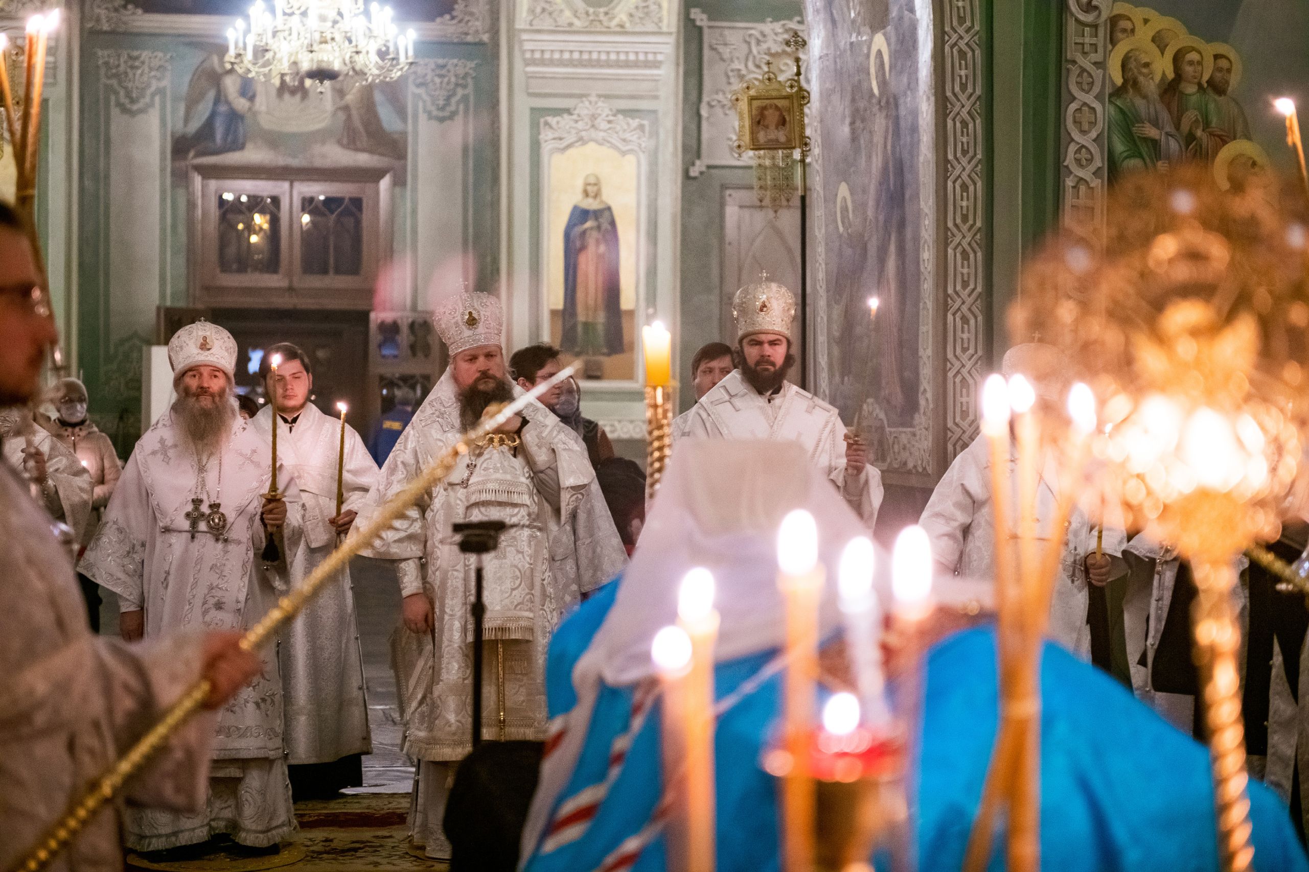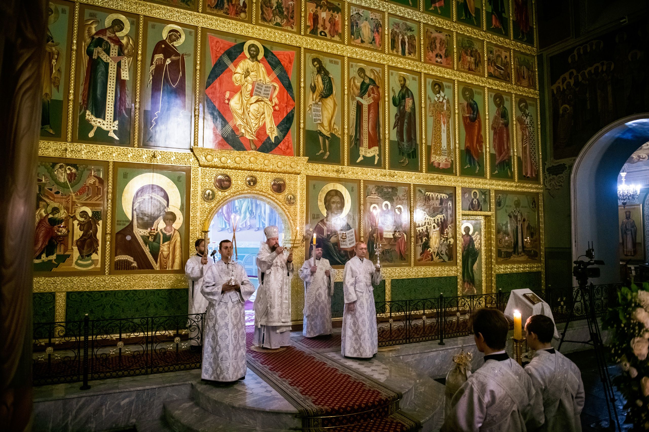 Богослужение возглавил управляющий делами Московской Патриархии митрополит Воскресенский Дионисий. Его Высокопреосвященству сослужили временный управляющий Казанской епархией митрополит Йошкар-Олинский Иоанн, архиепископ Пятигорский и Черкесский Феофилакт, архипастыри Татарстанской митрополии — епископ Альметьевский и Бугульминский Мефодий, епископ Елабужский Иннокентий, епископ Чистопольский и Нижнекамский Игнатий, а также настоятели храмов столицы Татарстана.