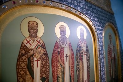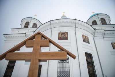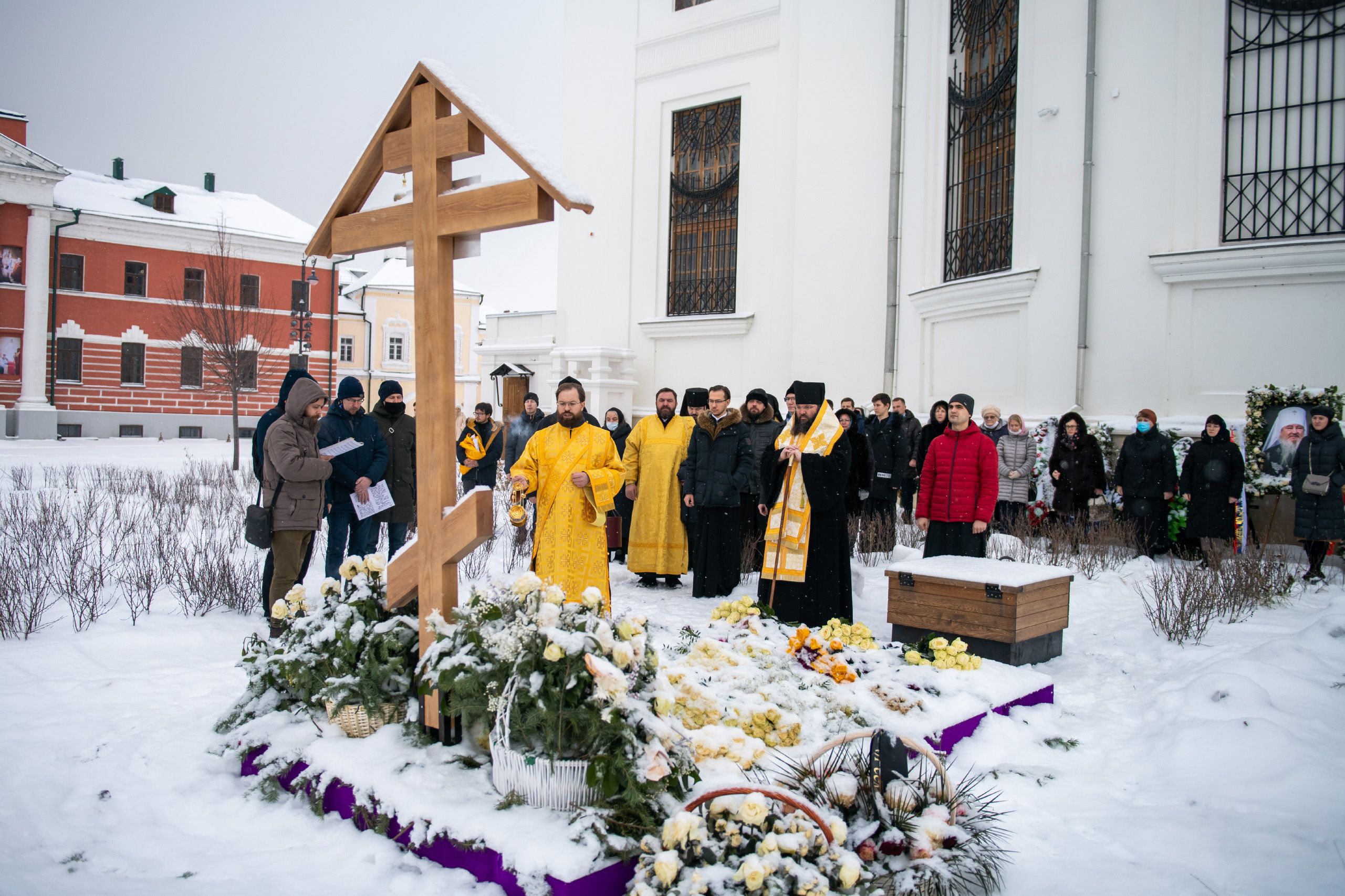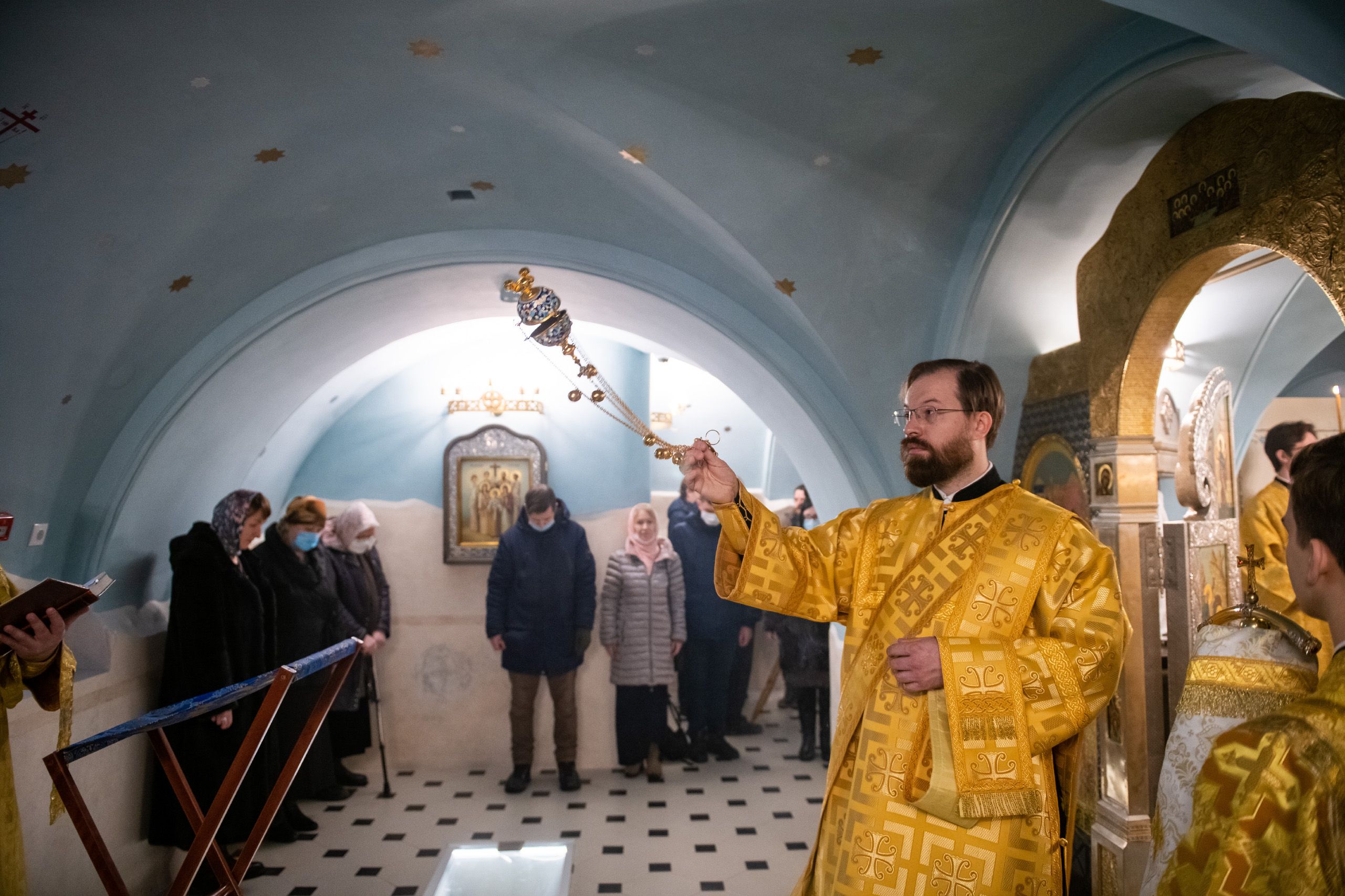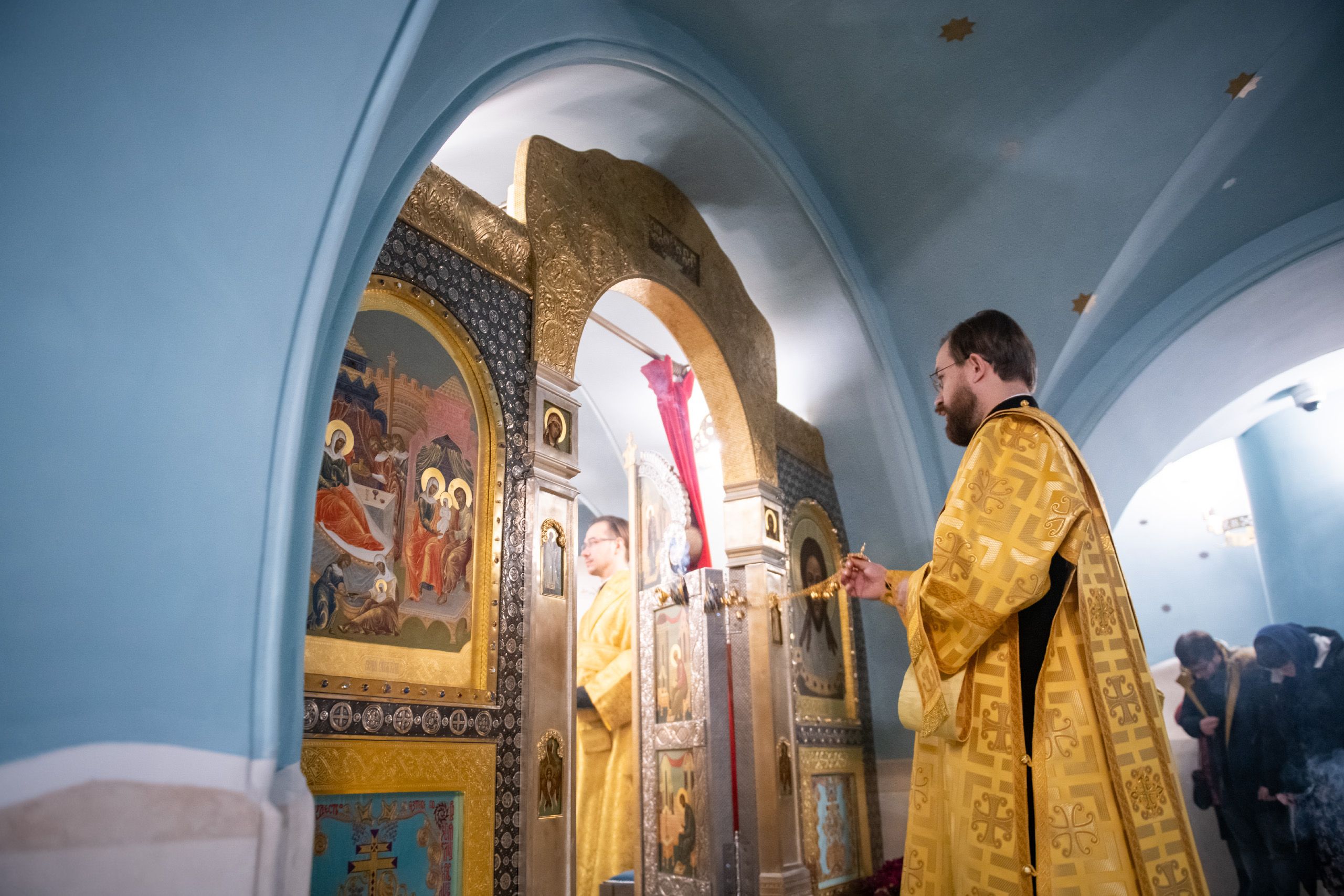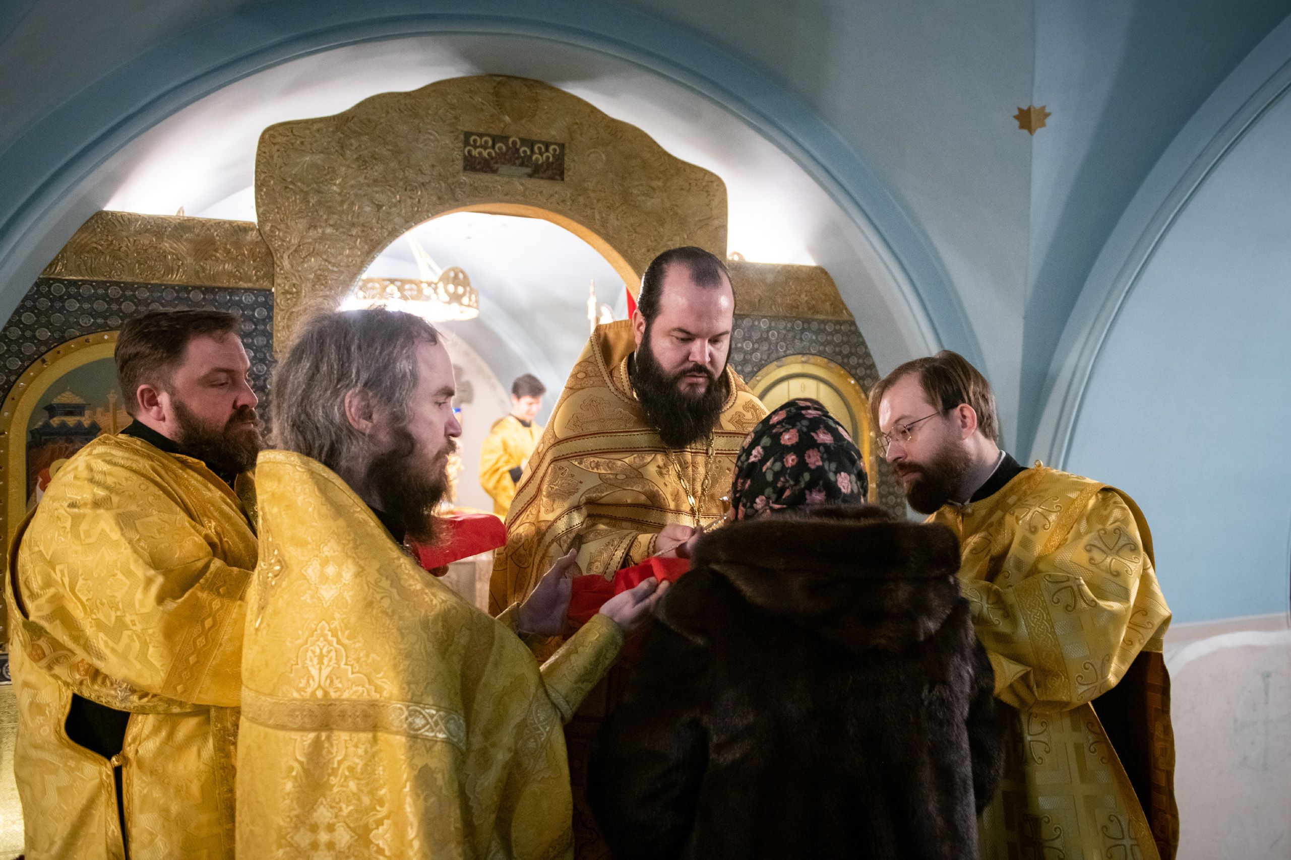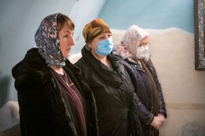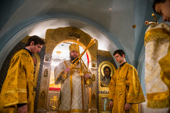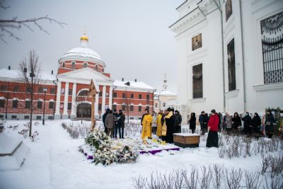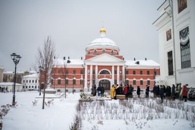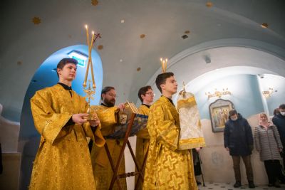 Богослужебные песнопения исполнялись мужским хором Казанско-Богородицкого мужского монастыря под управлением Дениса Рогова. В храме молились сотрудники епархиального управления.