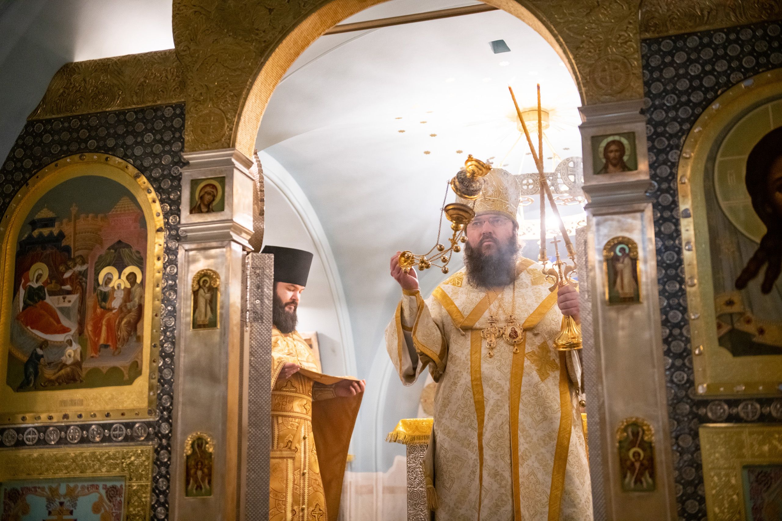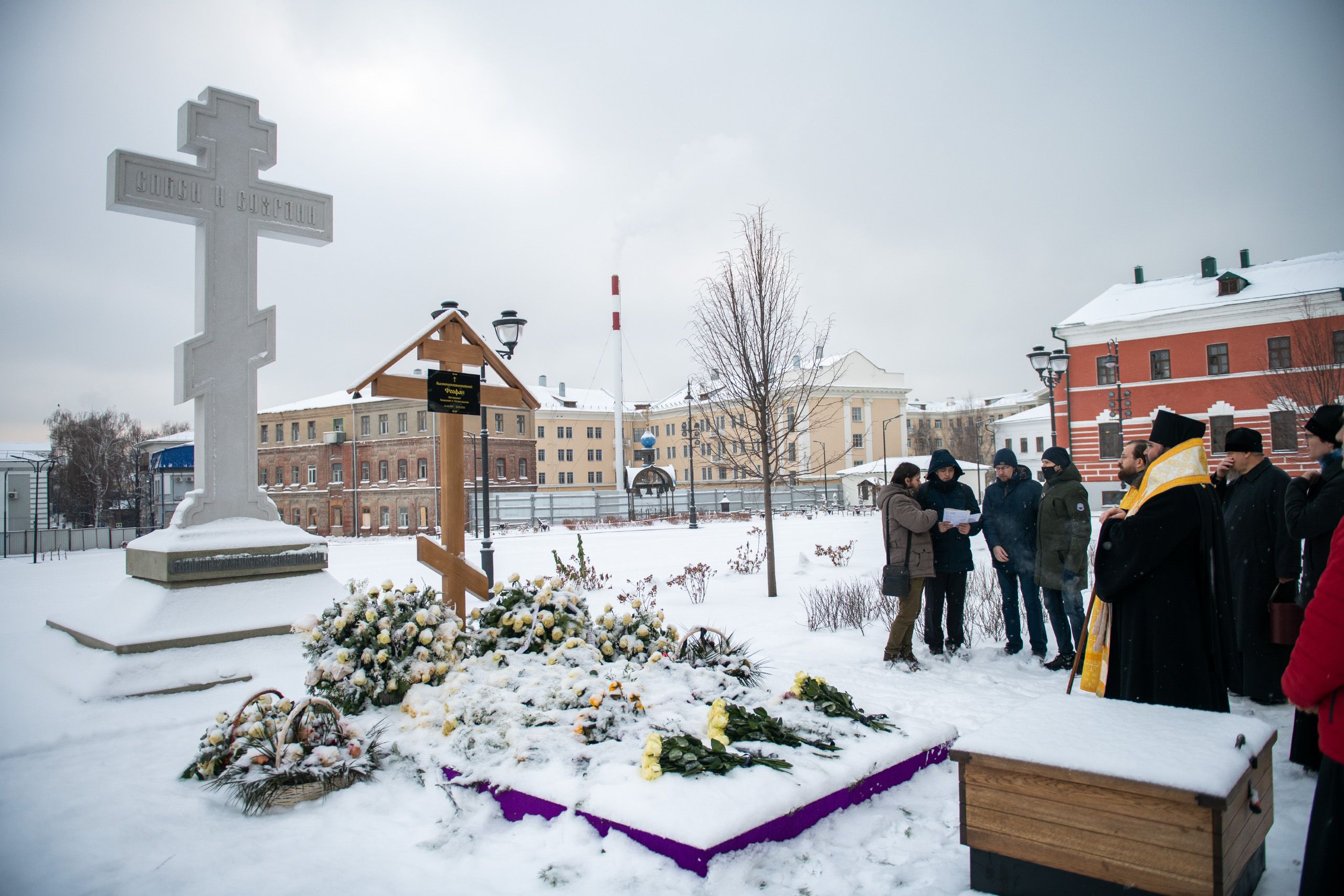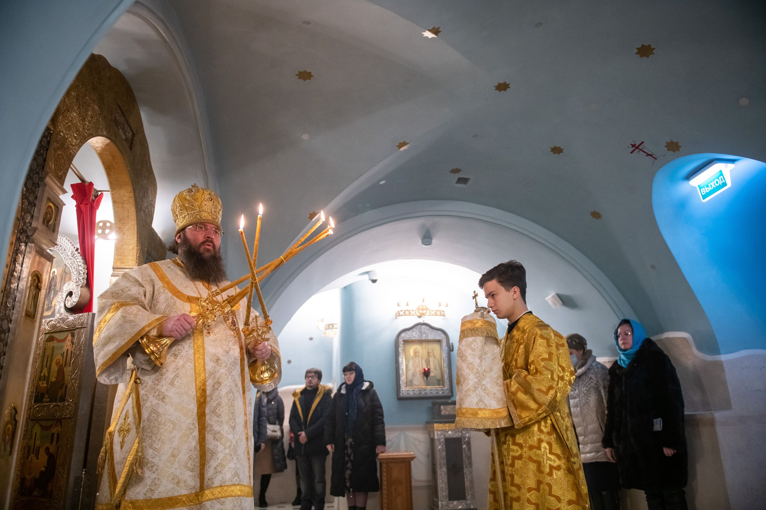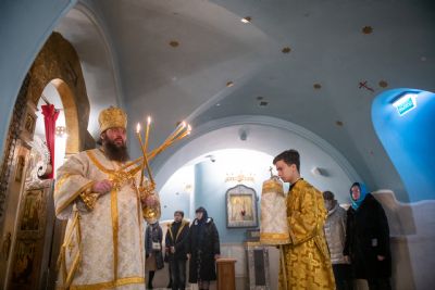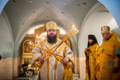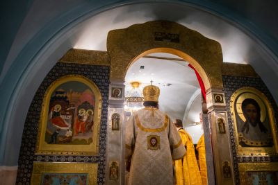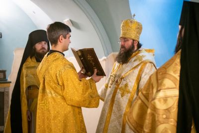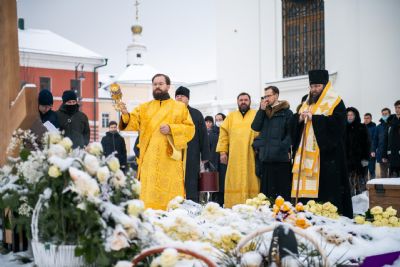 Викарию Казанской епархии сослужили секретарь Казанского епархиального управления протоиерей Владимир Самойленко и наместник Казанско-Богородицкого мужского монастыря игумен Марк (Виленский).