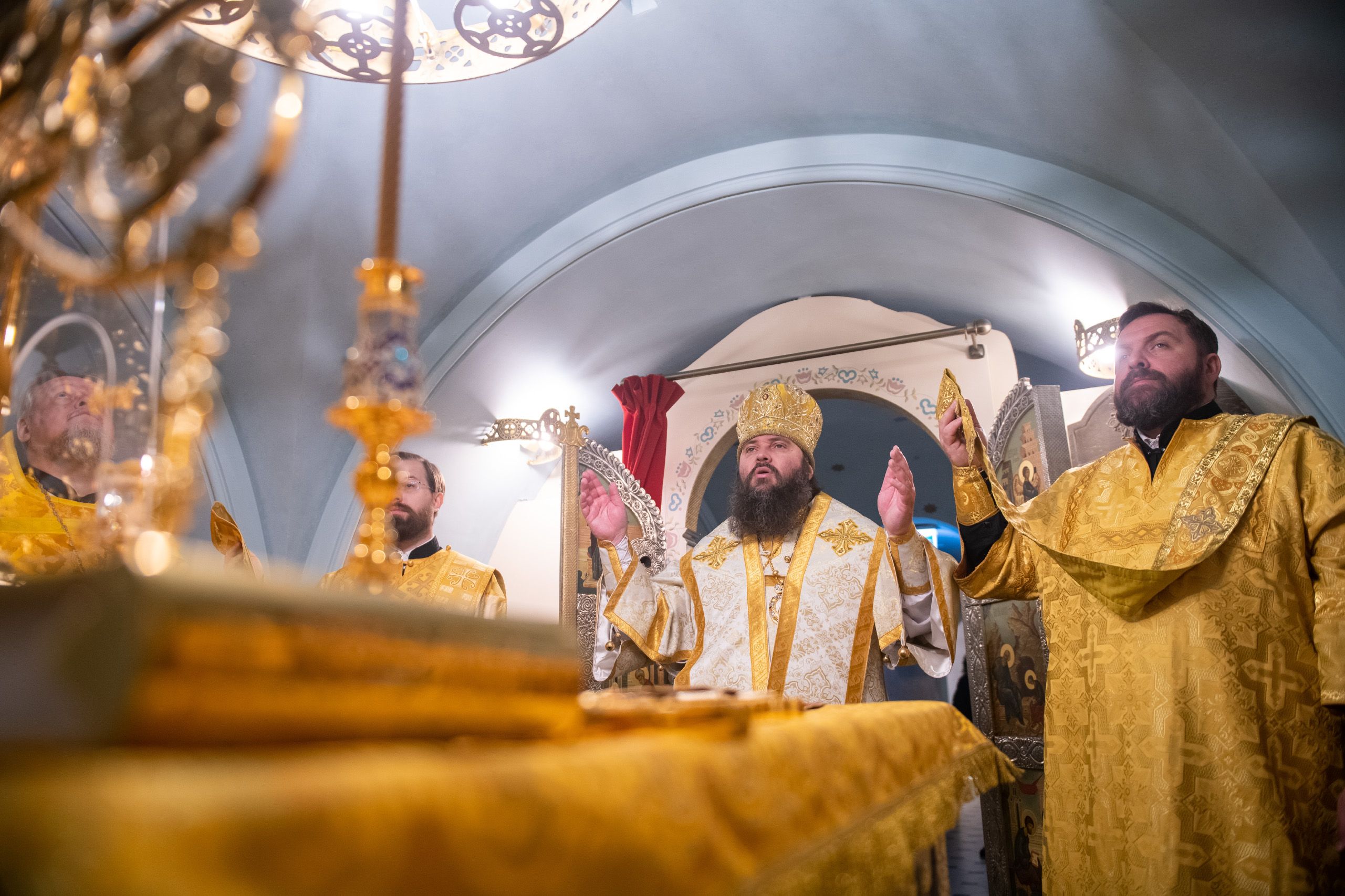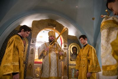 За Литургией была возглашена сугубая заупокойная ектения о новопреставленном митрополите Феофане.