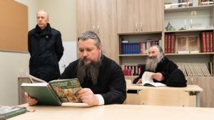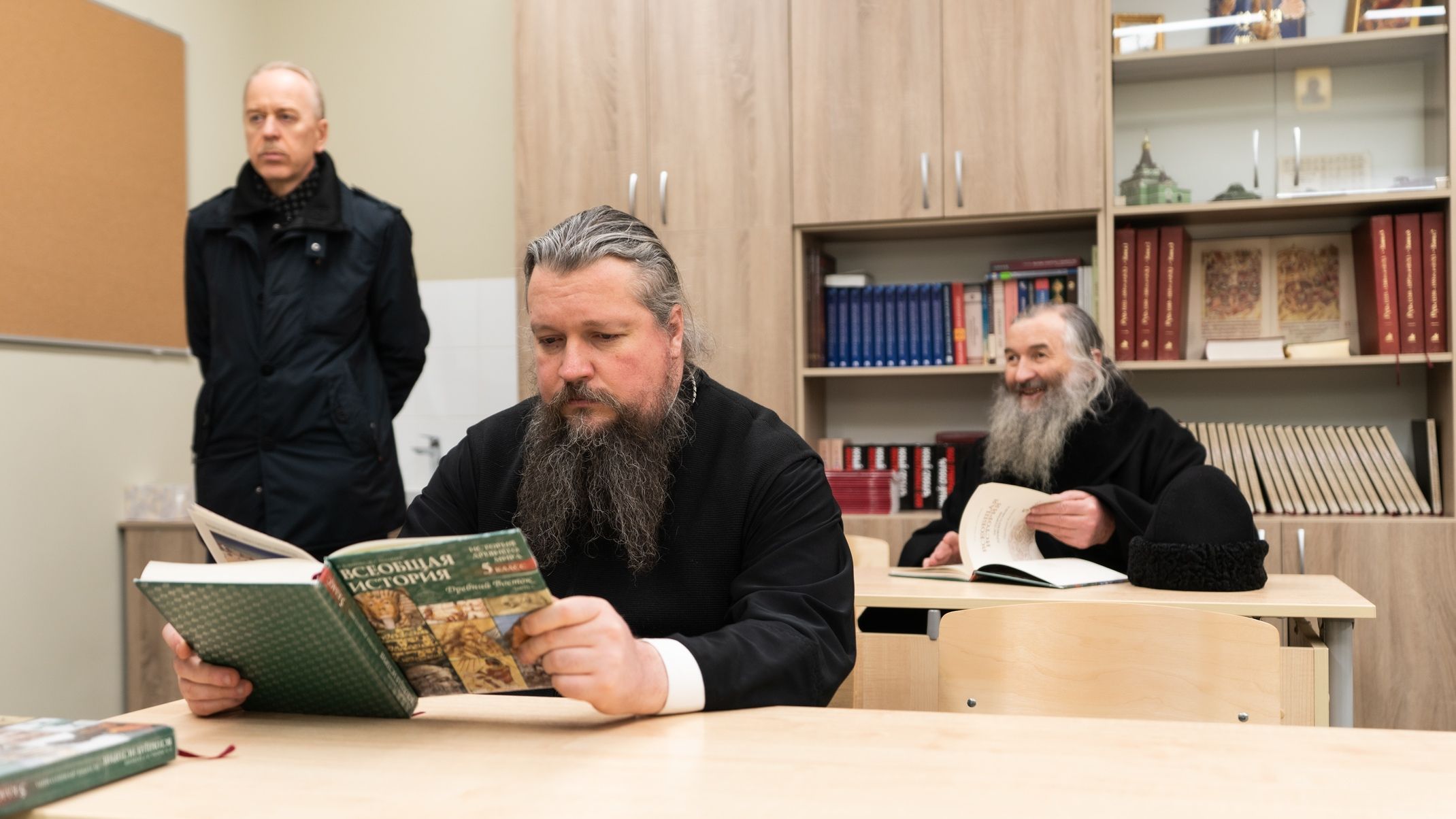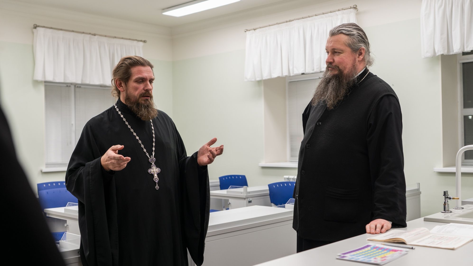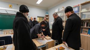 В сопровождении отца Алексия гости осмотрели православную гимназию, посетили классы и пообщались с педагогами. Учителя рассказали об особенностях программы «Русская классическая школа», показали учебные пособия и прописи. Архипастыри также осмотрели актовый и спортивный залы, химическую и физическую лаборатории, где им продемонстрировали наглядные пособия.