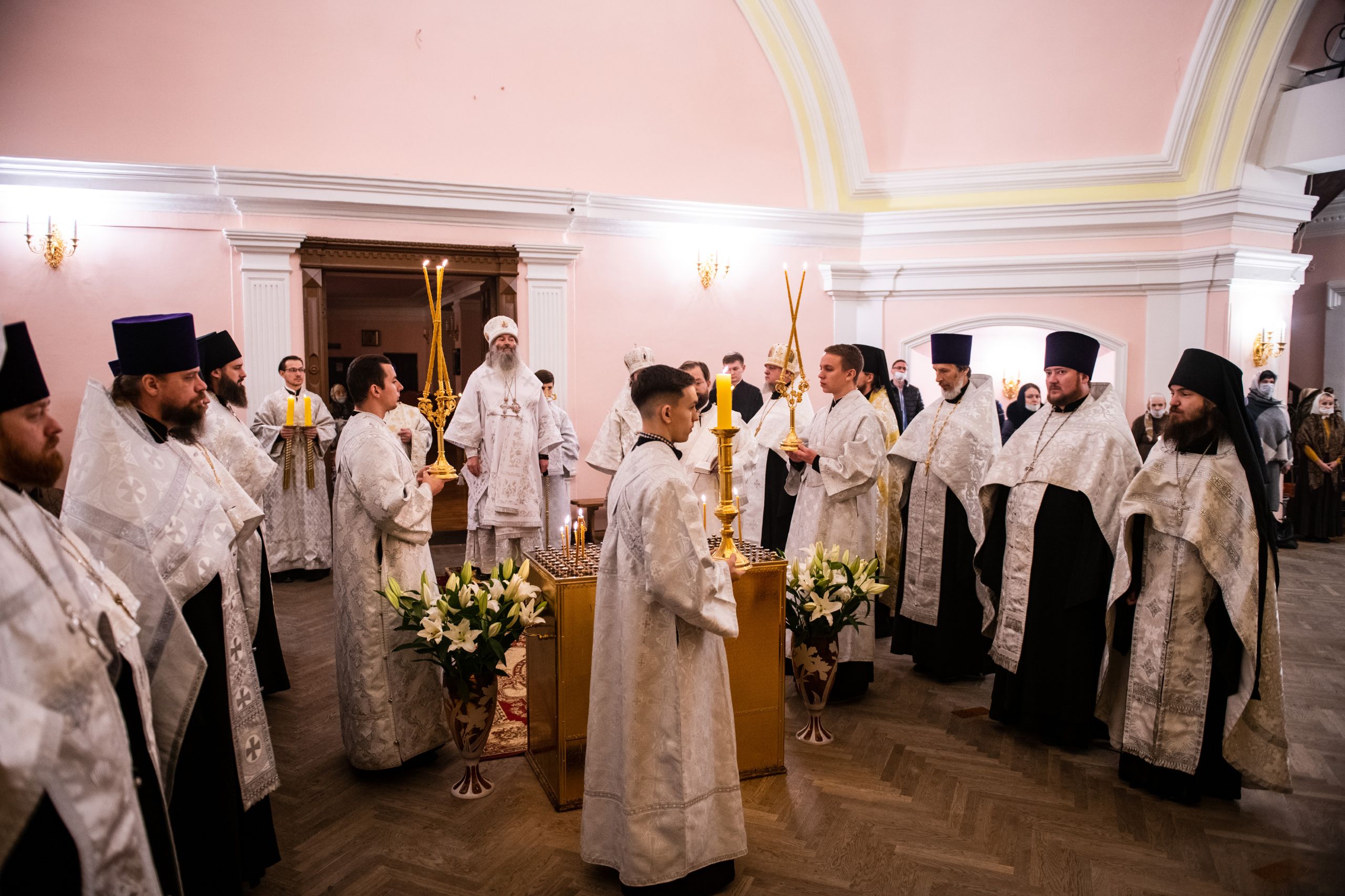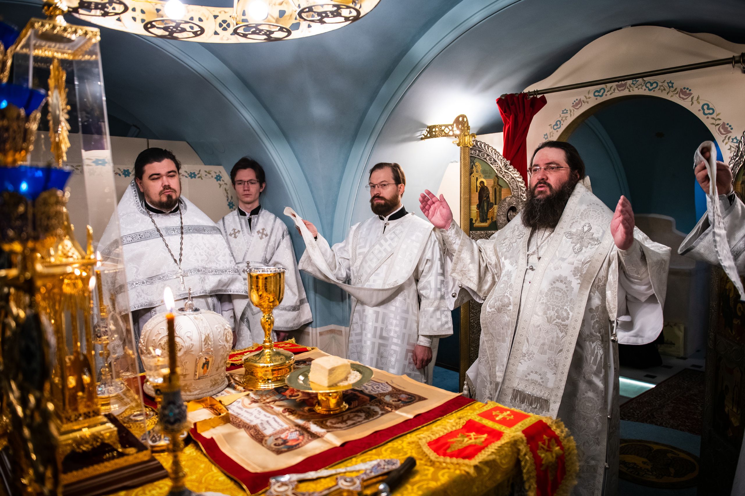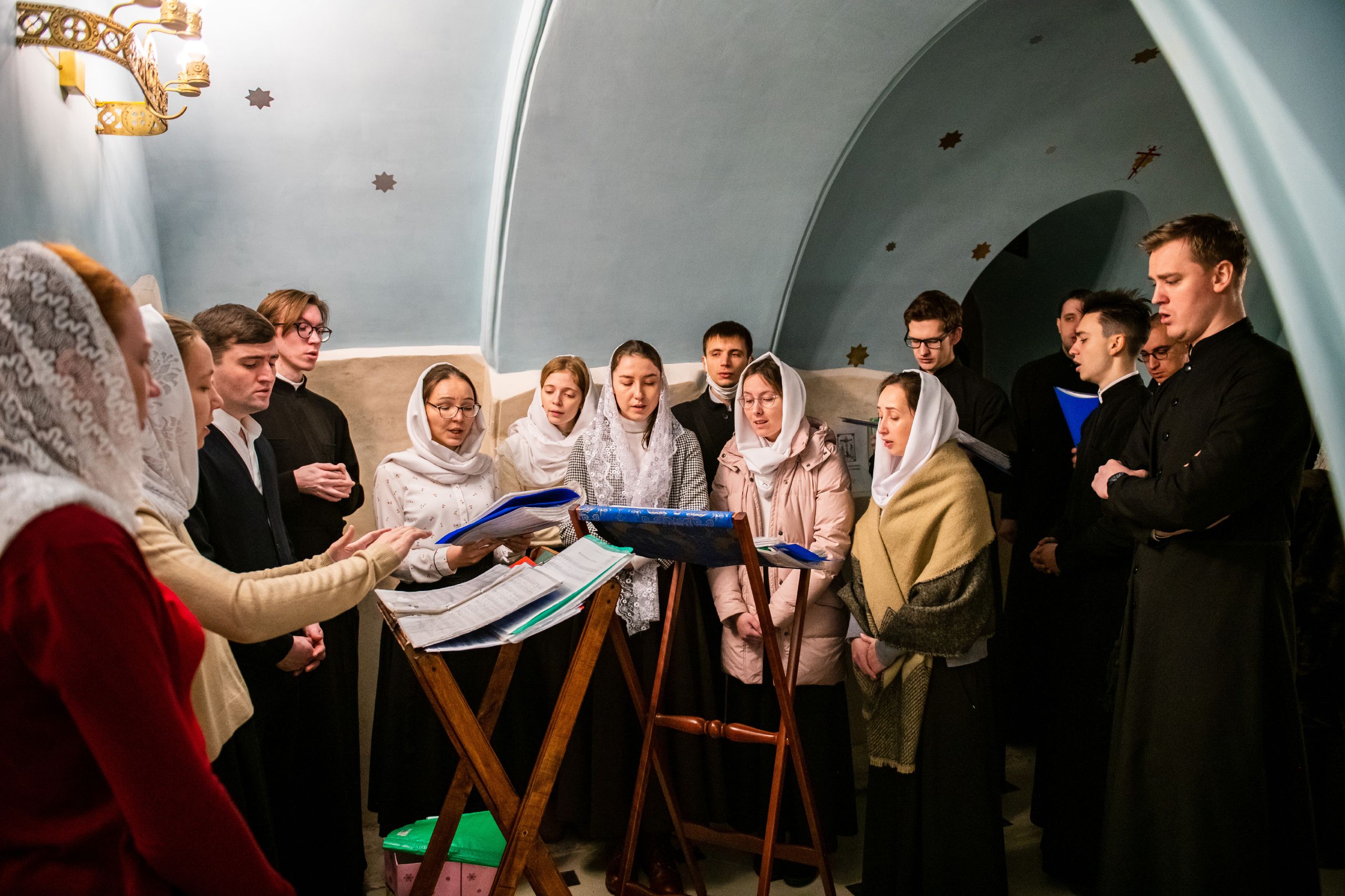 Песнопения исполнялись архиерейским мужским хором под управлением Дениса Рогова.