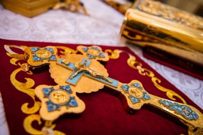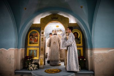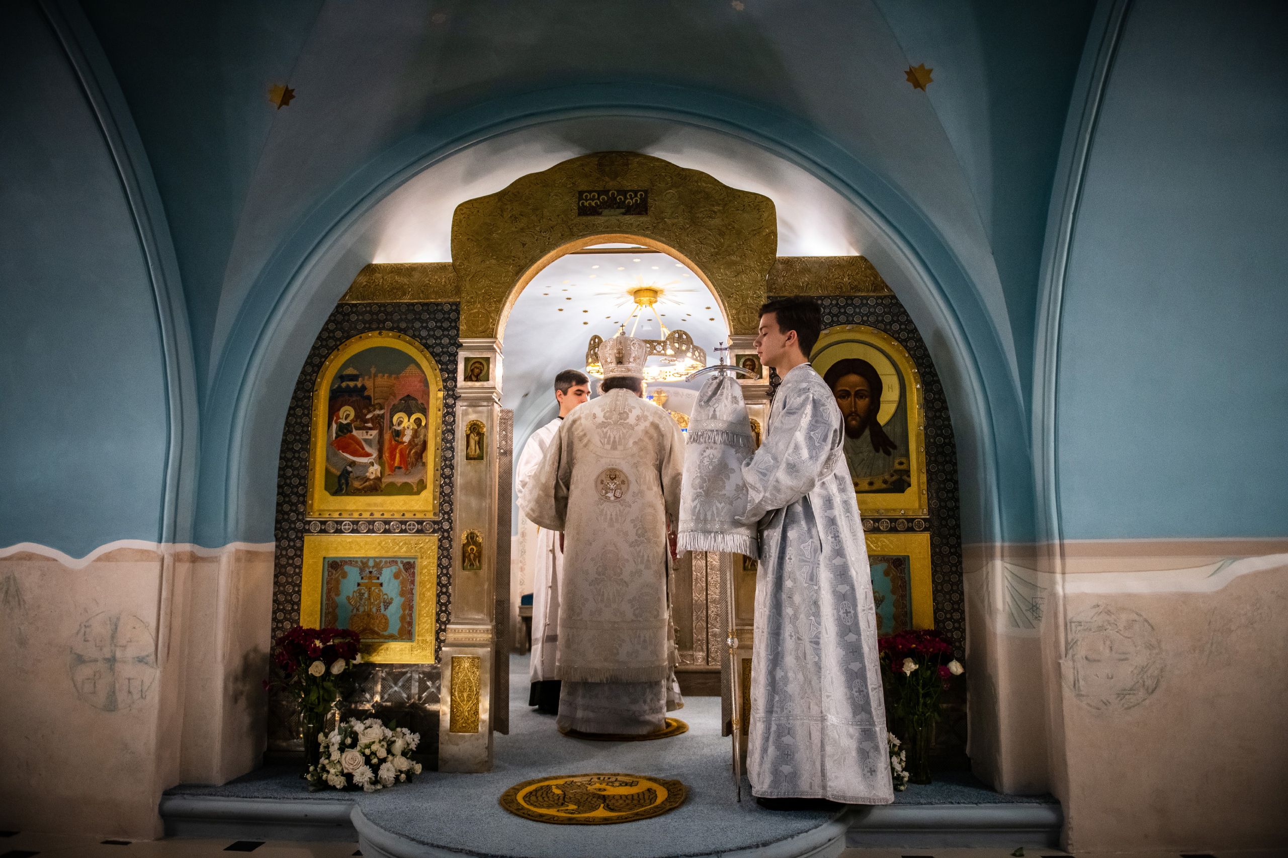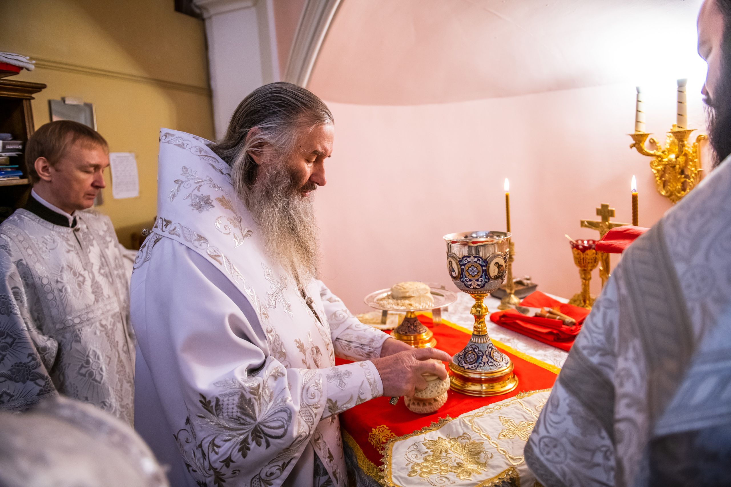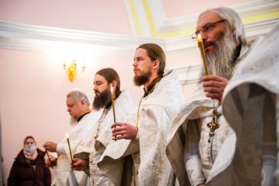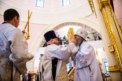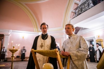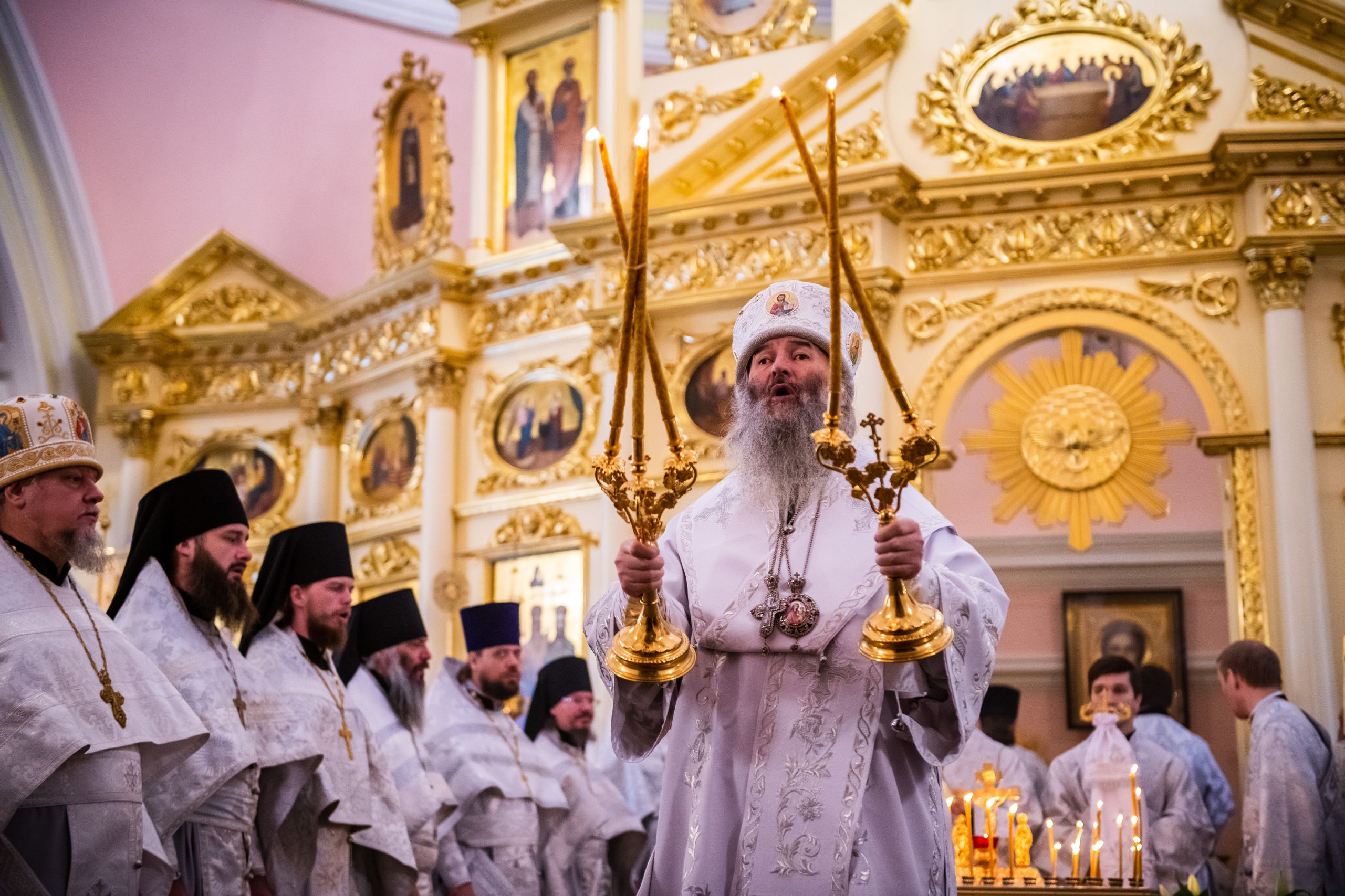 Песнопения исполнялись архиерейским мужским хором под управлением Дениса Рогова.