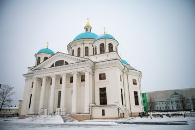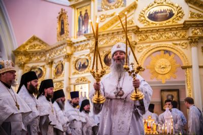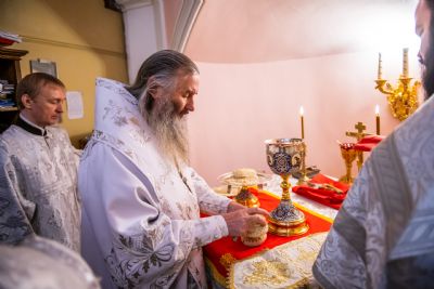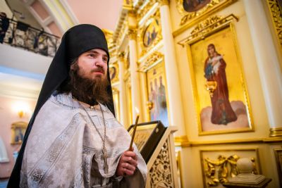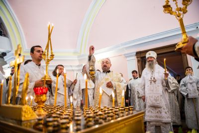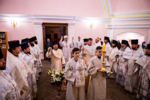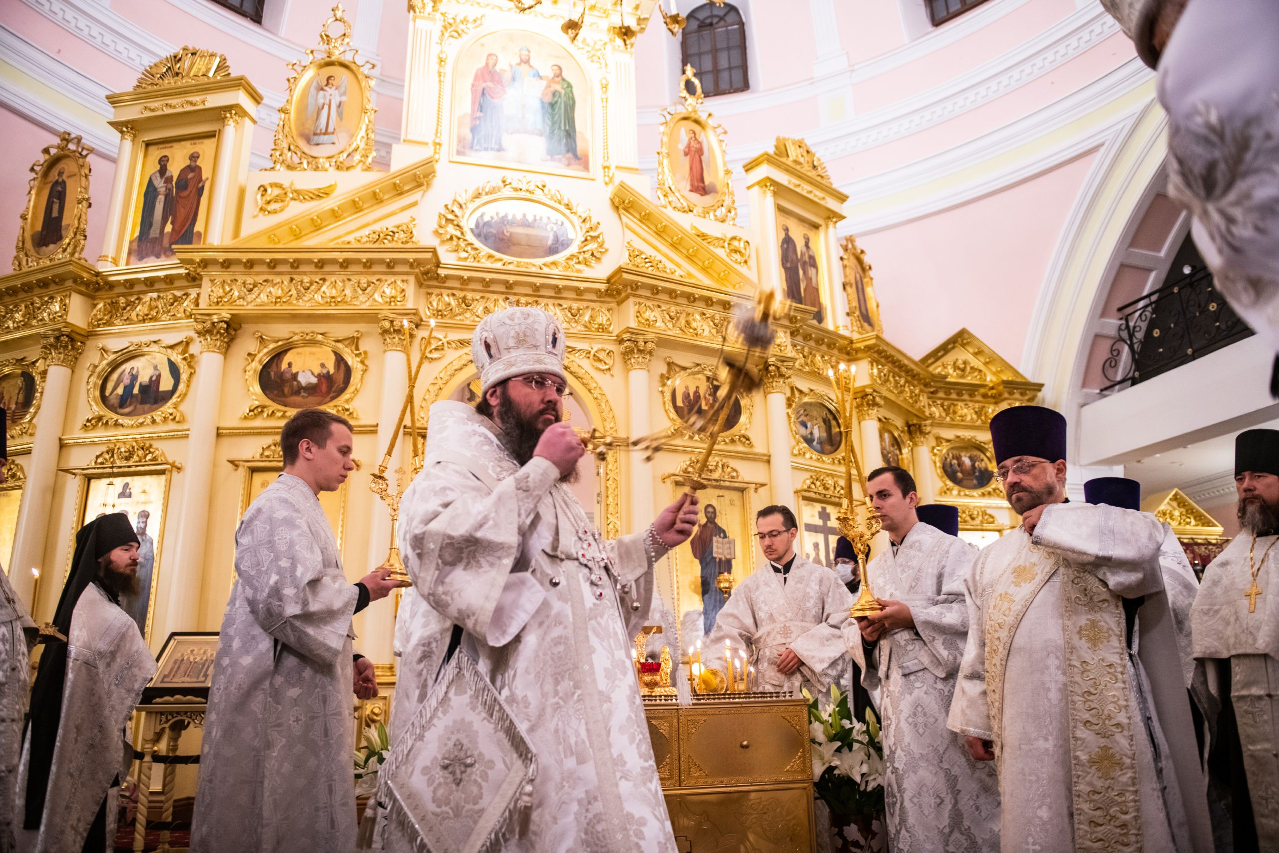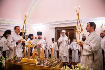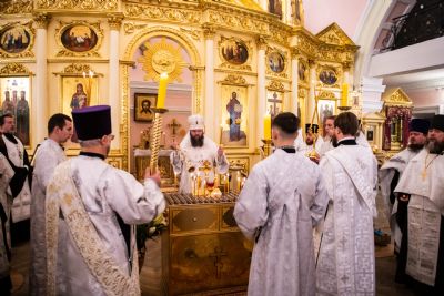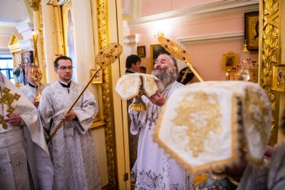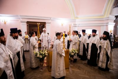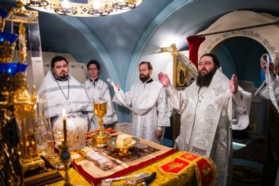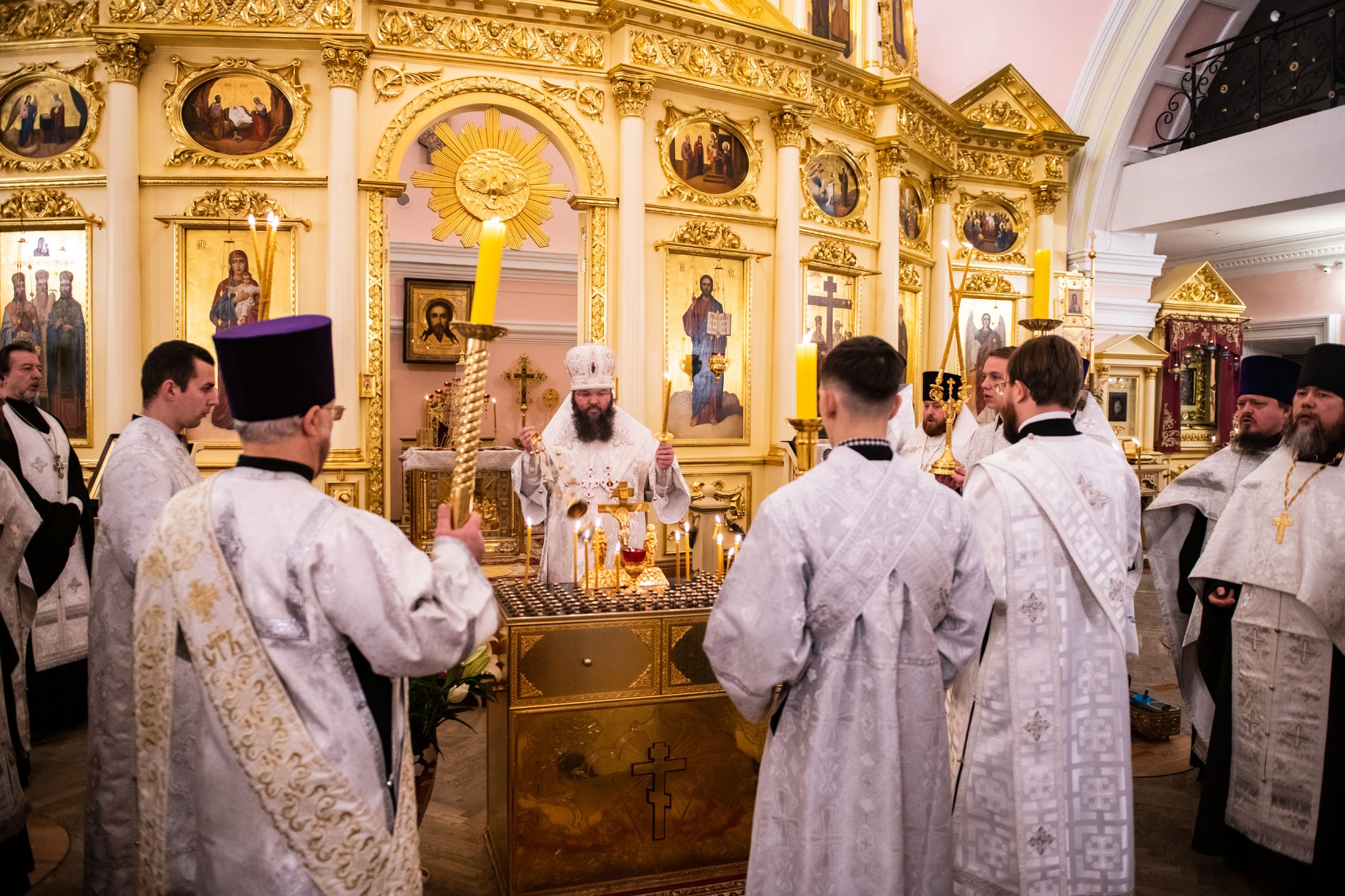 Утром сего дня по благословению митрополита Иоанна епископ Иннокентий совершил раннюю Литургию в Пещерном храме воссоздаваемого собора Казанской иконы Божией Матери. Викарию Казанской епархии сослужили первый проректор Казанской духовной семинарии протоиерей Алексий Колчерин и проректор по воспитательной части иеромонах Кирилл (Забавнов). Песнопения исполнялись смешанным семинарским хором.