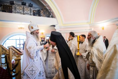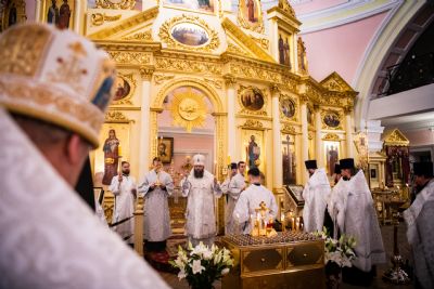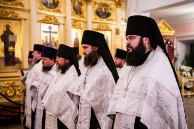 За Литургией владыке Иоанну сослужили викарий Казанской епархии епископ Елабужский Иннокентий, игумен Марк (Виленский), секретарь Казанского епархиального управления протоиерей Владимир Самойленко, наместник Свияжского Успенского мужского монастыря игумен Симеон (Кулагин), наместник Раифского Богородицкого мужского монастыря игумен Гавриил (Рожнов), и.о. настоятеля Иоанно-Предтеченского мужского монастыря города Казани иеромонах Гурий (Ананьев), благочинные церковных округов города Казани, настоятели столичных храмов, братия Богородицкой обители в священном сане.
