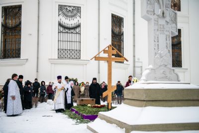 Затем митрополит Иоанн вместе с сослужившим духовенством совершил панихиду. В завершение богослужения Его Высокопреосвященство возглавил заупокойную литию на месте погребения митрополита Феофана.