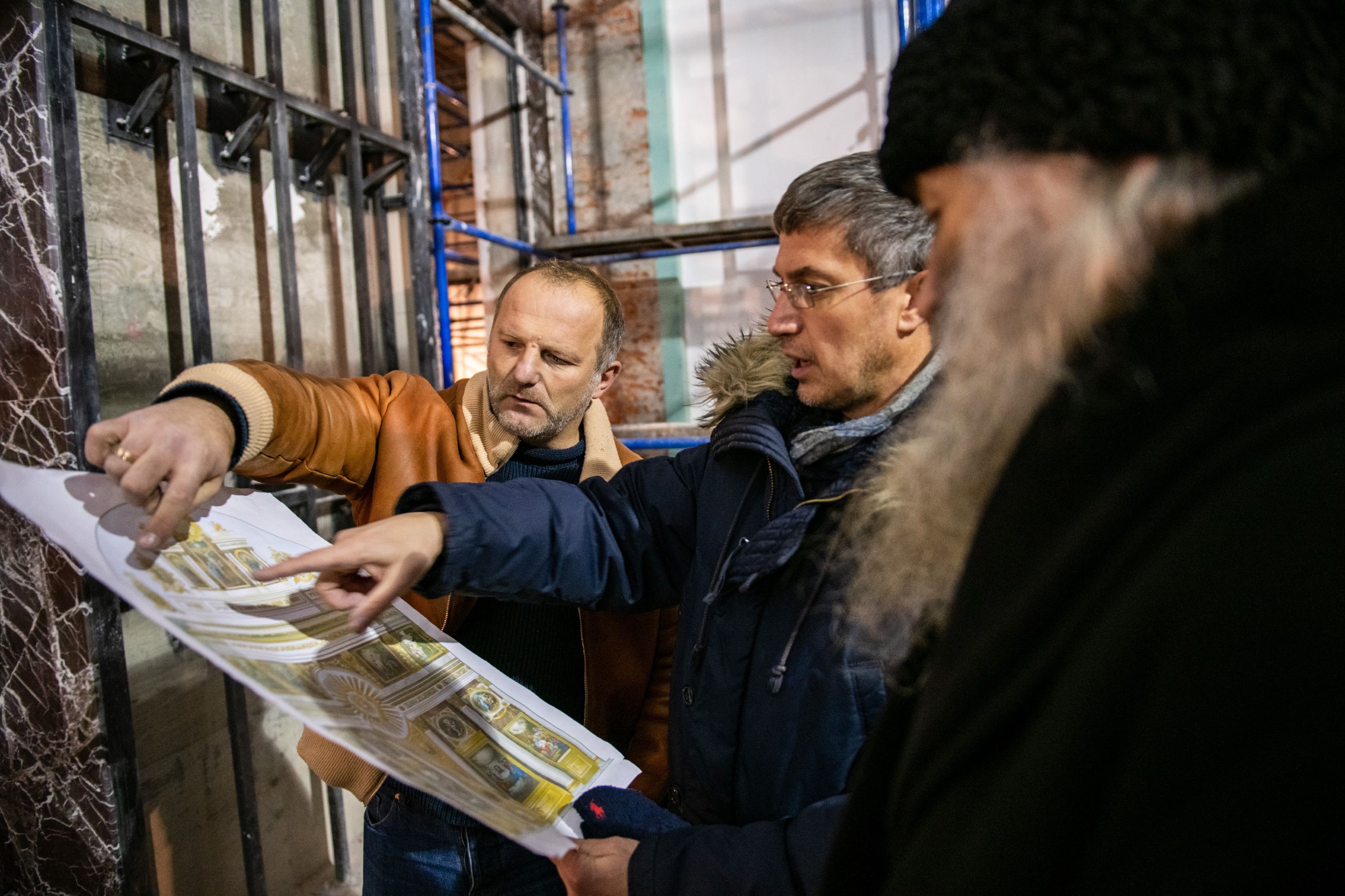 Кроме того, архипастырю доложили о готовых бронзовых и резных с позолотой изделиях декора иконостасов. Подробно рассказали про количество готовых икон и график их написания.