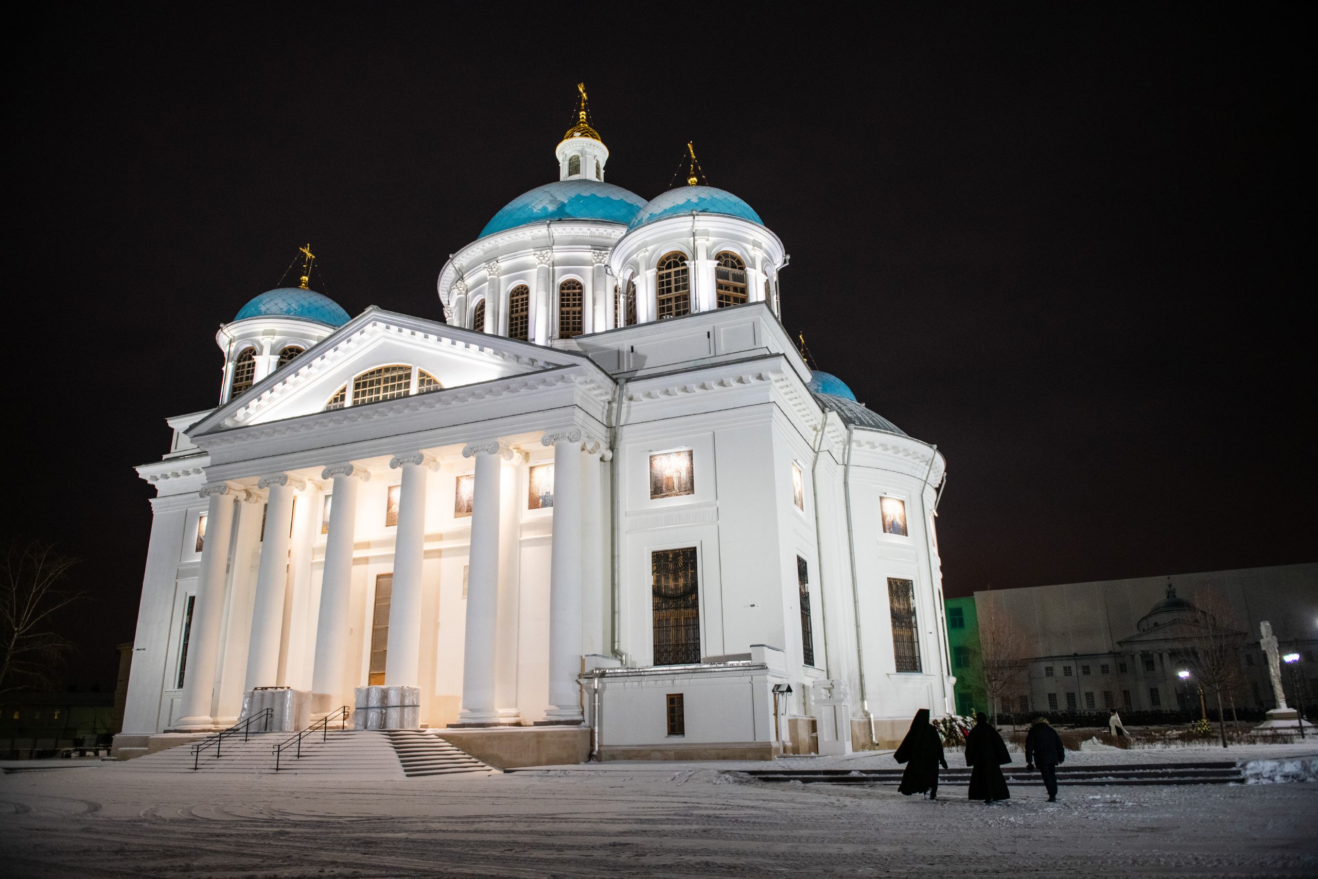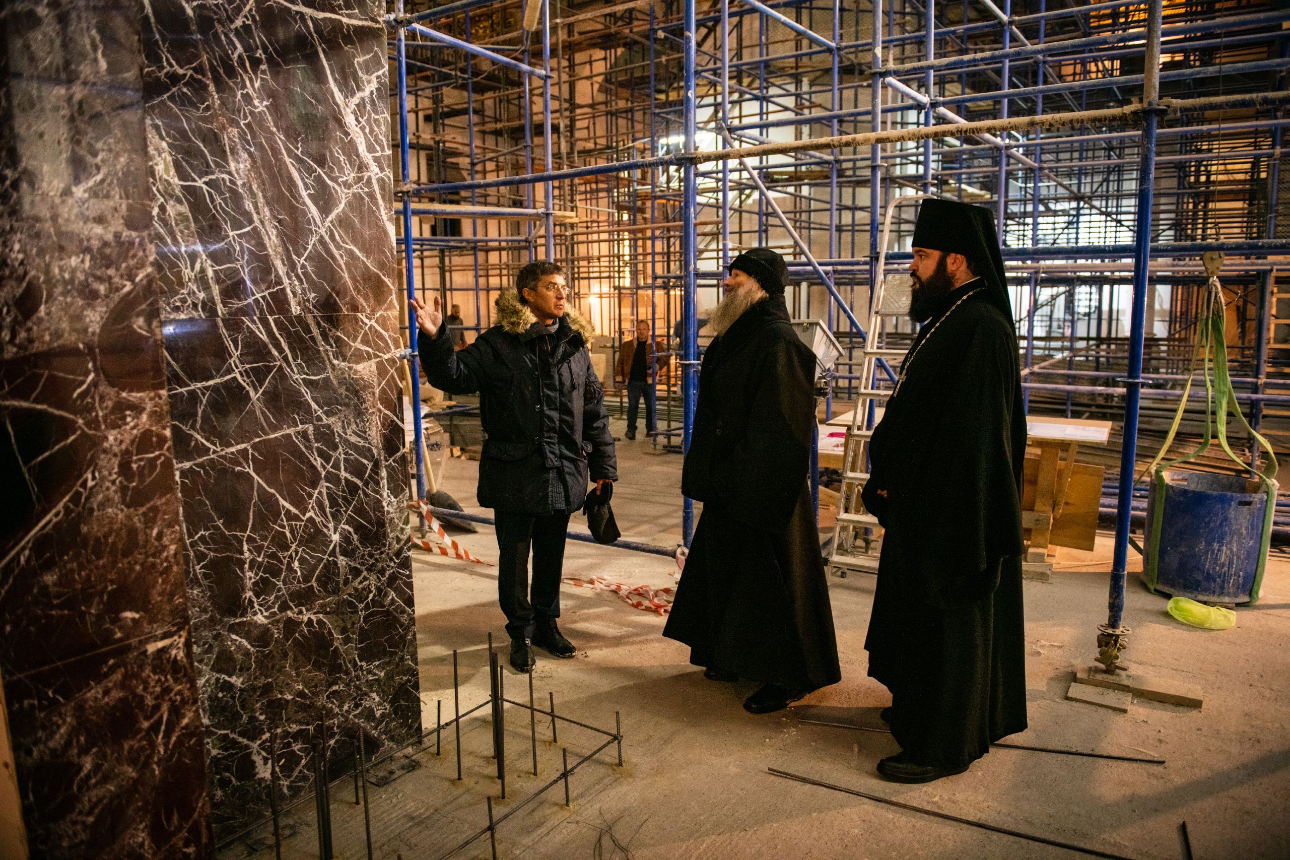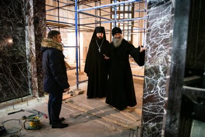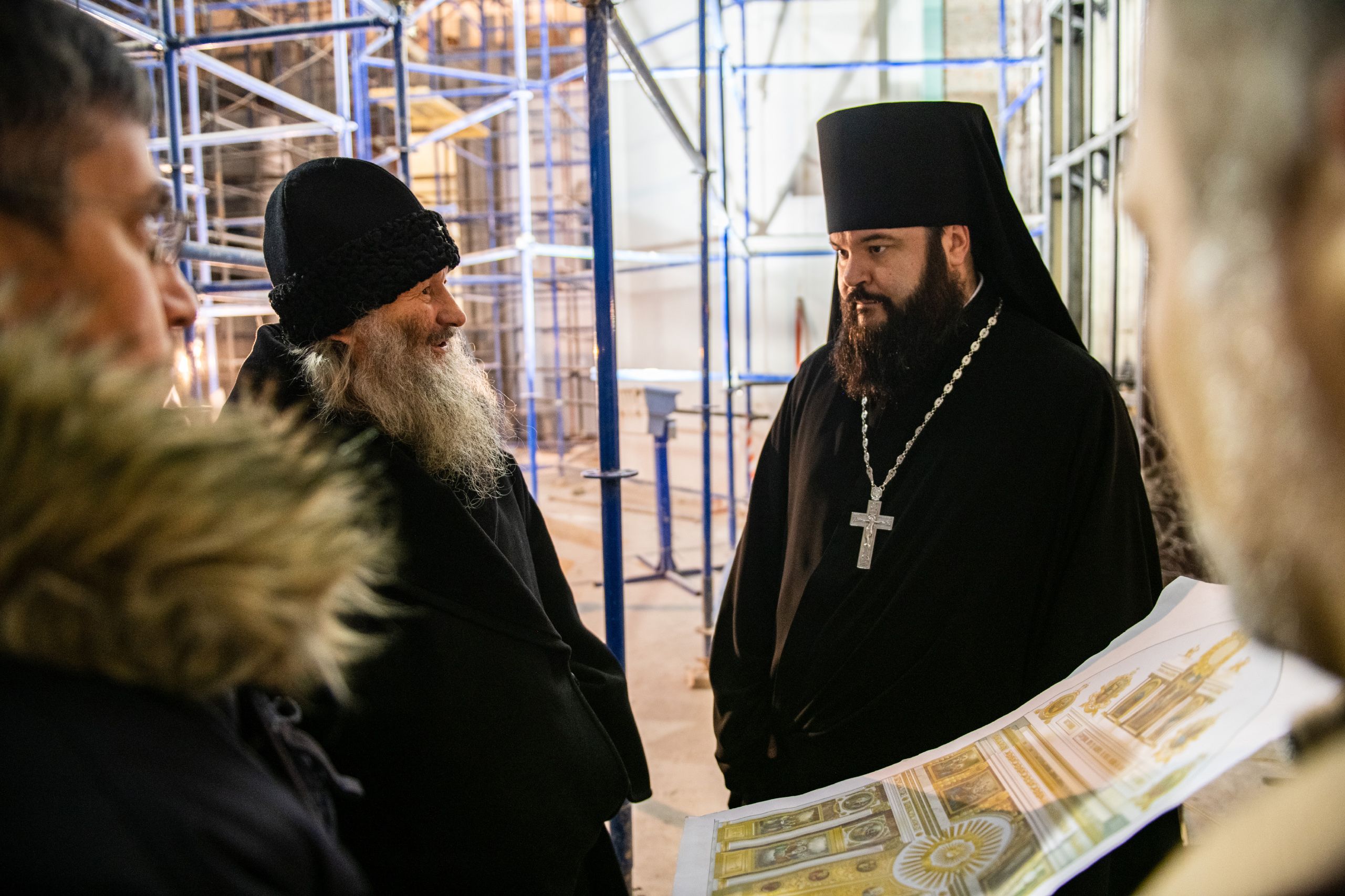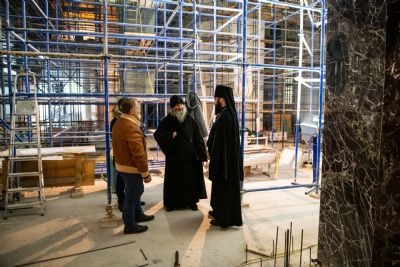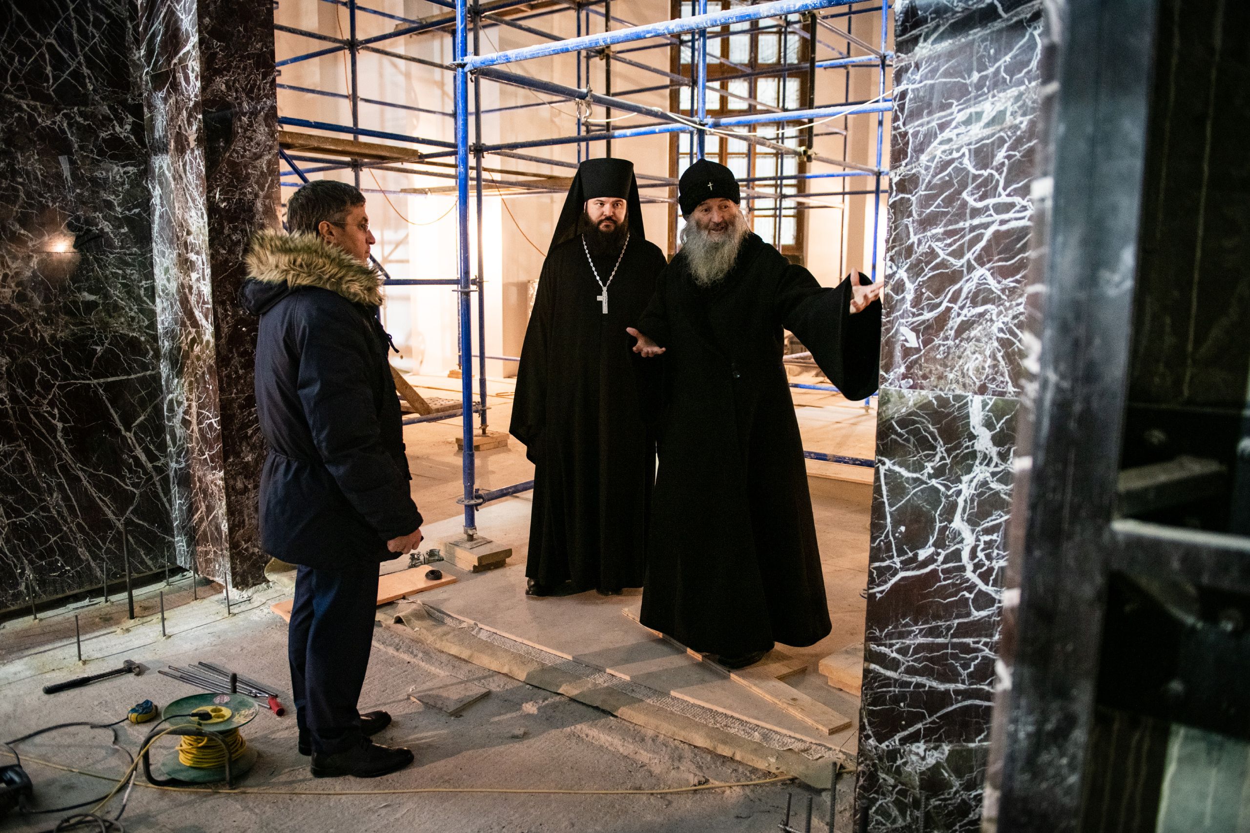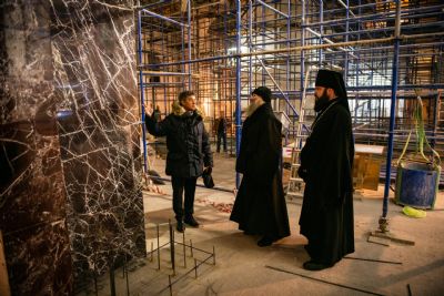 Перед началом вечерней службы временный управляющий Казанской епархией посетил воссоздаваемый собор на месте обретения Казанской иконы Богородицы. Наместник монастыря игумен Марк (Виленский) и главный инженер Казанской епархии Михаил Федотов ознакомили Его Высокопреосвященство с работами по устройству иконостасов Казанского собора. Во встрече принял участие подрядчик по живописному оформлению храма Вячеслав Пахомов.