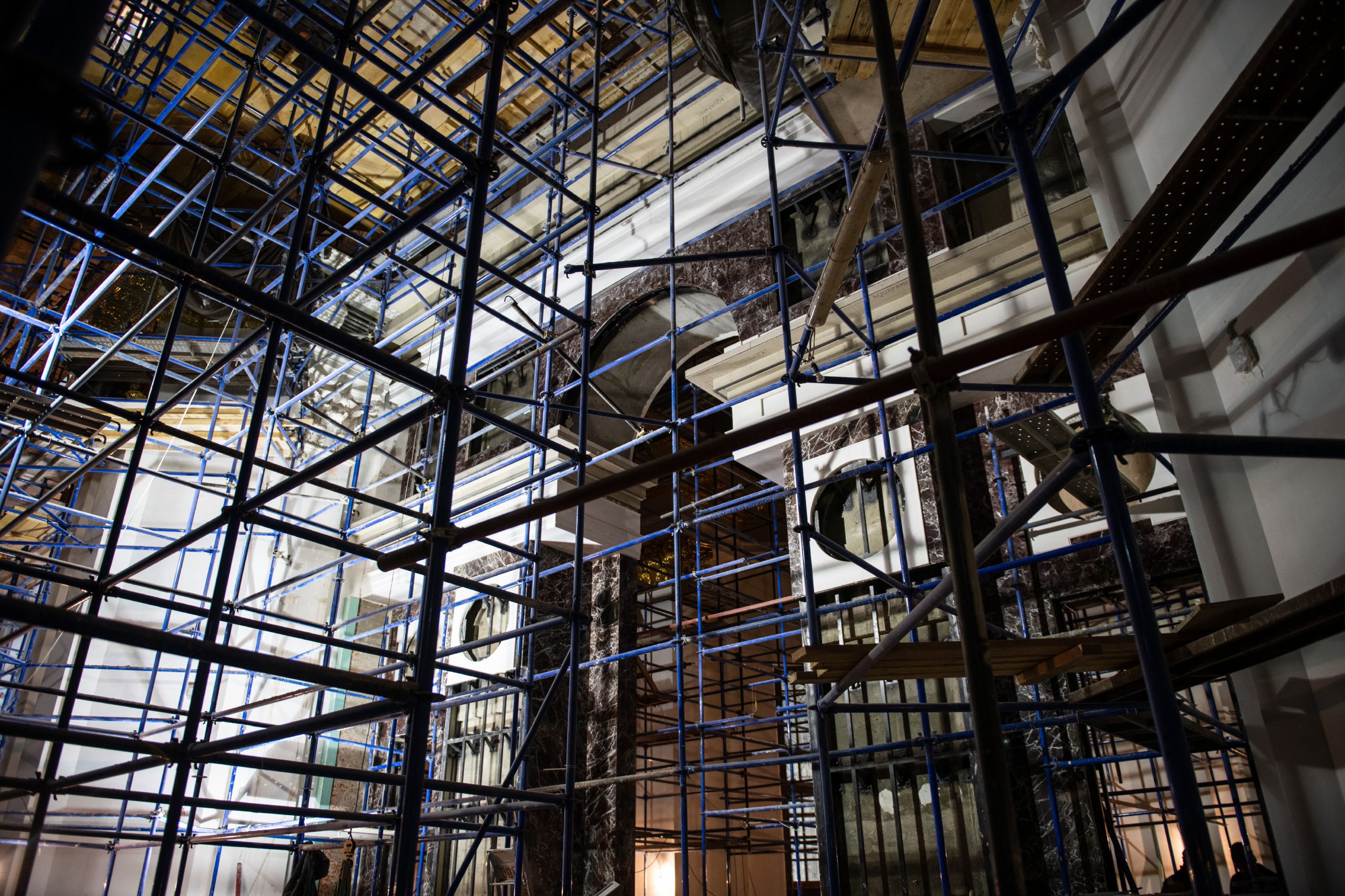 Напомним, что 25 ноября в ходе рабочего совещания, посвящённого вопросам росписи Казанского собора, члены рабочей комиссии по воссозданию росписи храма провели приём альфрейных и живописных работ на центральном куполе Казанского собора и в парусах под барабаном центрального купола. В настоящее время продолжается роспись люнетов, западной конхи и малых куполов. Завершение работ по росписи, как и всех работ на объекте, по графику планируется в мае 2021 года.