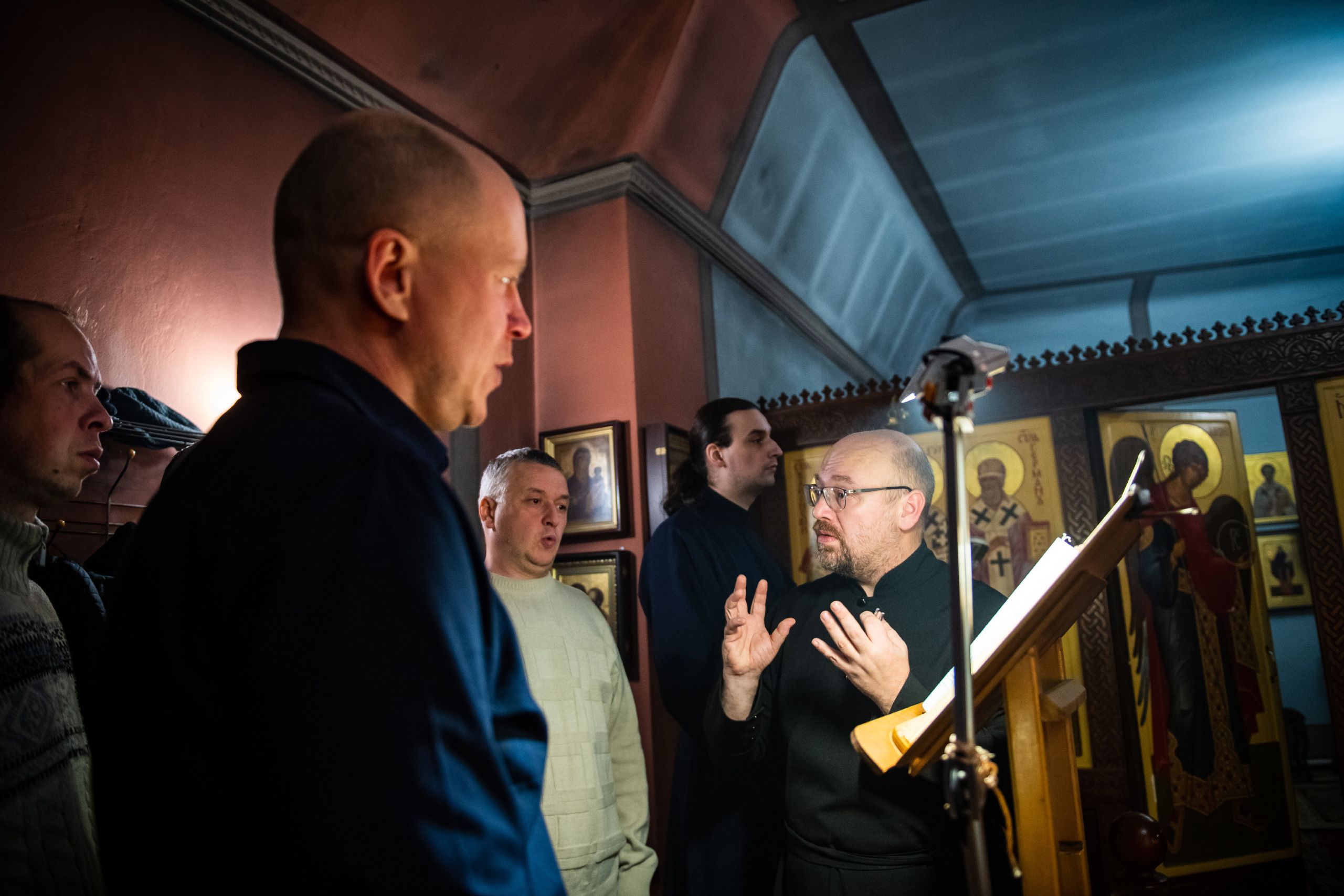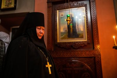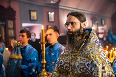 Богослужебные песнопения исполнялись монастырским мужским хором под управлением Андрея Оводова.