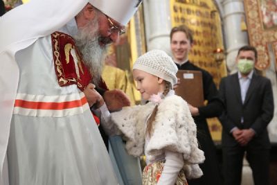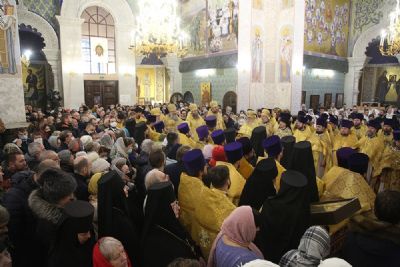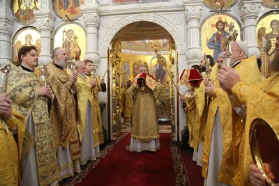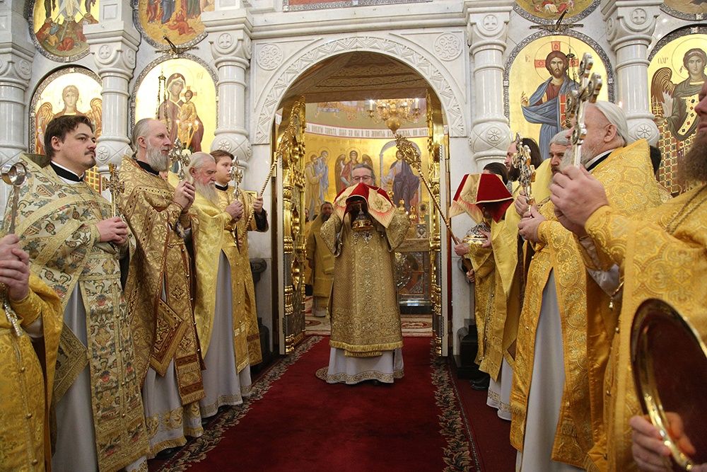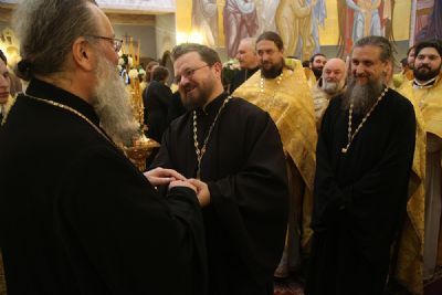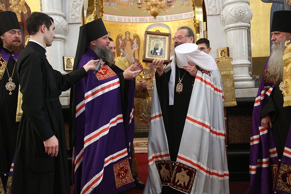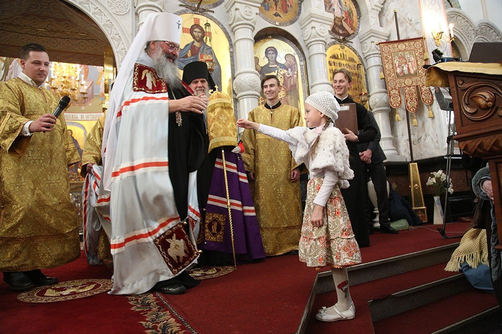 По завершении богослужения митрополит Кирилл обратился со словами прощания к духовенству и пастве.