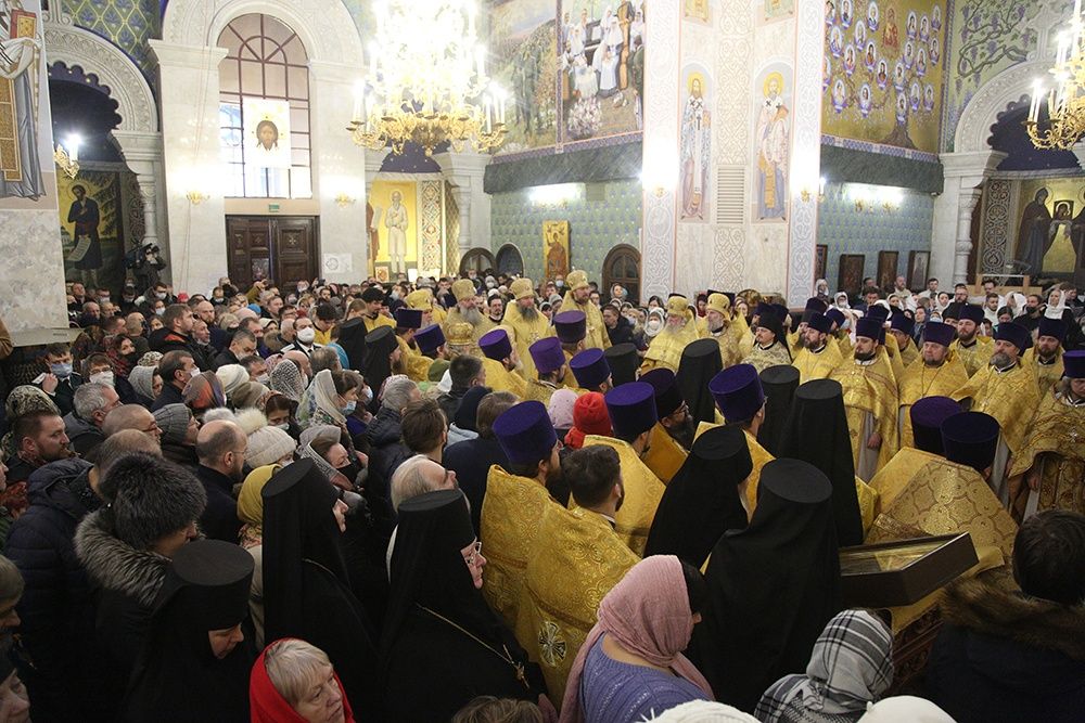 13 декабря 2020 года, в Неделю 27-ю по Пятидесятнице, день памяти апостола Андрея Первозванного, Божественную литургию в Храме-на-Крови города Екатеринбурга возглавили митрополит Казанский и Татарстанский Кирилл, епископ Каменский и Камышловский Мефодий, епископ Екатеринбургский и Верхотурский Евгений и епископ Нижнетагильский и Невьянский Алексий в сослужении духовенства епархий Екатеринбургской митрополии.
