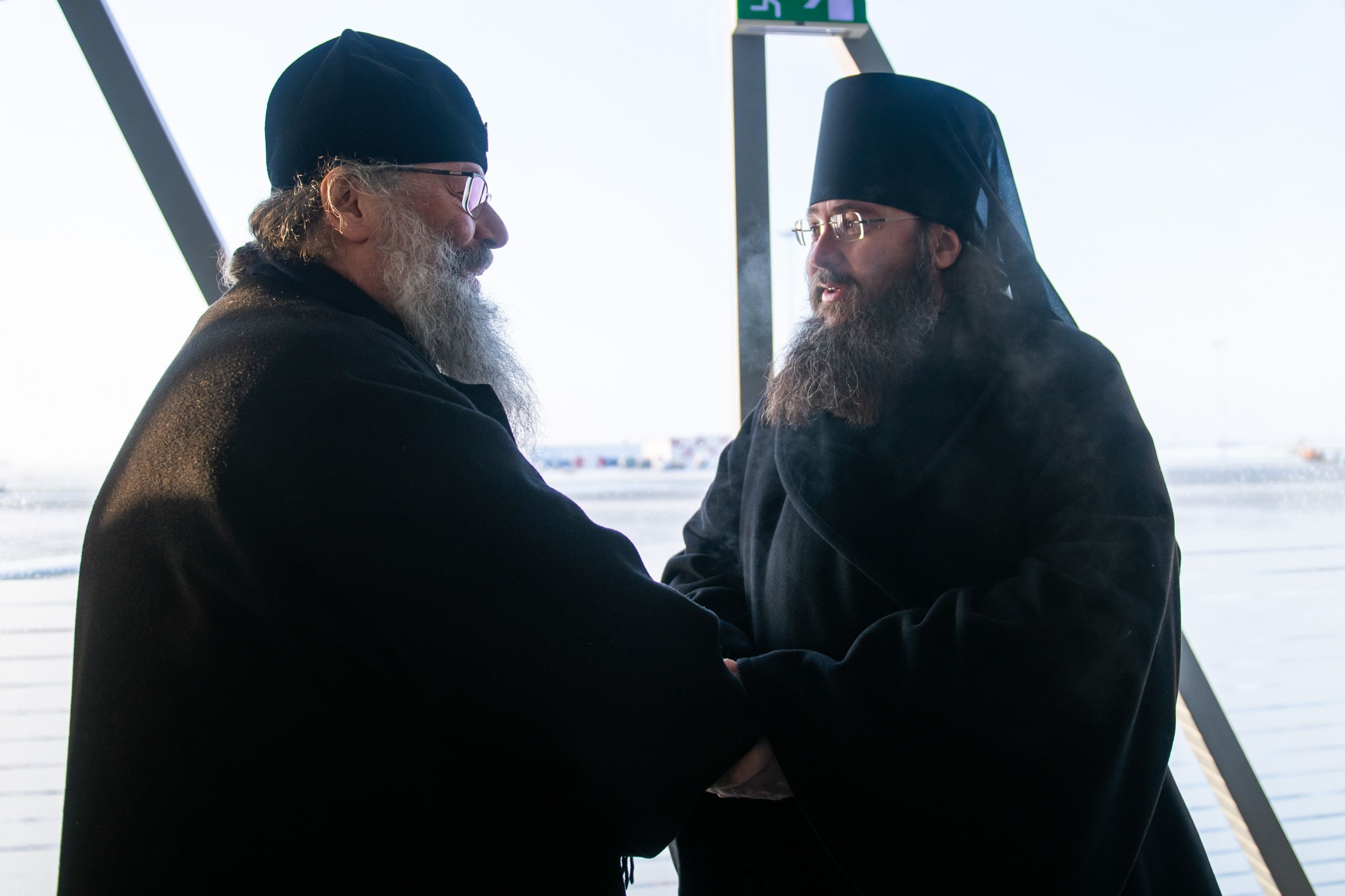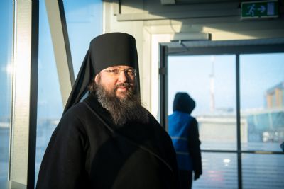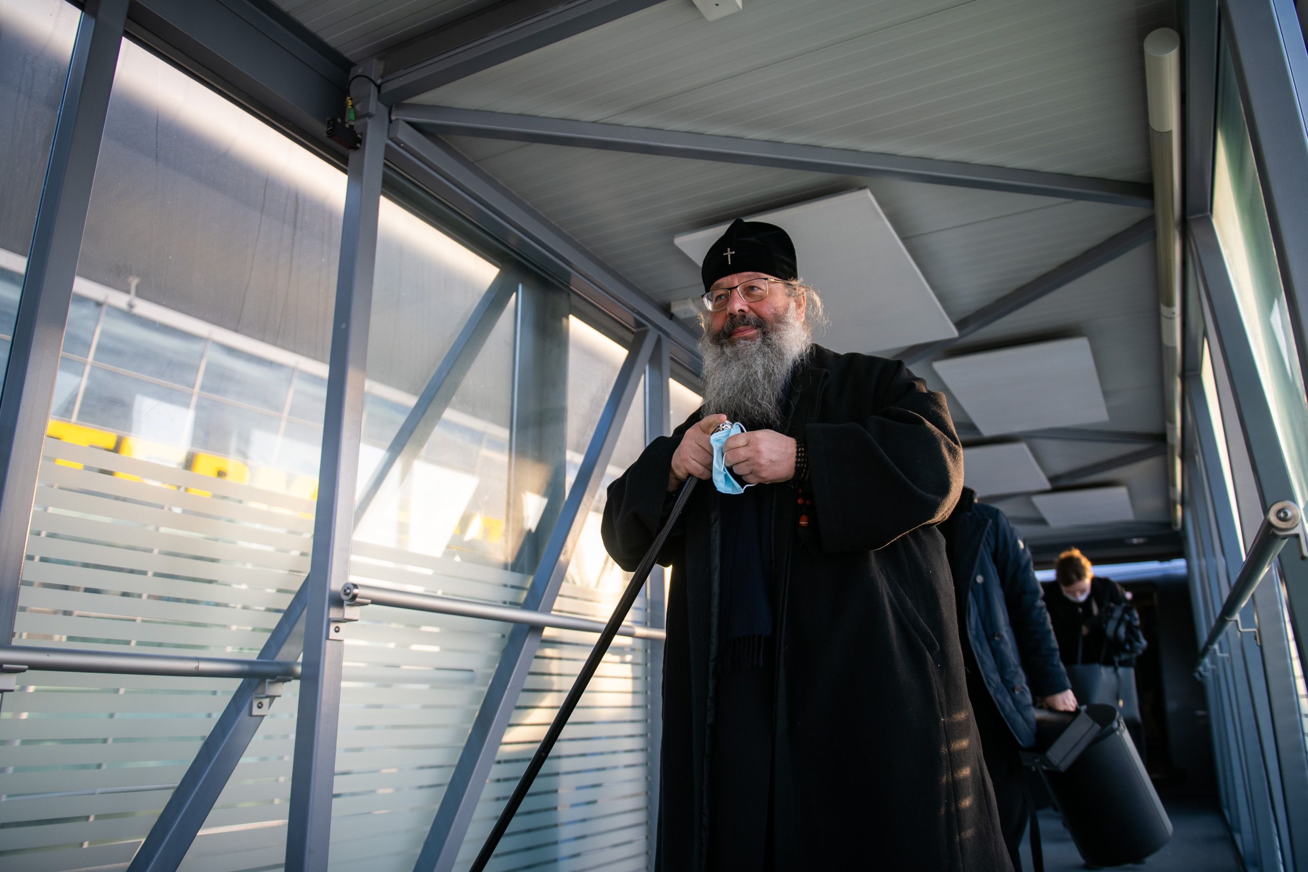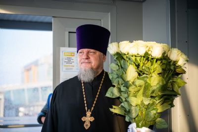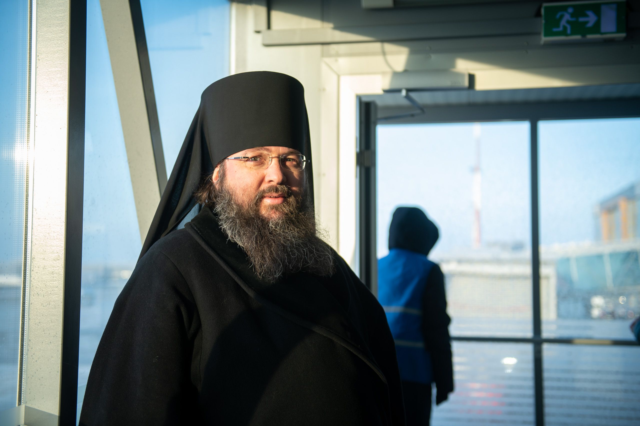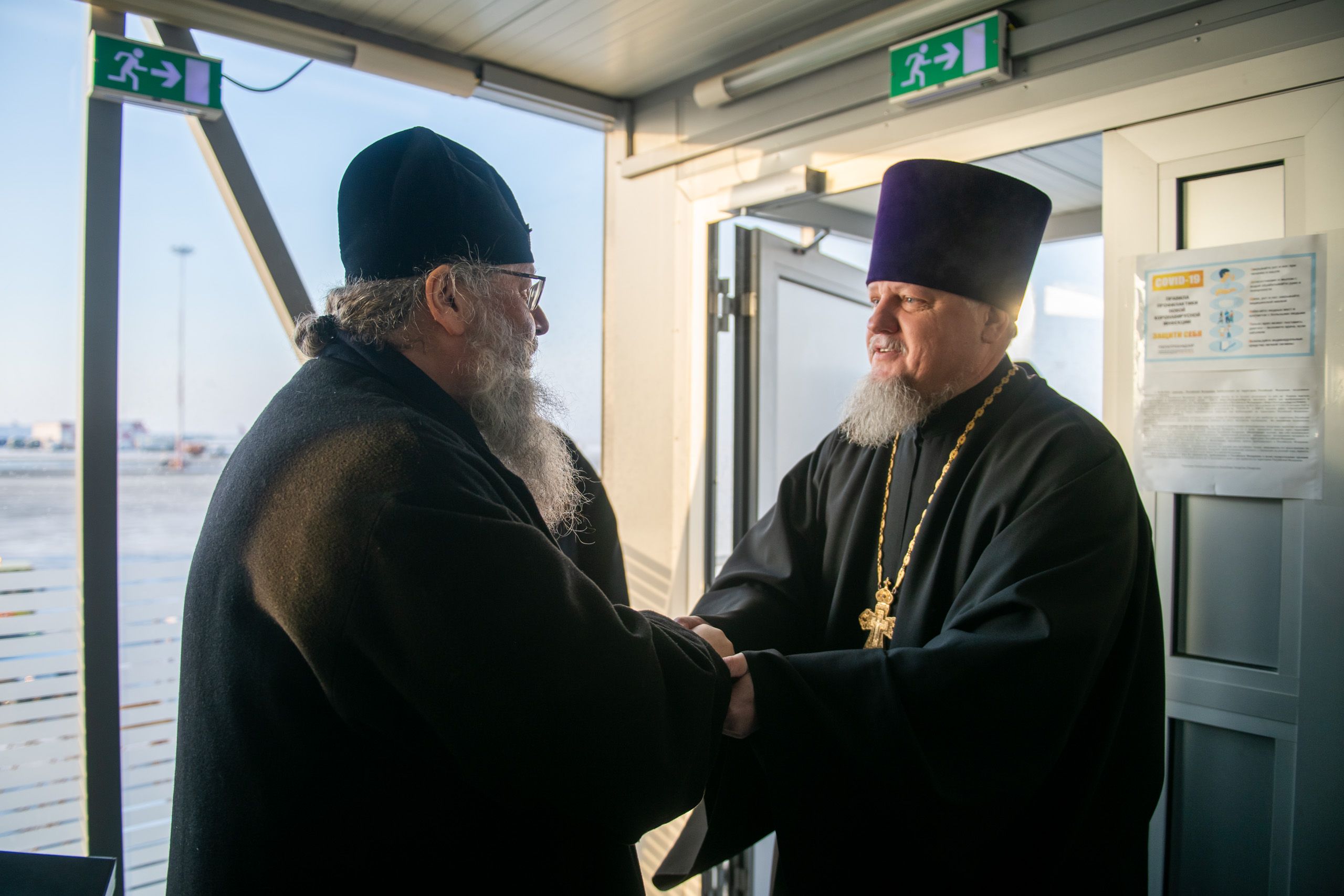 У трапа самолёта новоназначенного главу Татарстанской митрополии, прибывшего из города Екатеринбурга, встречали викарий Казанской епархии епископ Елабужский Иннокентий и секретарь Казанского епархиального управления протоиерей Владимир Самойленко.