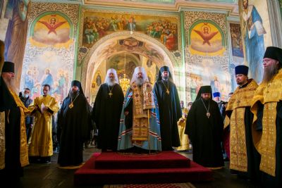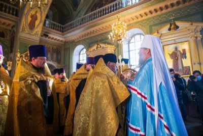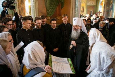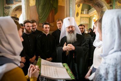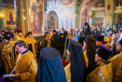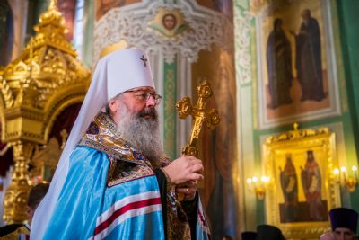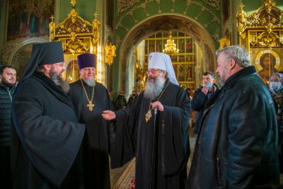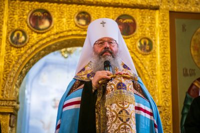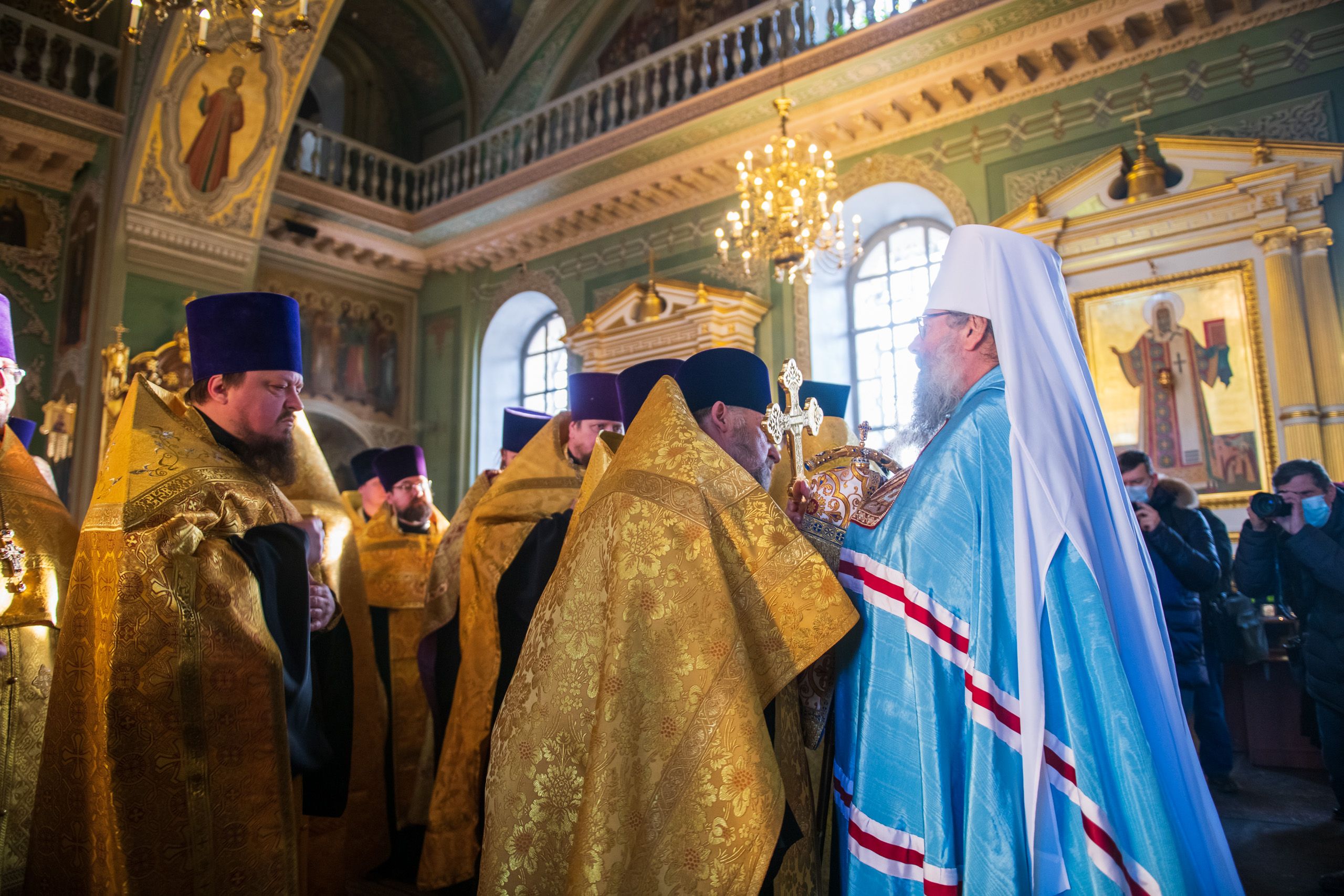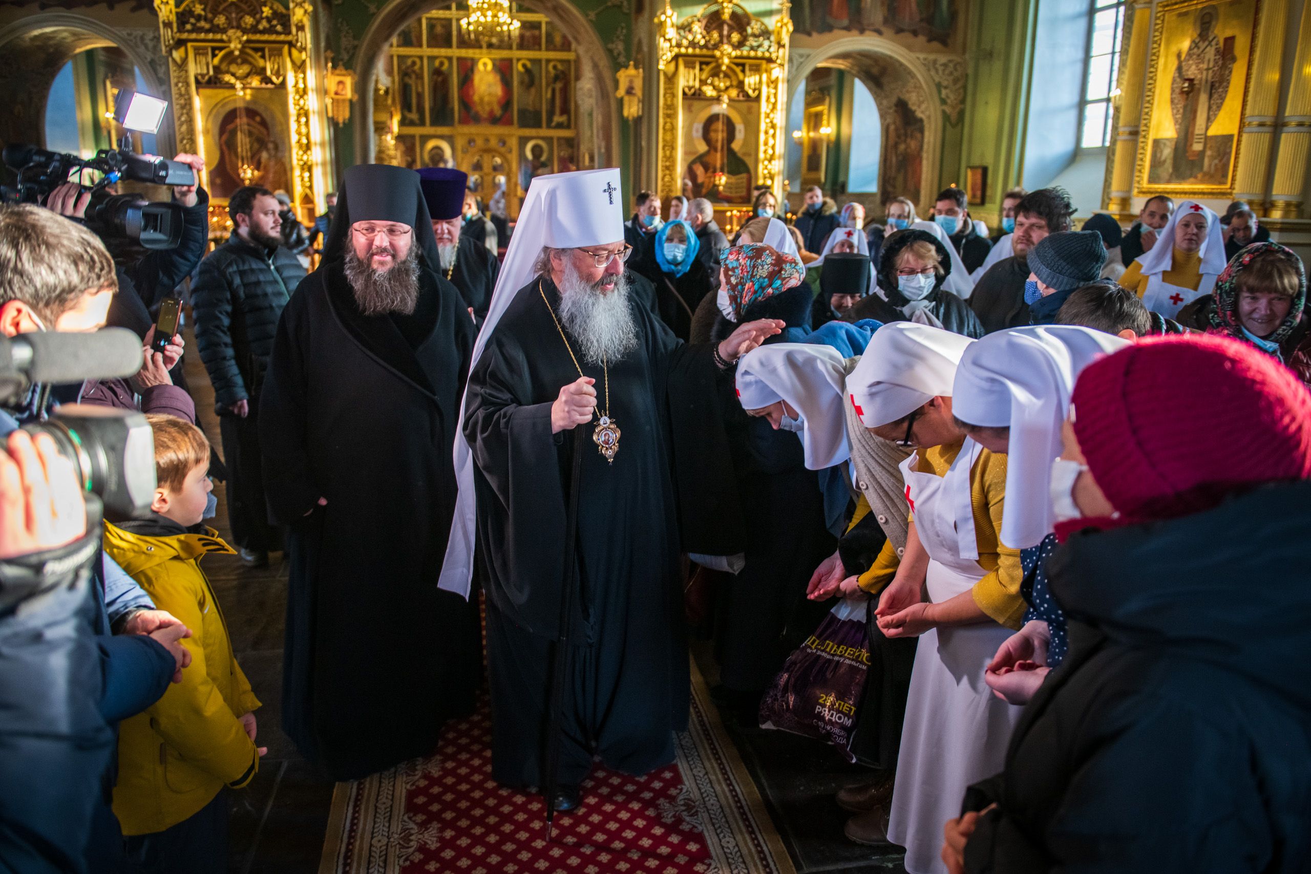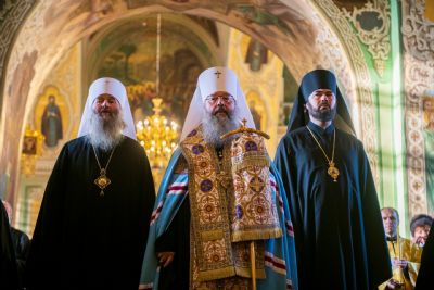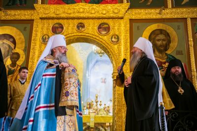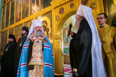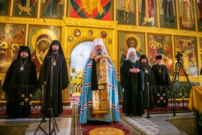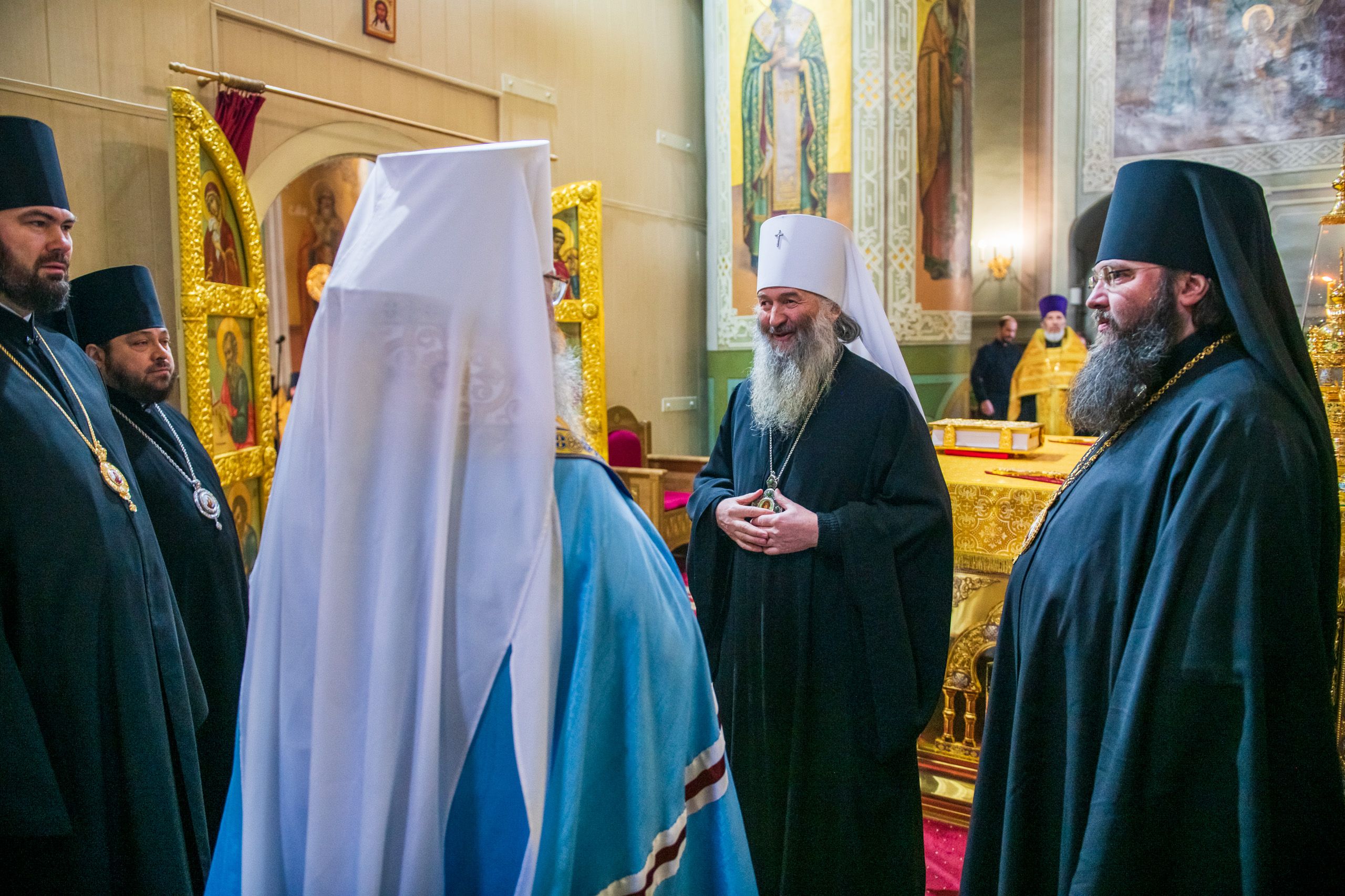 А сейчас приступаю к исполнению благословения Великого Господина и Отца нашего Кирилла, Святейшего Патриарха Московского и всея Руси, и Священного Синода Русской Православной Церкви, направивших меня сюда. Помолимся Богородице в этом дивном храме Божием, в котором, как совсем недавно вся страна и я сам наблюдали со стороны, уходил в вечность владыка митрополит Феофан. Он много потрудился, много подвизался и оставил очень многого доброго и полезного в этой жизни. Но Господь судил так, что он сейчас в вечности. Сейчас дни его памяти как новопреставленного, и надо чаще служить в храмах, вспоминая владыку. Пусть это будет свидетельством нашей любви к нему.