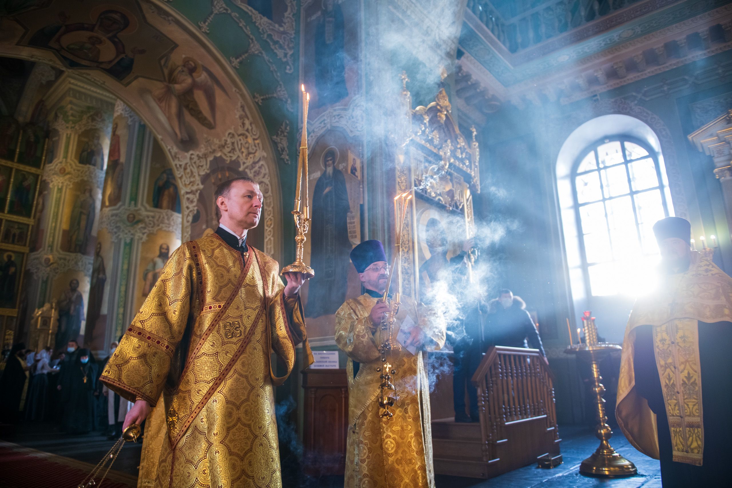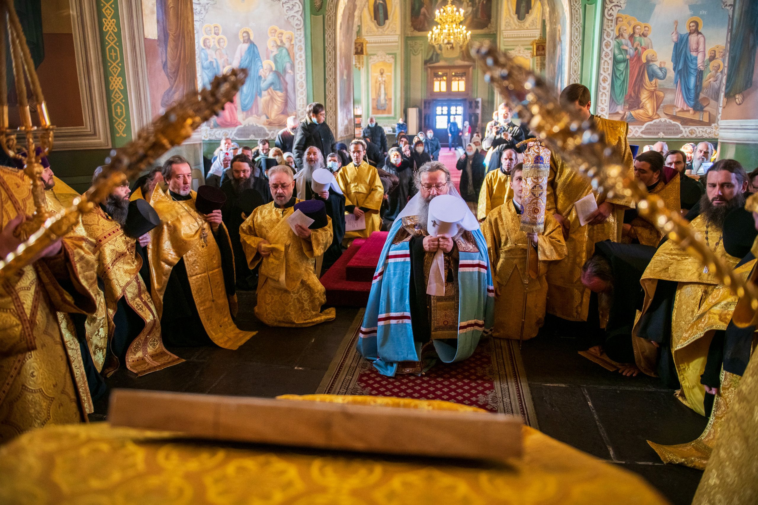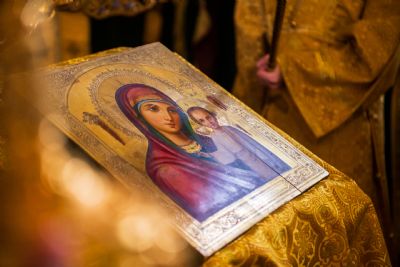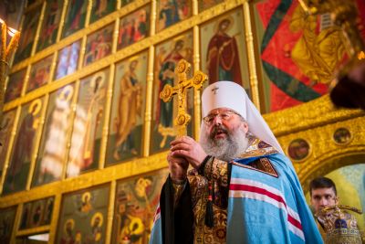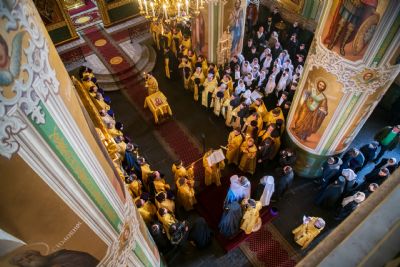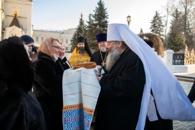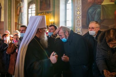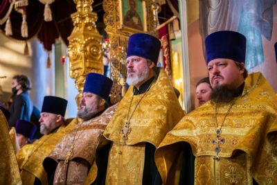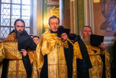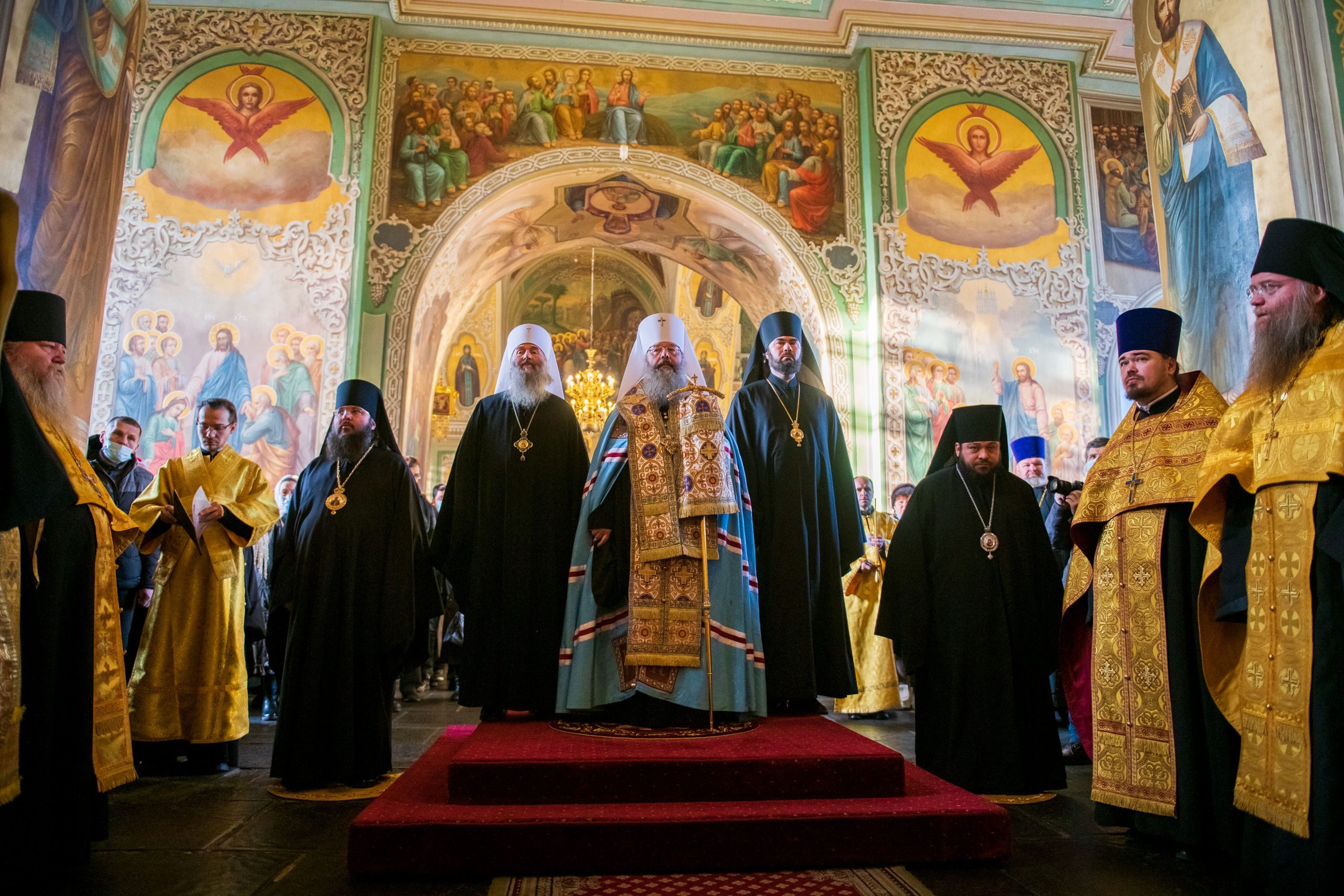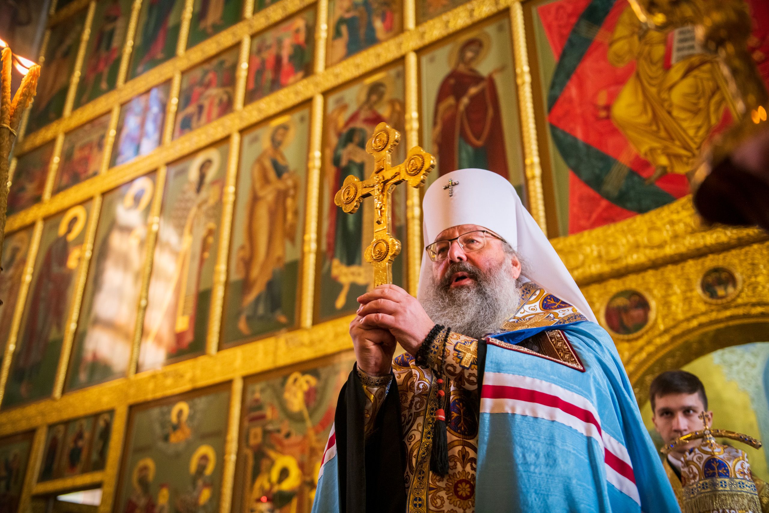 А сейчас приступаю к исполнению благословения Великого Господина и Отца нашего Кирилла, Святейшего Патриарха Московского и всея Руси, и Священного Синода Русской Православной Церкви, направивших меня сюда. Помолимся Богородице в этом дивном храме Божием, в котором, как совсем недавно вся страна и я сам наблюдали со стороны, уходил в вечность владыка митрополит Феофан. Он много потрудился, много подвизался и оставил очень многого доброго и полезного в этой жизни. Но Господь судил так, что он сейчас в вечности. Сейчас дни его памяти как новопреставленного, и надо чаще служить в храмах, вспоминая владыку. Пусть это будет свидетельством нашей любви к нему.
