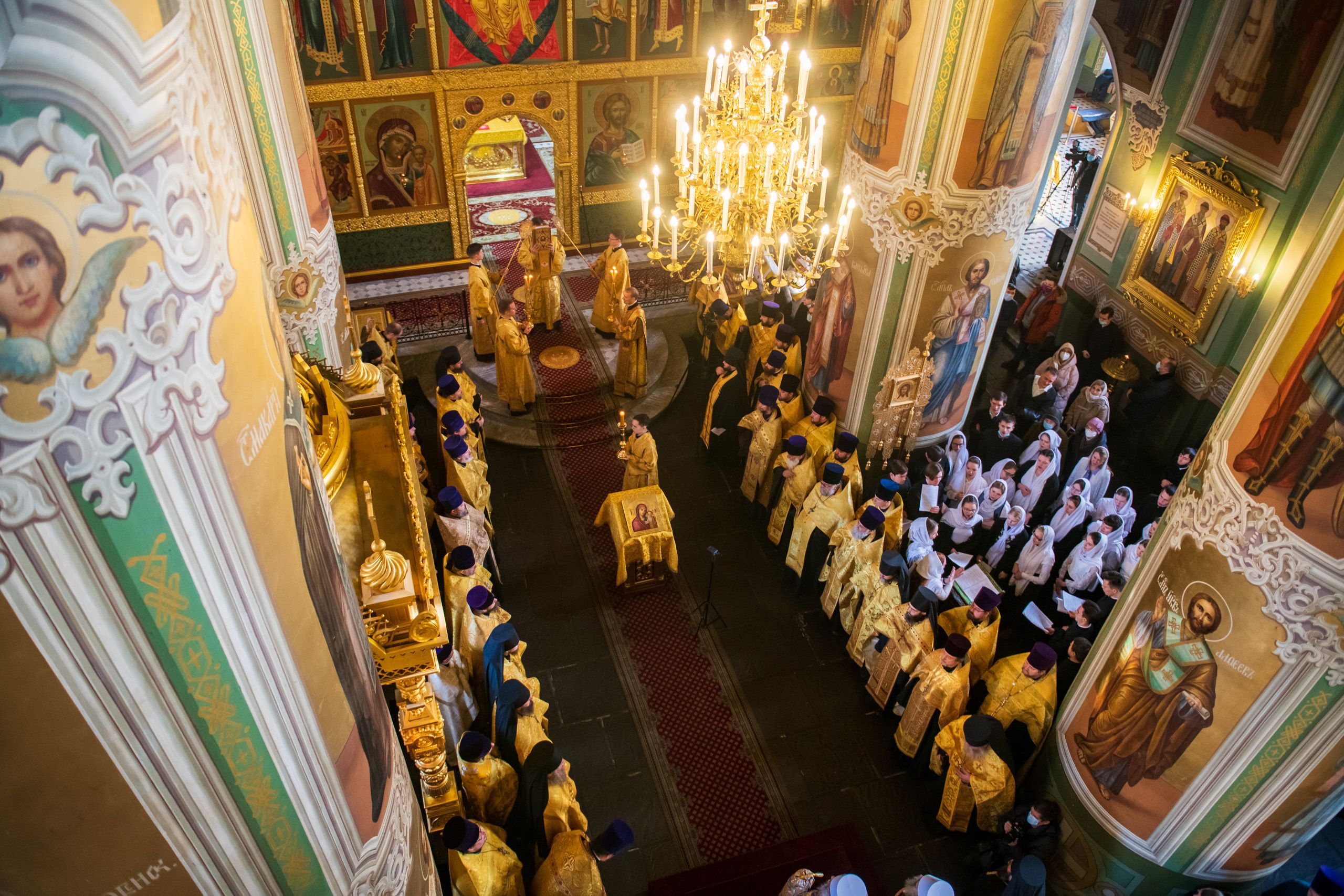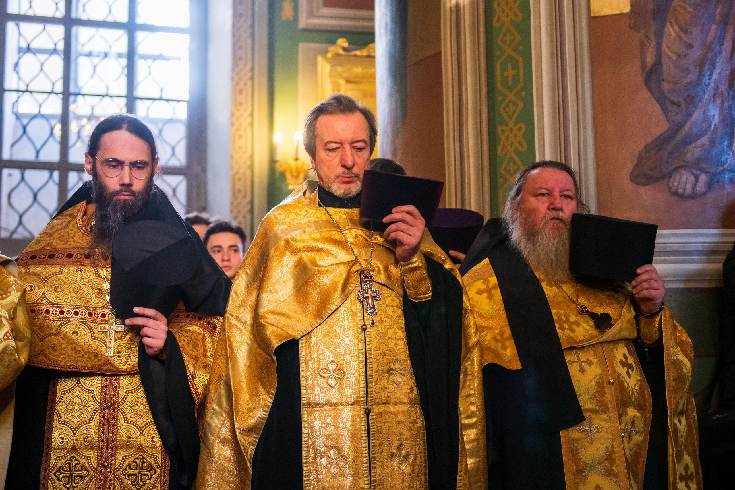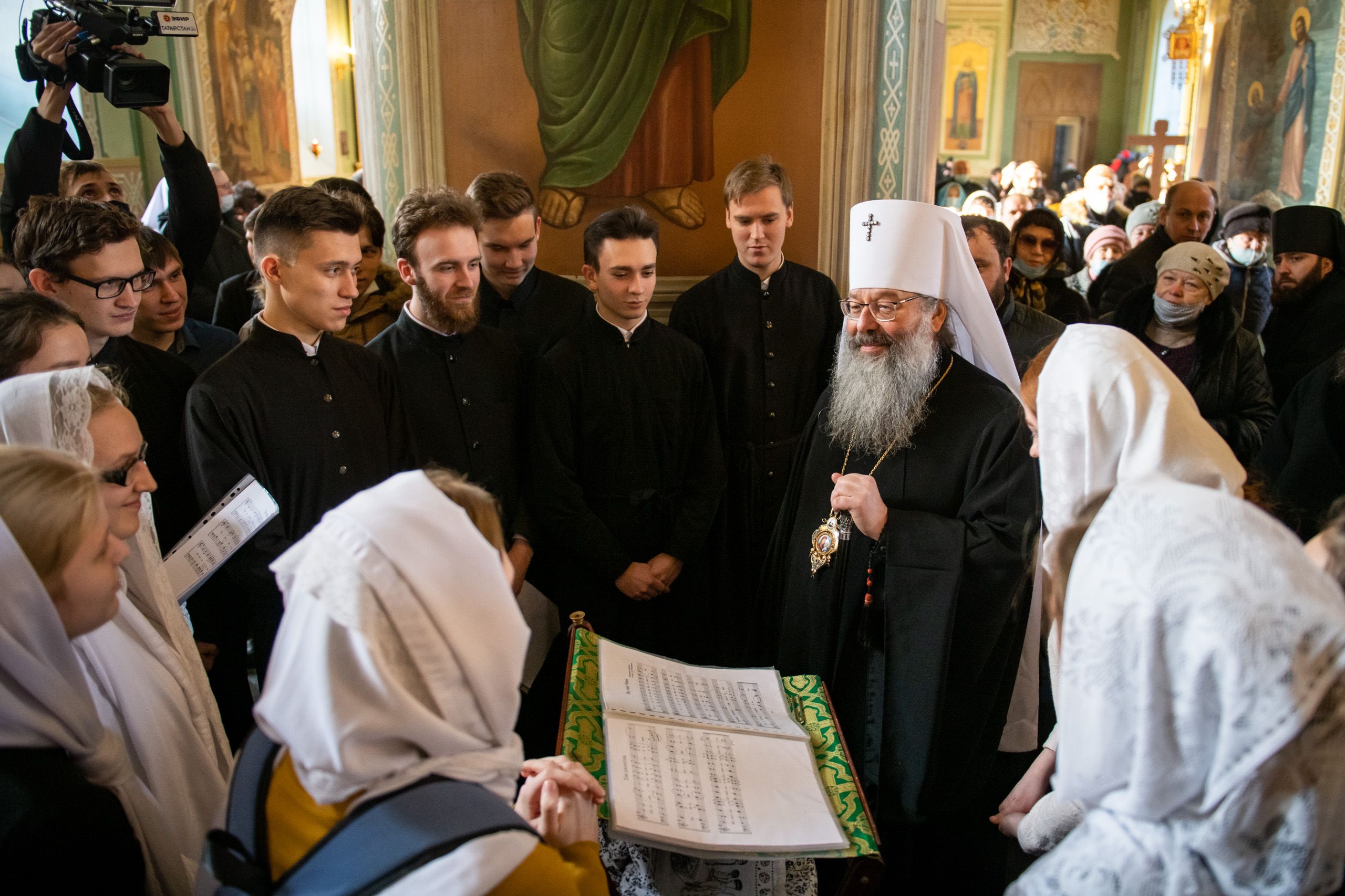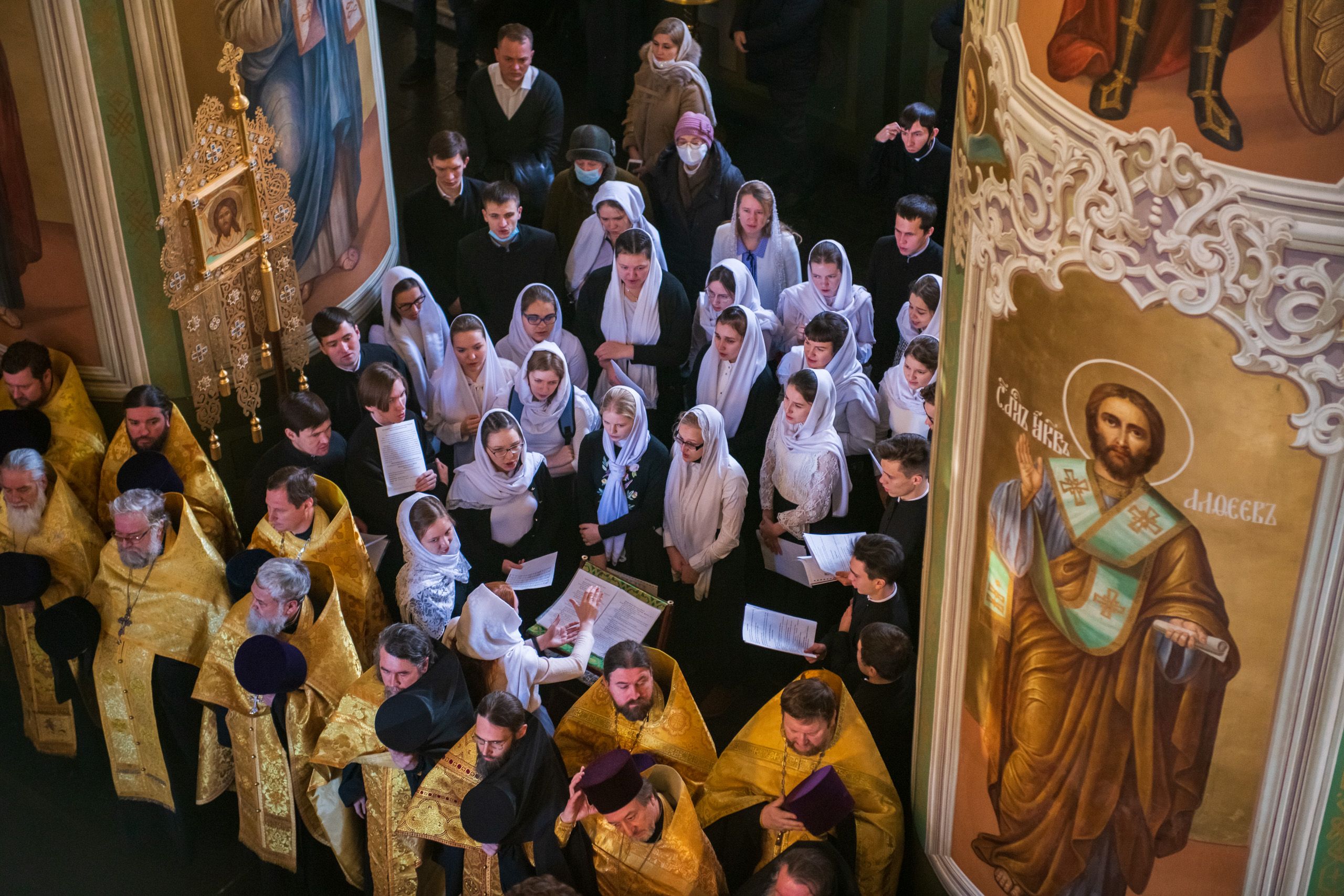 Богослужебные песнопения исполнялись смешанным хором Казанской духовной семинарии под управлением Ксении Савочкиной.