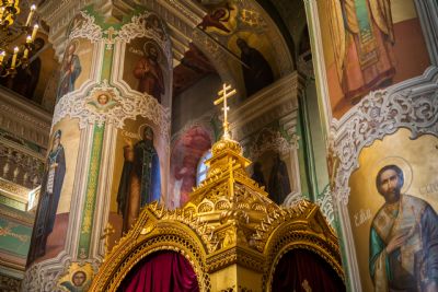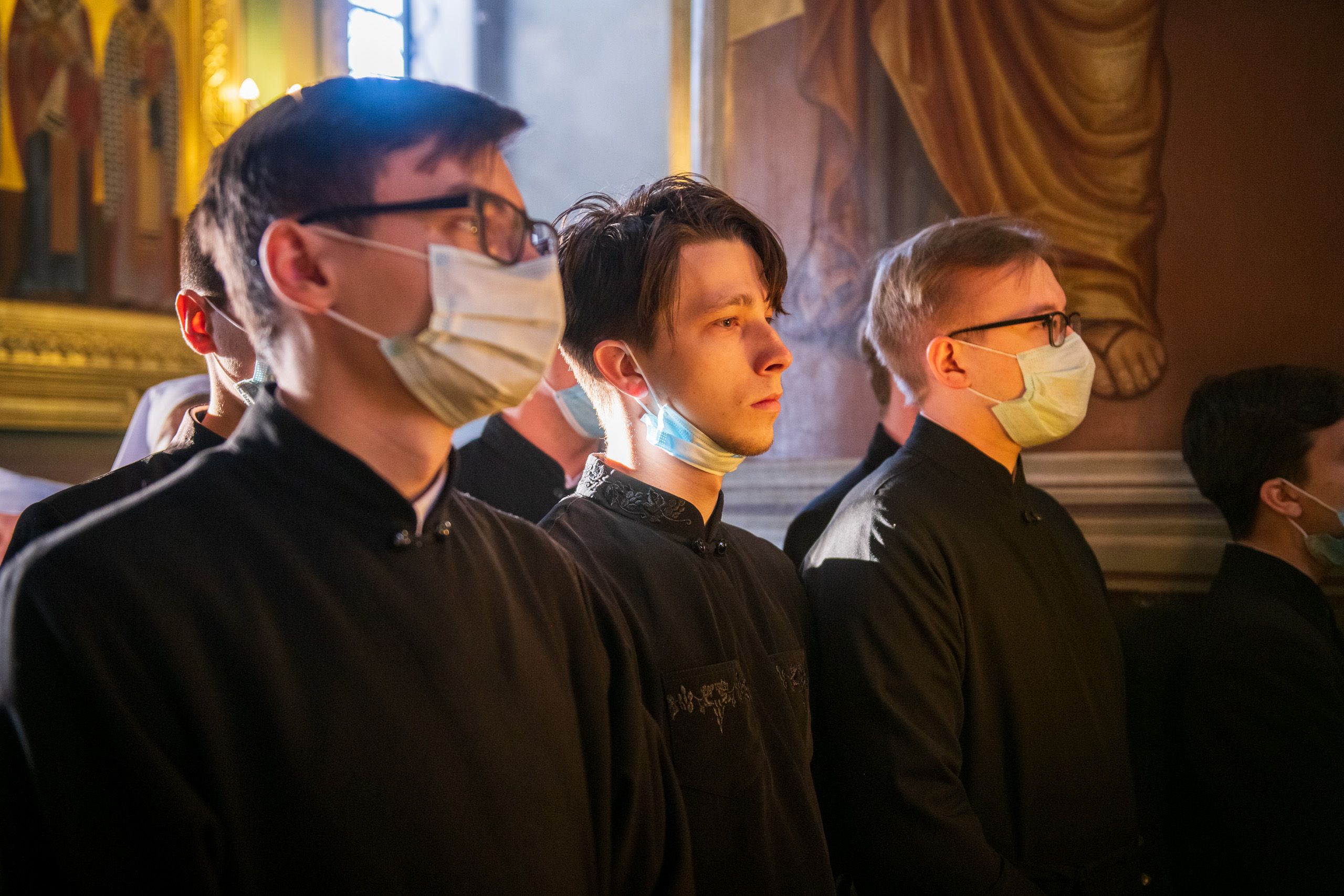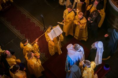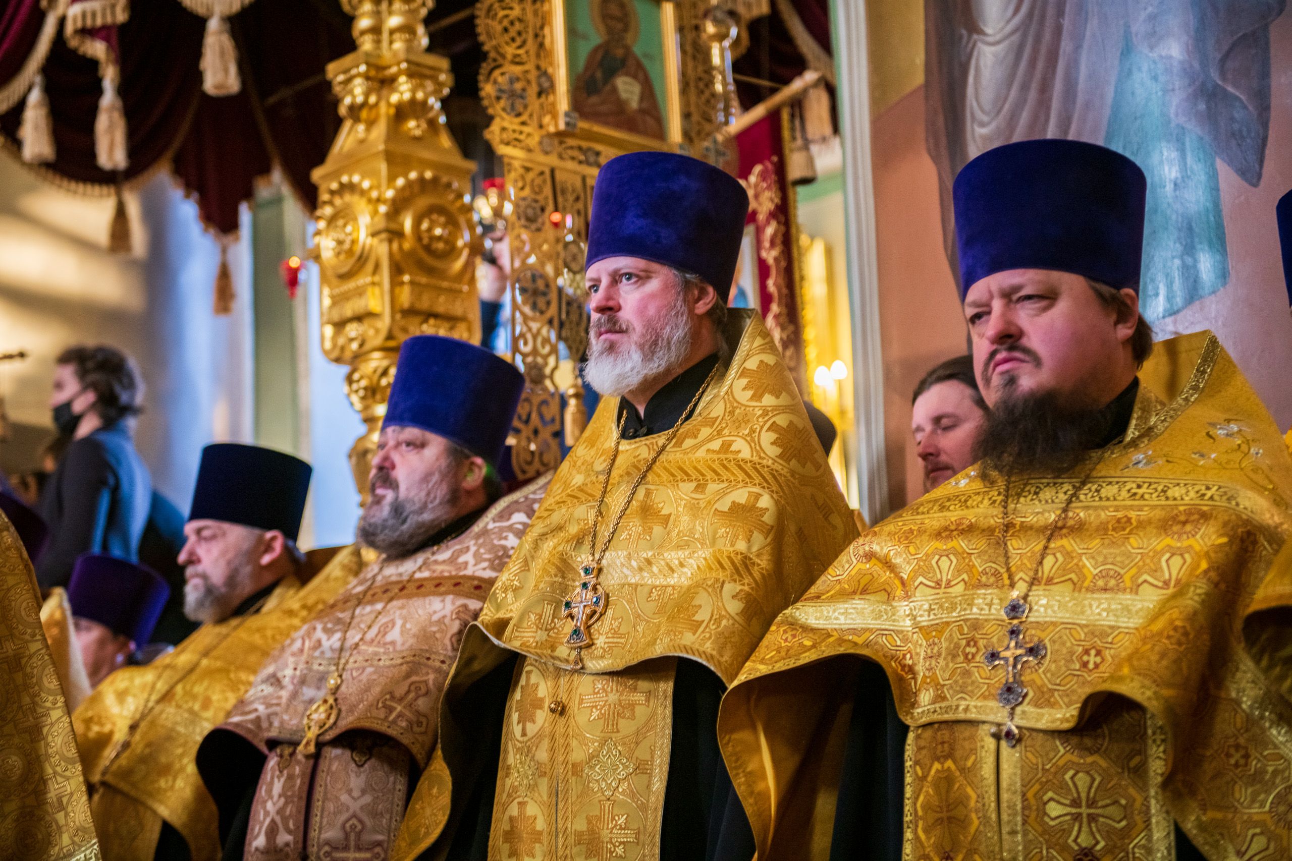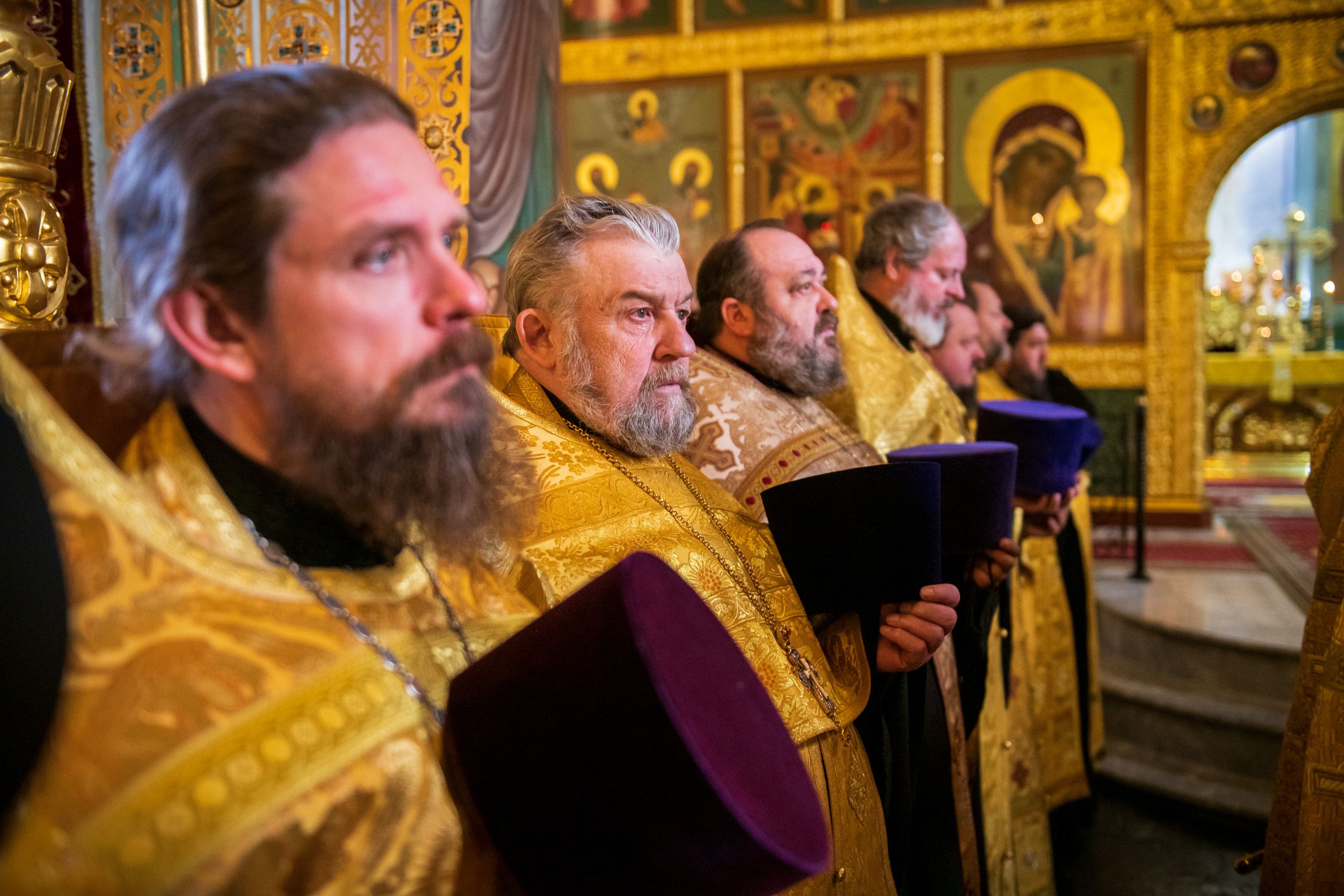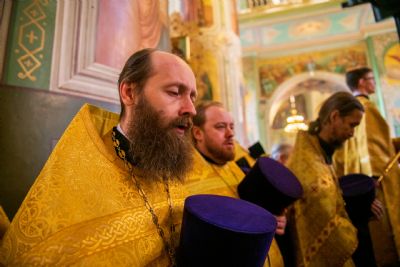 Богослужебные песнопения исполнялись смешанным хором Казанской духовной семинарии под управлением Ксении Савочкиной.