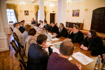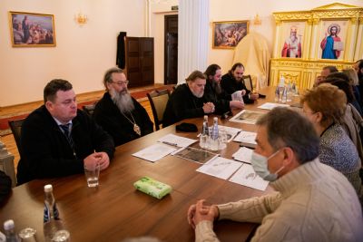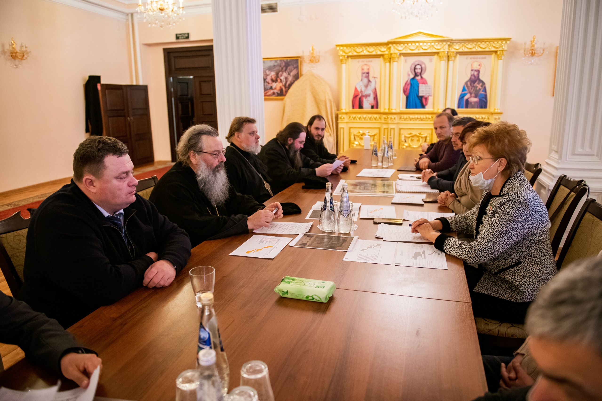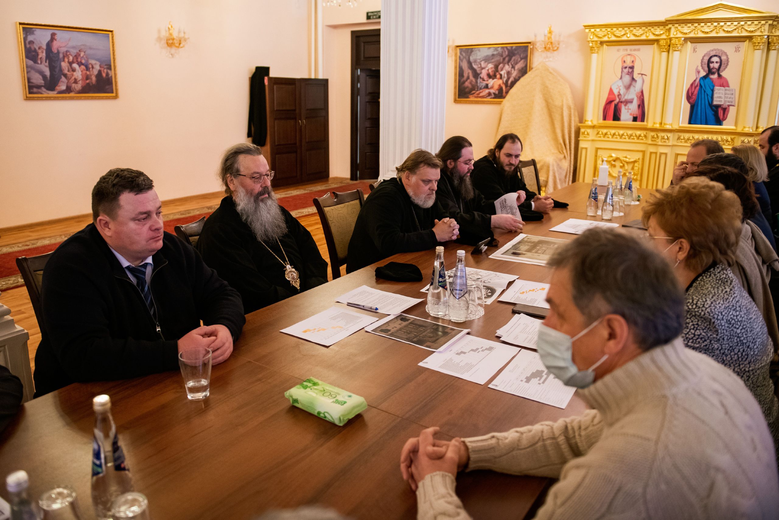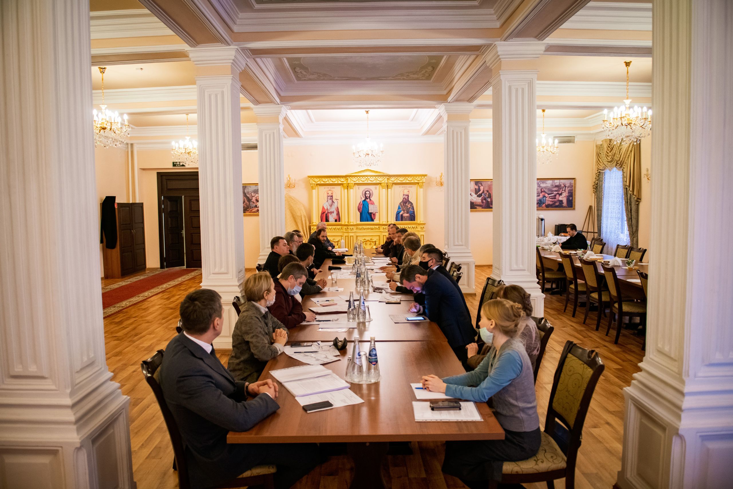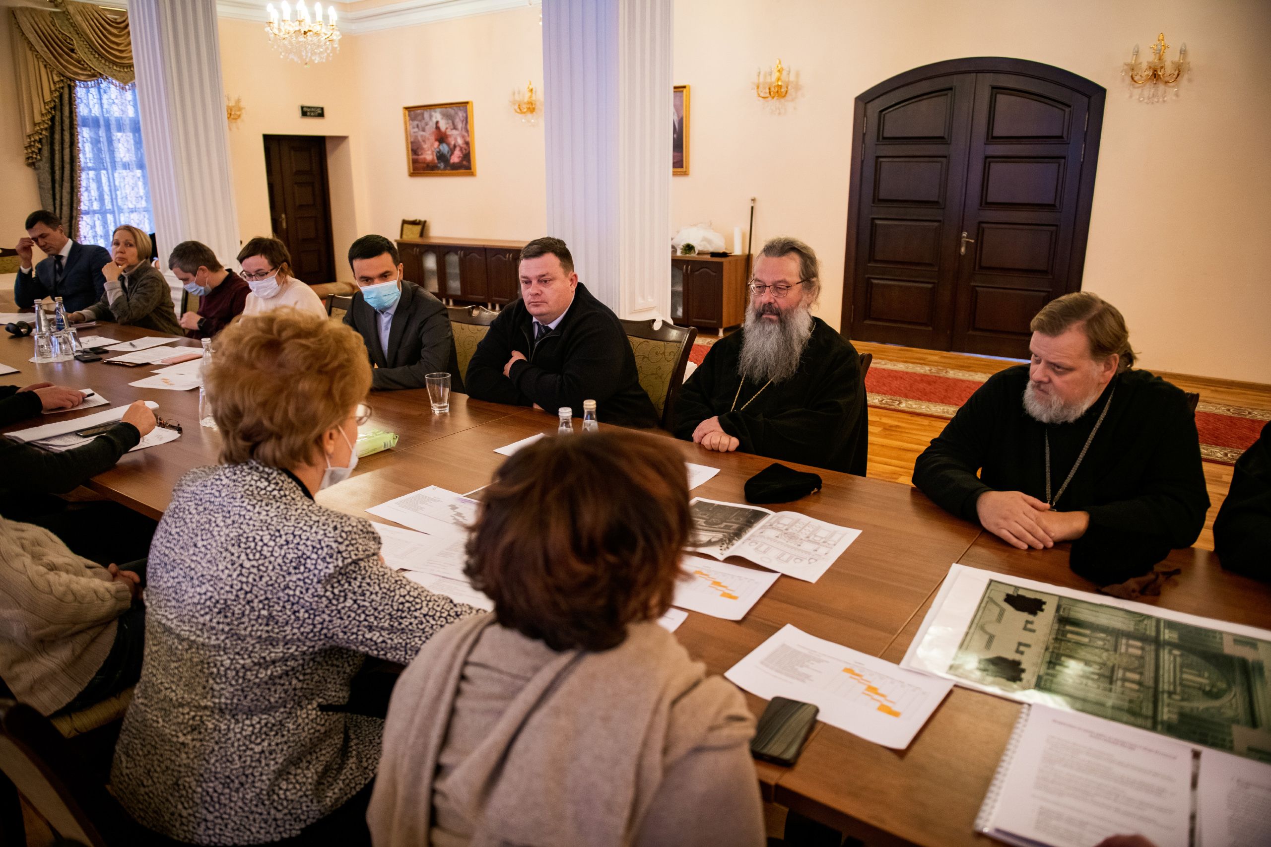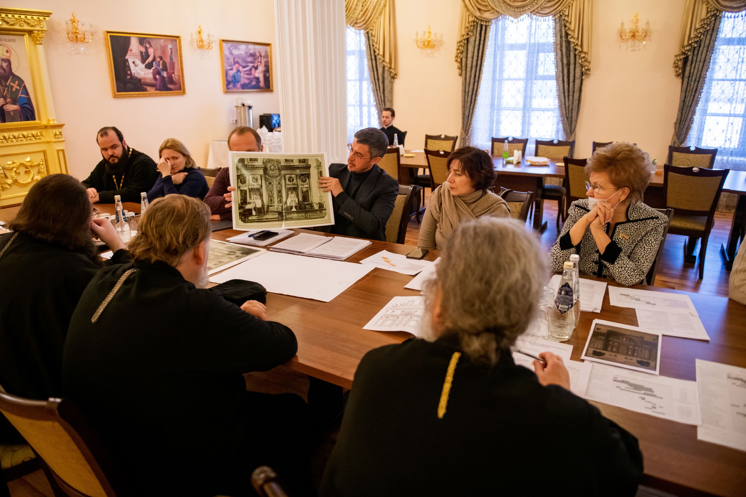 Далее участники совещания обсудили ход изготовления трёх иконостасов строящегося храма. С докладом, посвящённым истории создания иконостасов утраченного собора и проекту изготовления новых, выступил Михаил Федотов. По проекту М.Е. Емельянова первоначально предполагалось установить мраморный иконостас с позолоченной резьбой и бронзовым декором. Однако по причине высокой стоимости материалов предшественники отказались от этого решения.