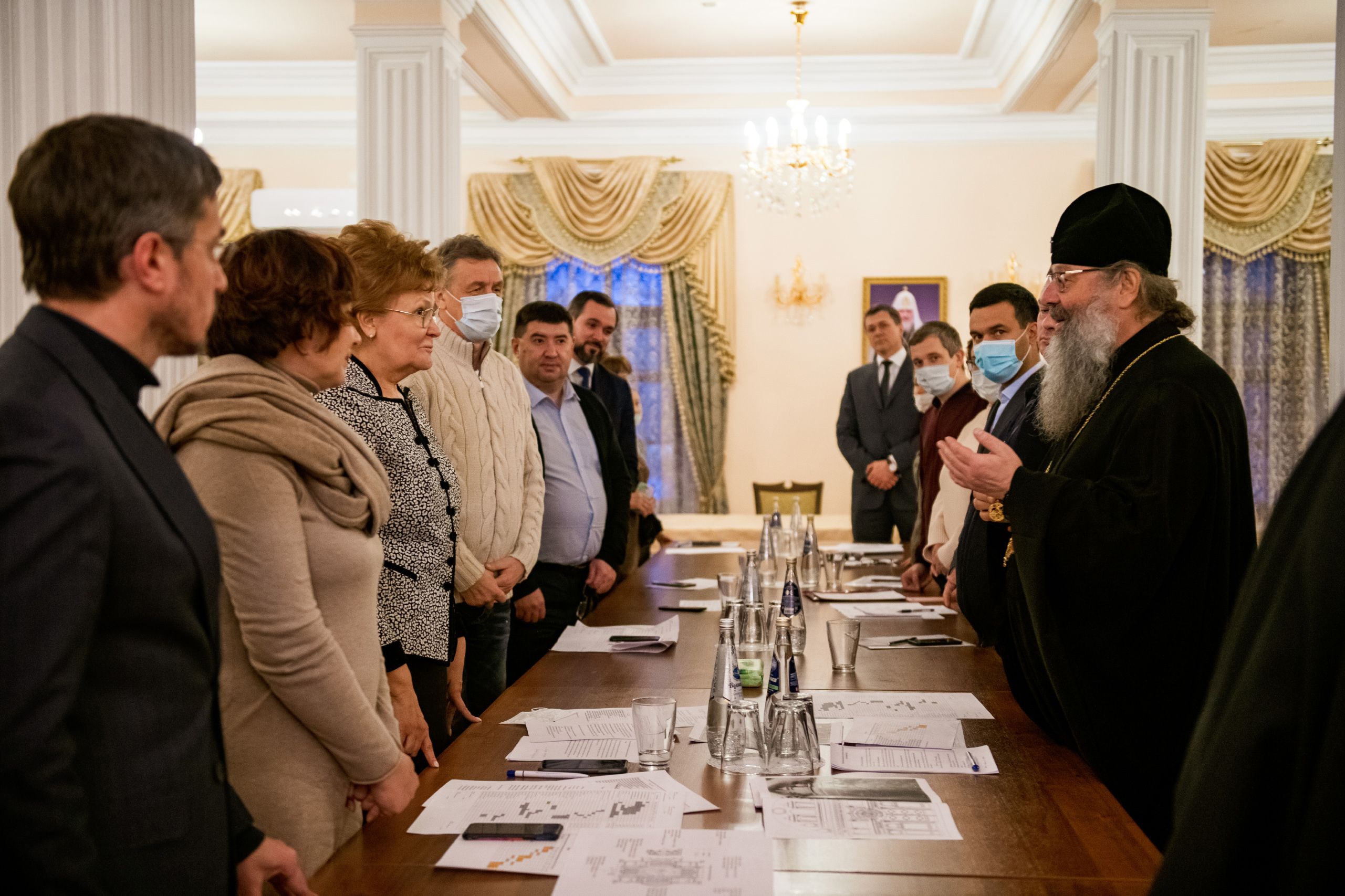 В собрании приняли участие председатель Экспертного совета по церковному искусству, архитектуре и реставрации протоиерей Леонид Калинин, генеральный директор фирмы-подрядчика ООО «Евростройхолдинг+» Владимир Александрович Казилов и заместитель директора Тимур Алмазович Алишев, начальник отдела реставрации ГКУ «Главное инвестиционно-строительное управление Республики Татарстан» Майя Николаевна Морозова, председатель комиссии по воссозданию росписи собора Казанской иконы Божией Матери Светлана Глебовна Персова, архитектор ГУП «Татинвестгражданпроект» Татьяна Григорьевна Ксенофонтова, руководитель ООО «Мастерская Пахомова» Вячеслав Валентинович Пахомов, руководитель мастерской «Палехский иконостас» Анатолий Владимирович Влезько и другие.