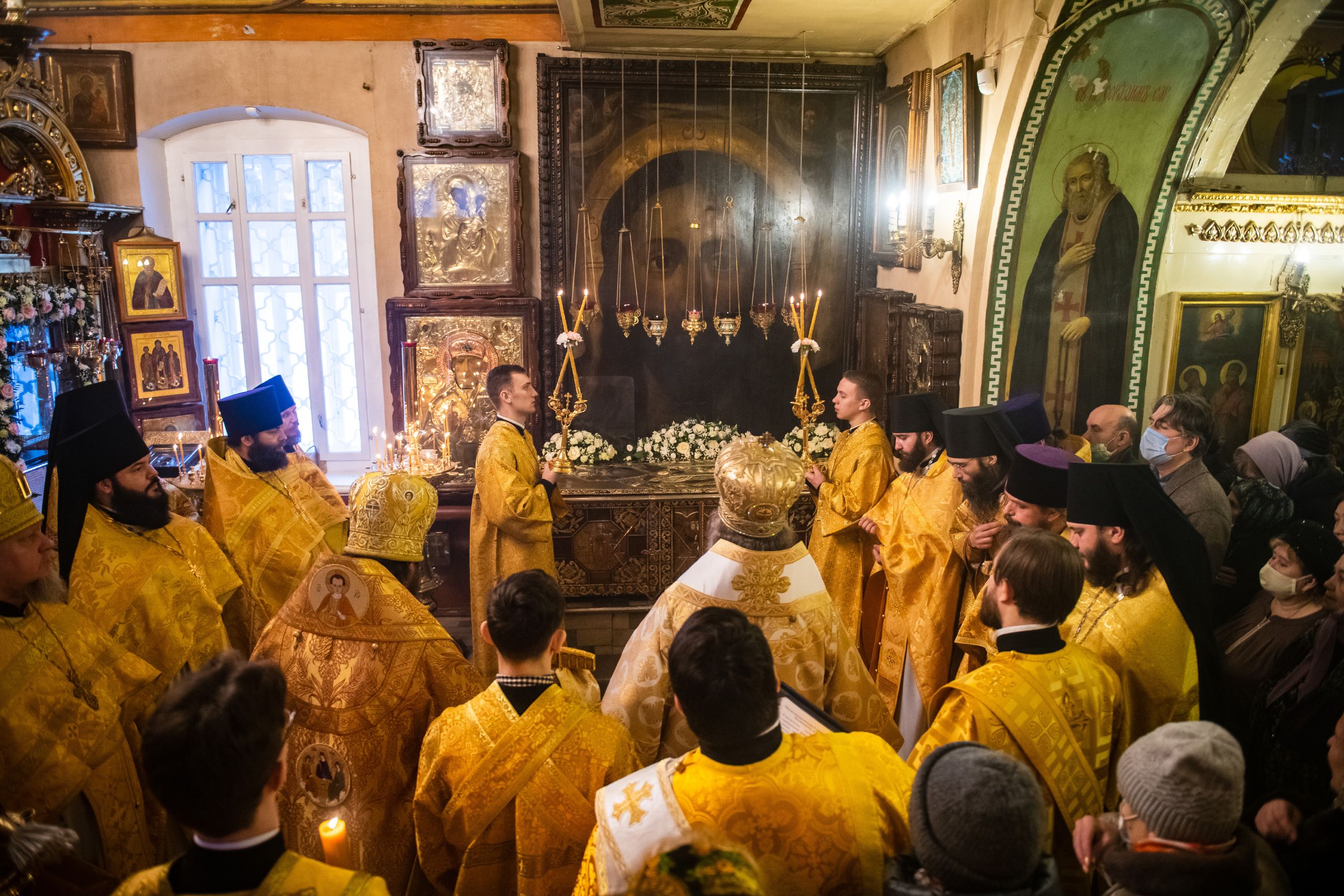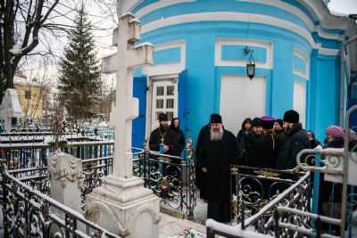 Митрополит Кирилл совершил заупокойную литию, помянув приснопамятных архиепископа Казанского и Чистопольского Сергия (Королёва, 18 (30) января 1881 г. — 18 декабря 1952 г.), митрополита Ставропольского и Владикавказского Гедеона (18 декабря 1929 г. — 21 марта 2003 г.) и новопреставленного митрополита Казанского и Татарстанского Феофана (21 мая 1947 г. — 20 ноября 2020 г.).
