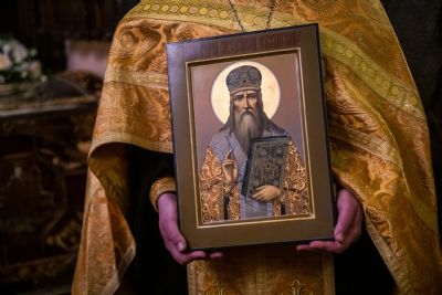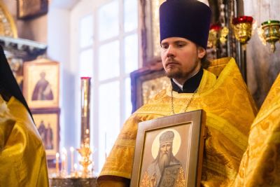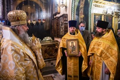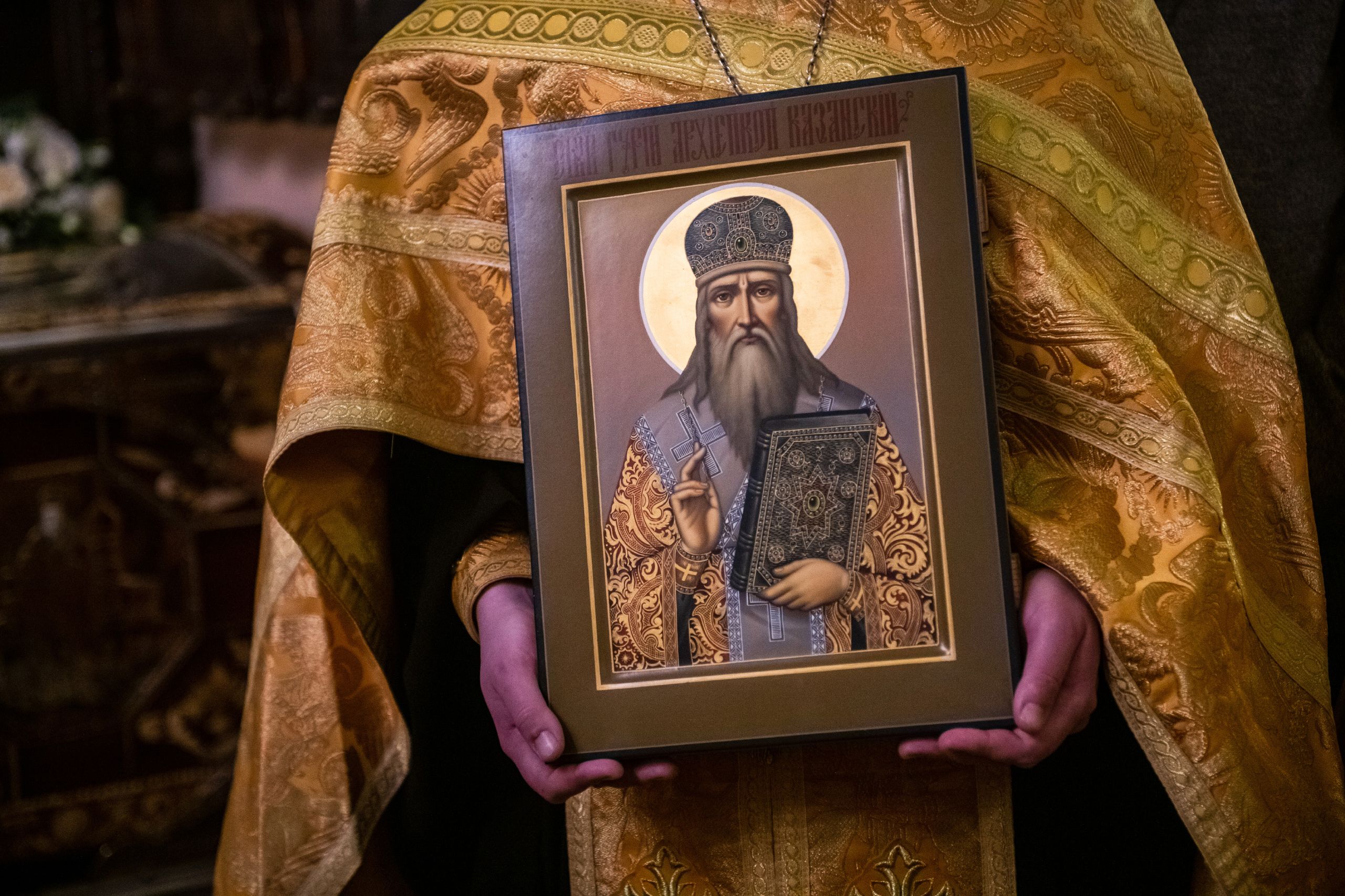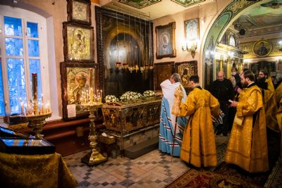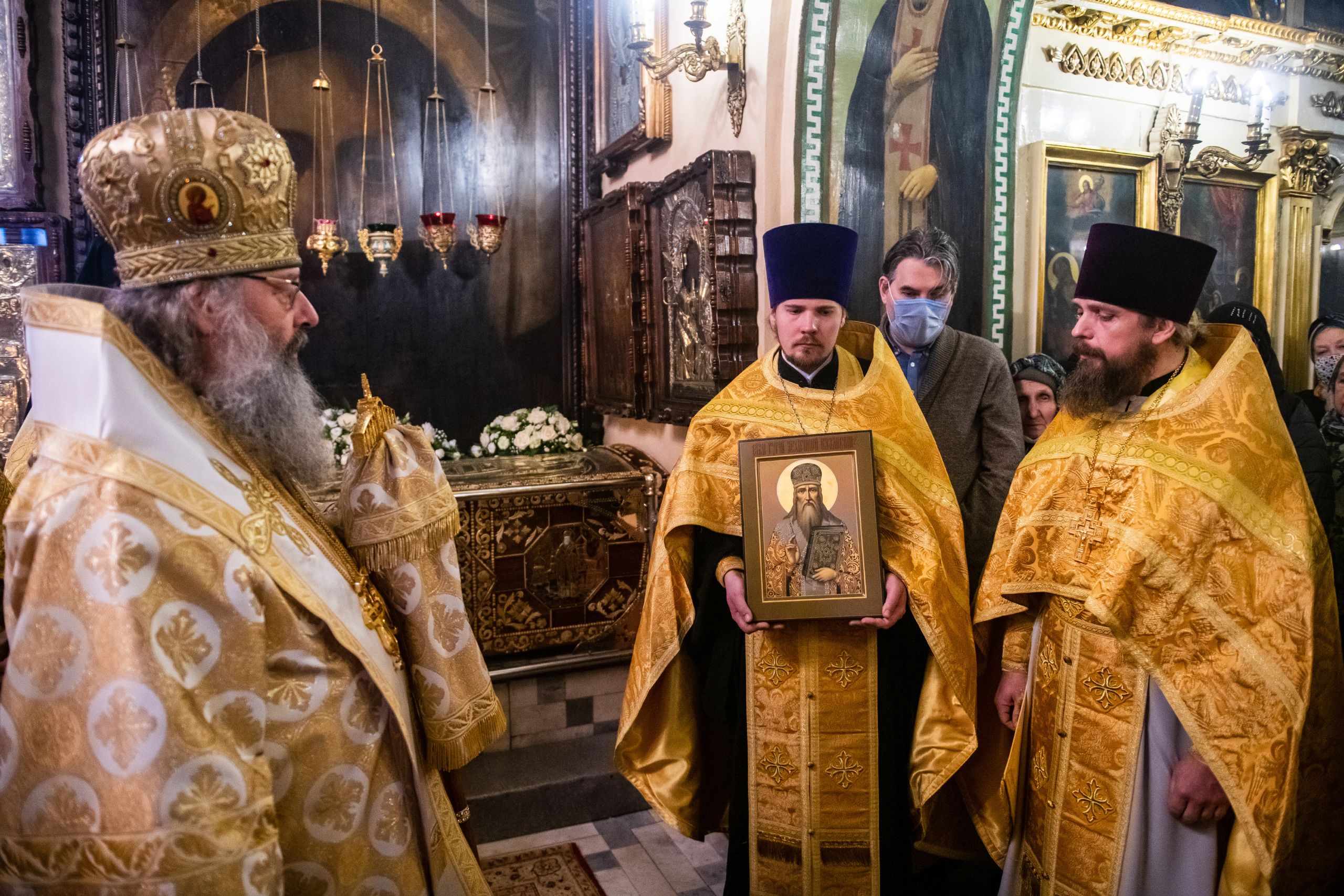 Затем архипастыри совершили молебное пение перед ракой с мощами святителя Гурия, архиепископа Казанского.
