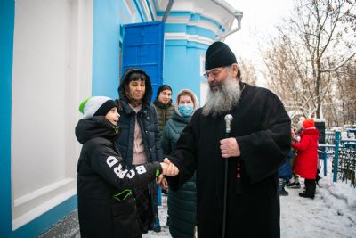 В ответном слове настоятель храма протоиерей Алексий Чубаков поблагодарил Его Высокопреосвященство за совместную молитву и преподнёс на молитвенную память архипастырю икону святителя Гурия Казанского.