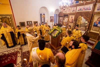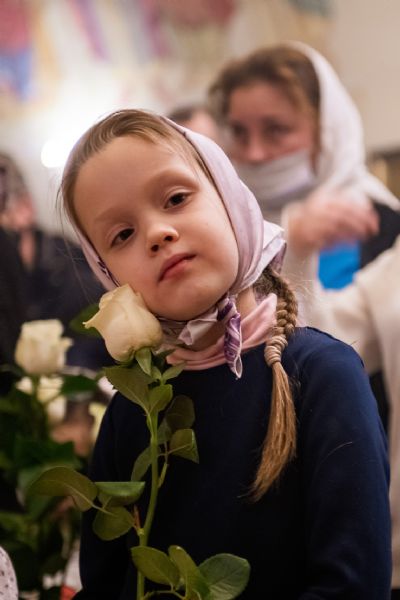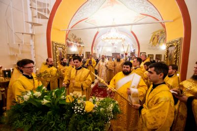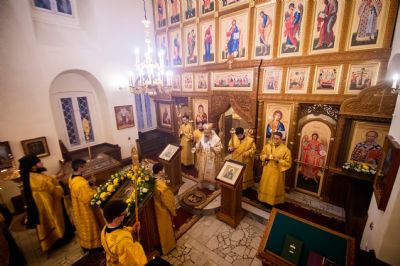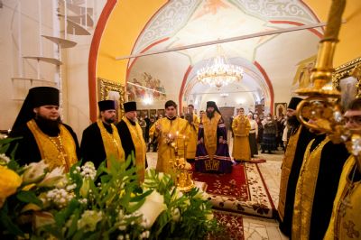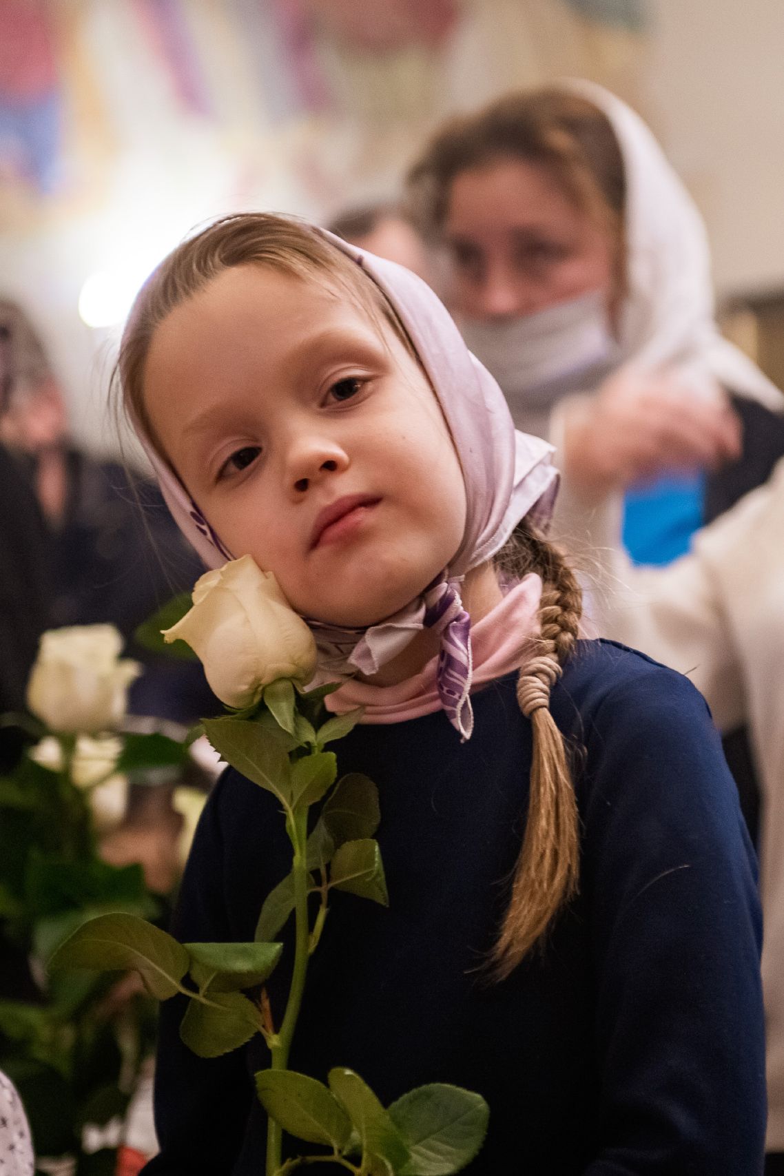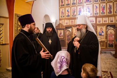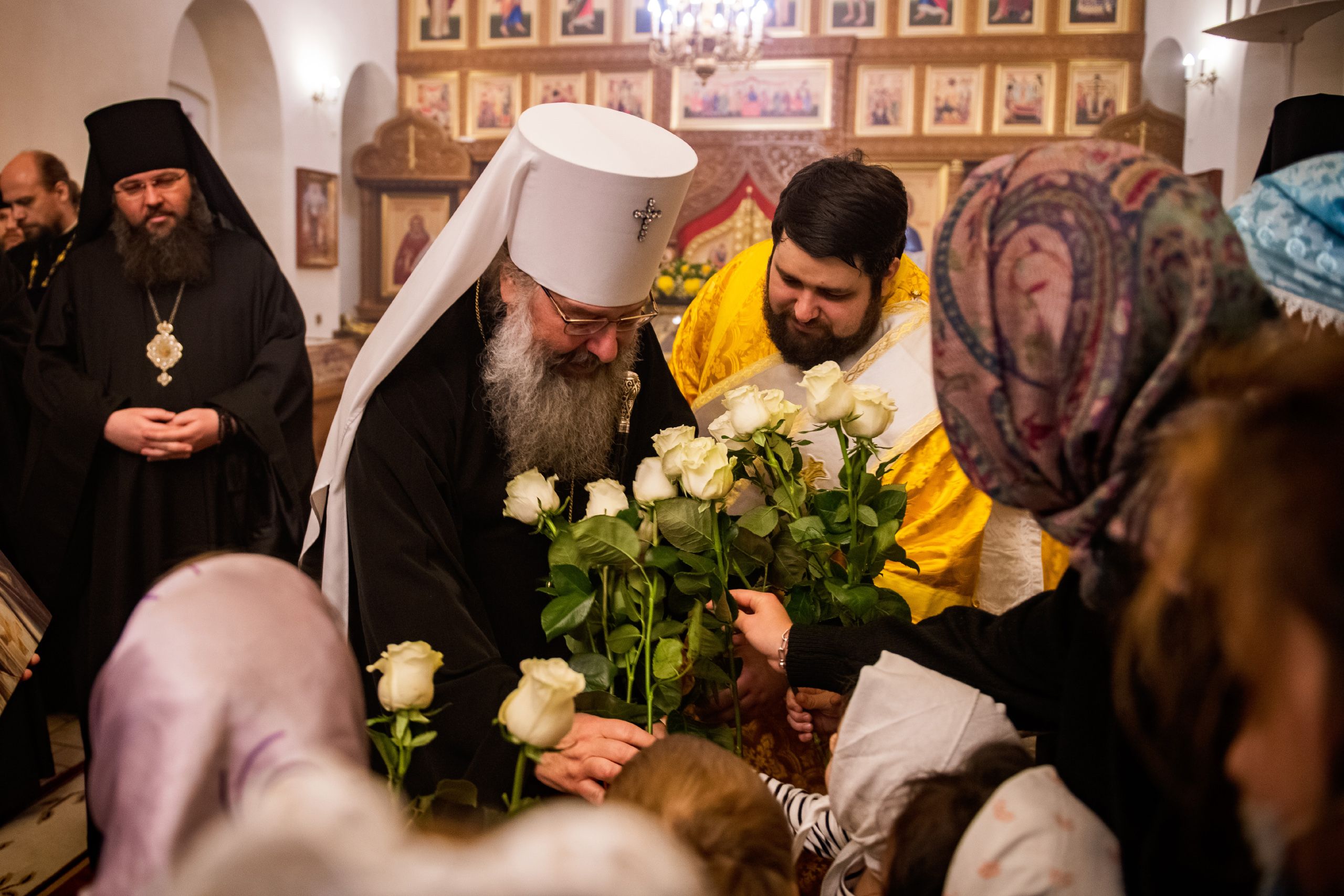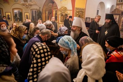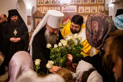 По завершении всенощного бдения духовенством и верующими было пропето славление угоднику Божию. Затем владыка Кирилл пообщался с прихожанами и преподал им благословение. Дети приходской воскресной школы преподнесли архипастырю цветы.