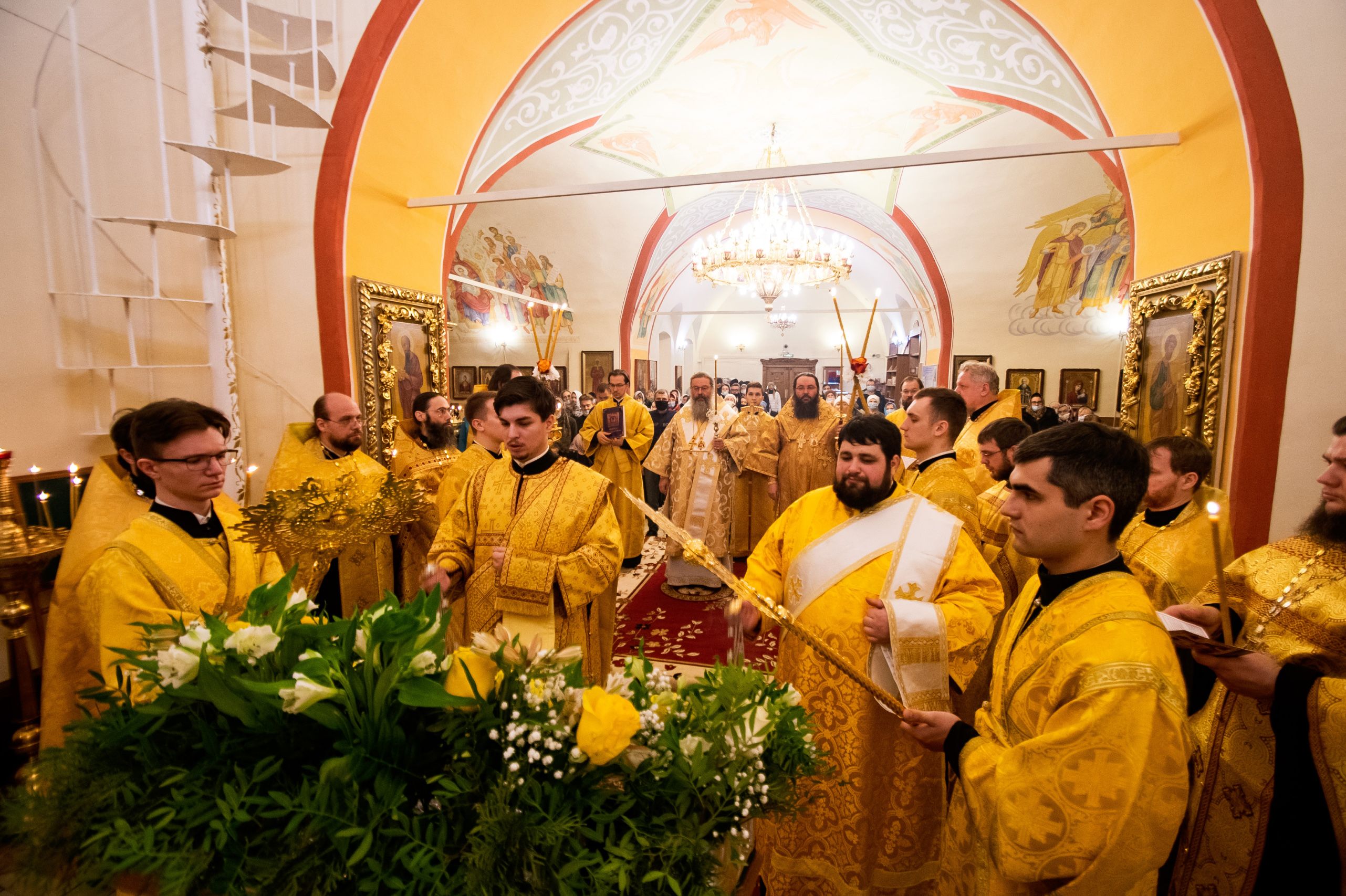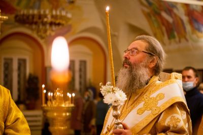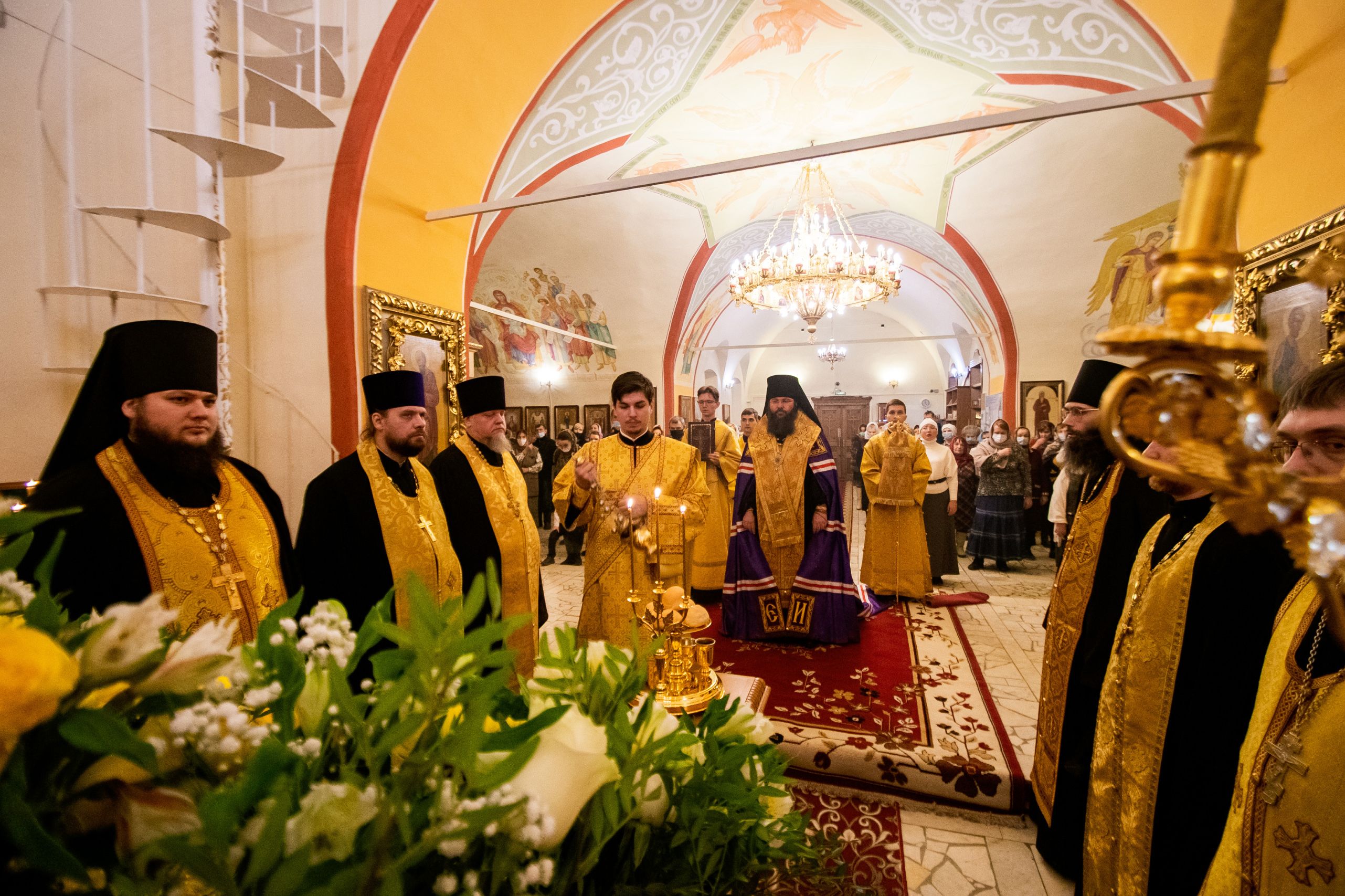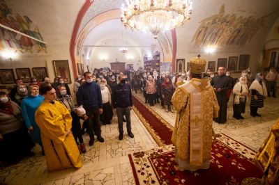 Вечером 18 декабря 2020 года, в канун празднования памяти святителя Николая, архиепископа Мир Ликийских, чудотворца, митрополит Казанский и Татарстанский Кирилли епископ Елабужский Иннокентий совершили всенощное бдение в Никольском храме посёлка Красная Горка города Казани.