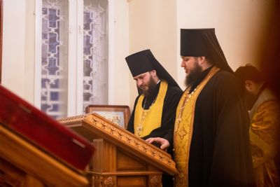 Песнопения исполнил архиерейский мужской хор под управлением Дениса Рогова.