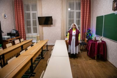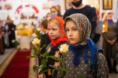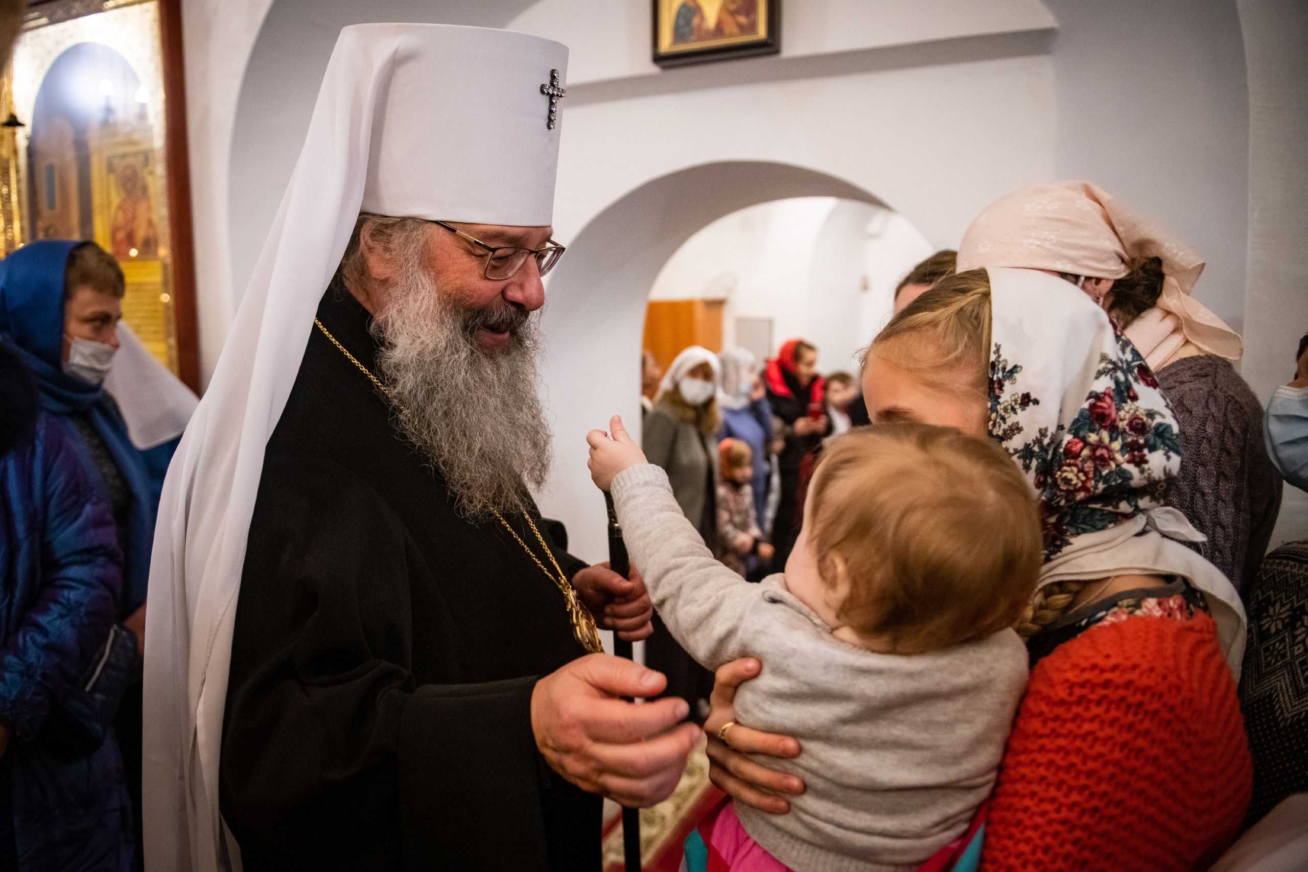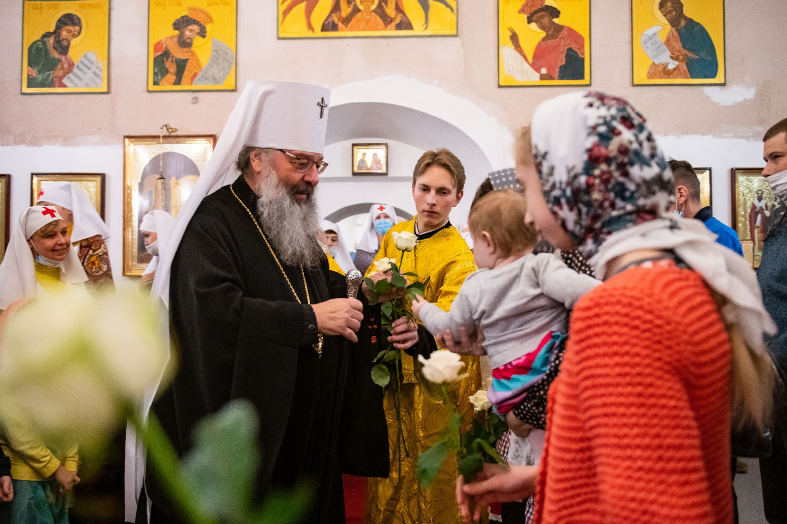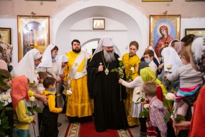 Перед началом богослужения владыку Кирилла приветствовали учащиеся воскресной школы, действующей при подворье.