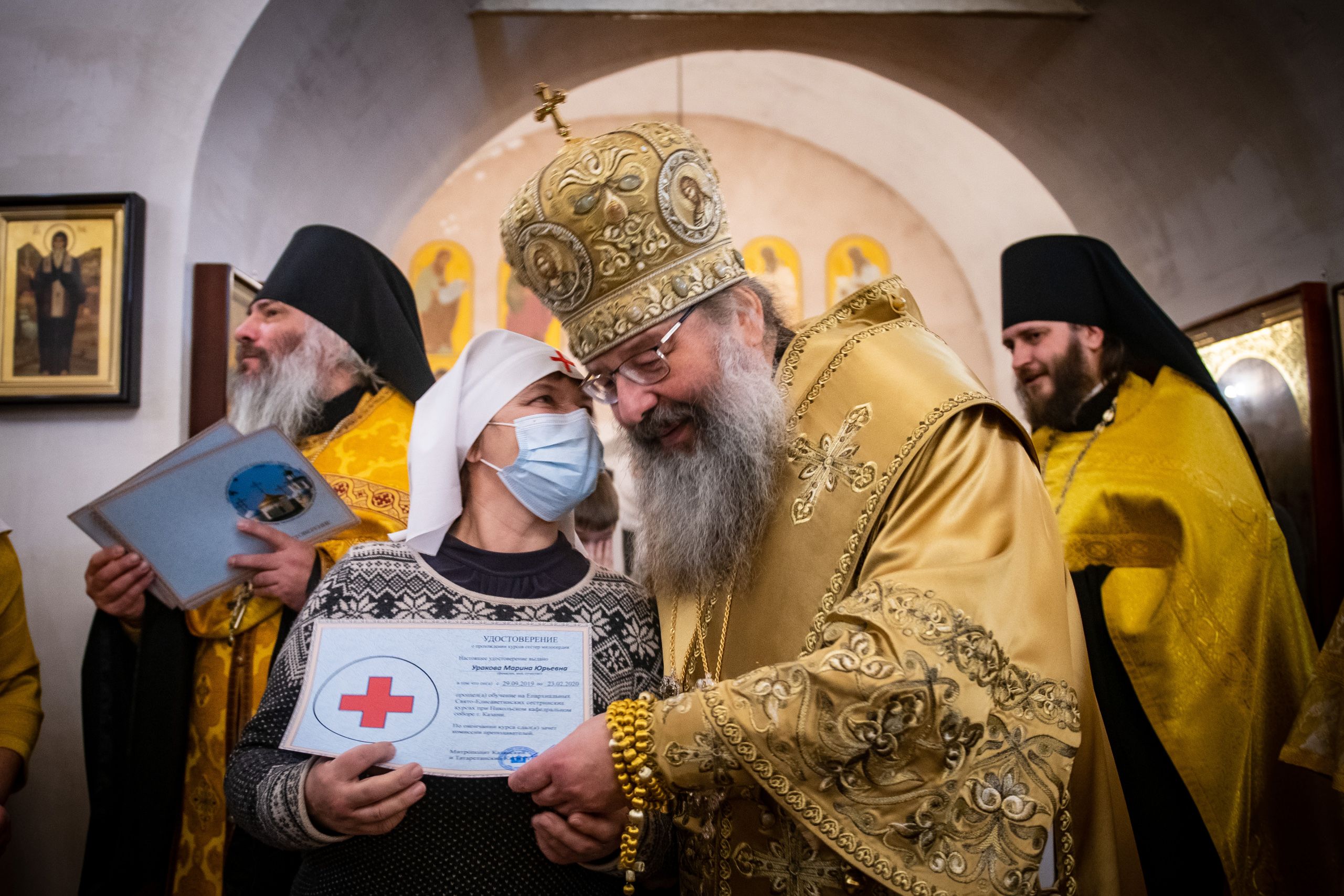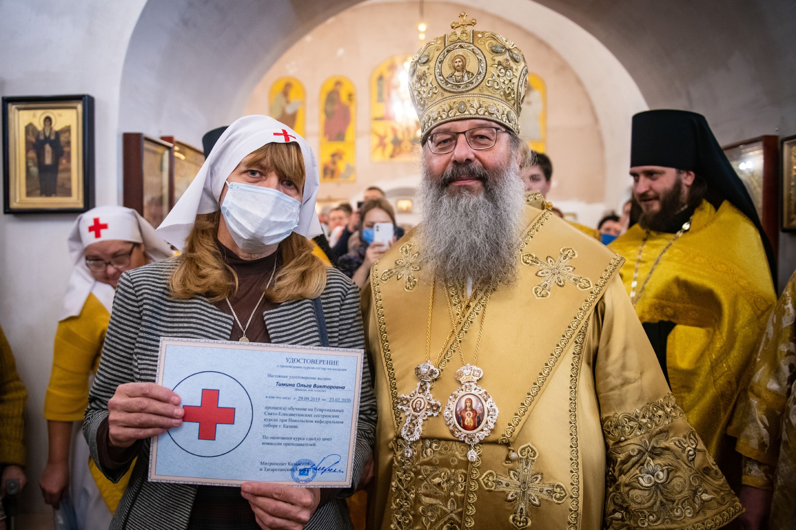 После полиелея состоялось торжественное вручение дипломов выпускникам епархиальных Свято-Елисаветинских медицинских курсов. Учащиеся медицинских курсов, готовясь к участию в социальных проектах Казанской епархии, прослушали лекции по хирургии, паллиативной медицине, онкологии, неврологии, психиатрии, гериатрии и эндокринологии. Занятия проводили квалифицированные врачи и преподаватели Казанского государственного медицинского университета и Казанской государственной медицинской академии.
