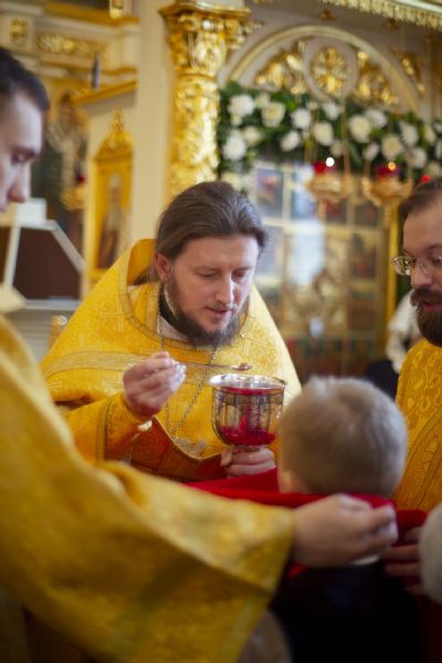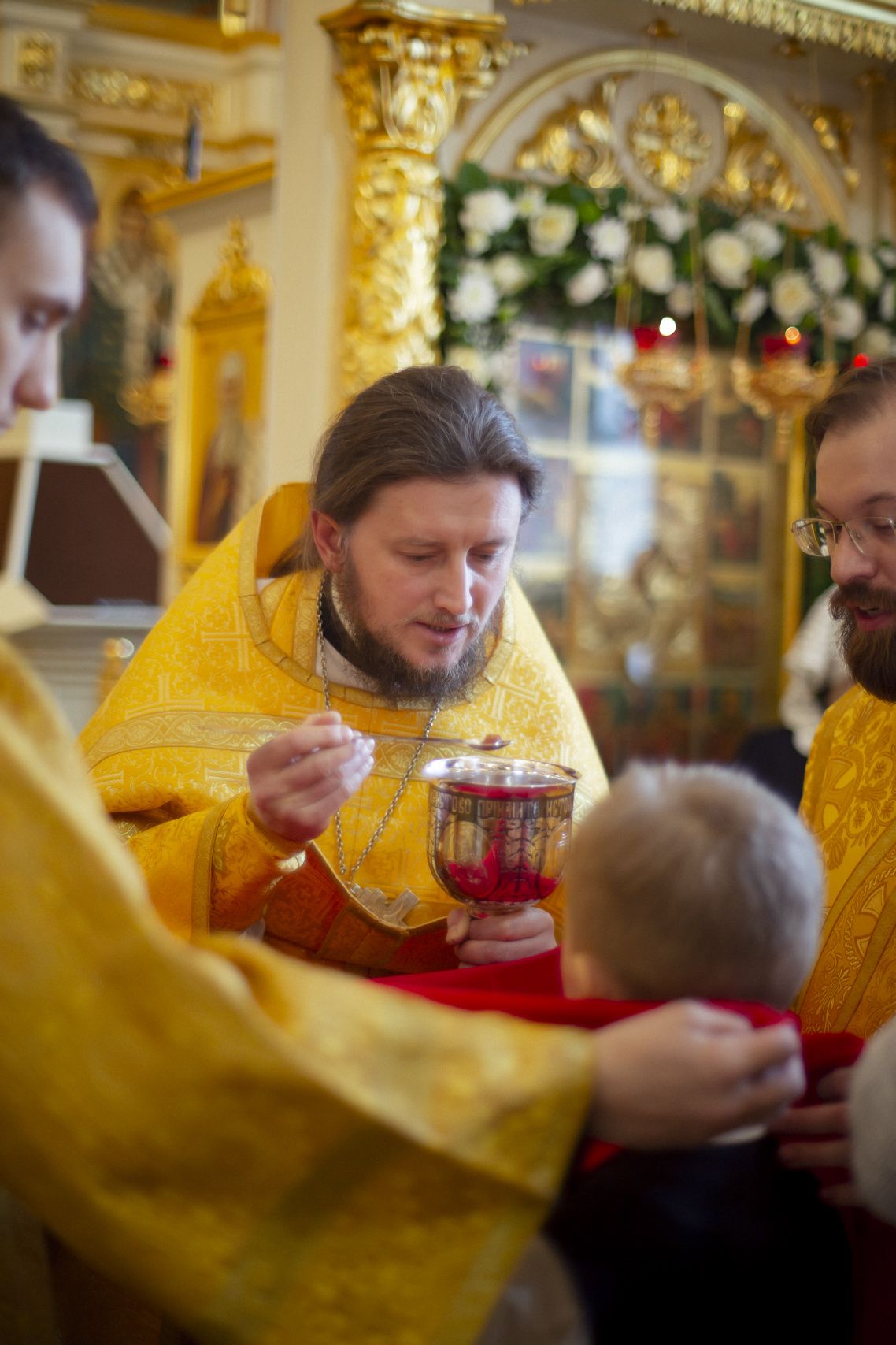 За Литургией молились участники приходской фольклорной студии «Духов день», гимназисты, прихожане.