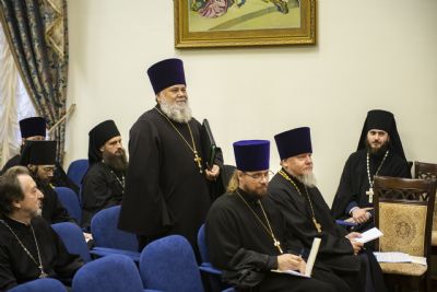 Затем участники собрания рассмотрели вопрос об изменении состава Епархиального совета Казанской епархии. В состав епархиального органа введён секретарь Татарстанской митрополии иеромонах Кирилл (Корытко).