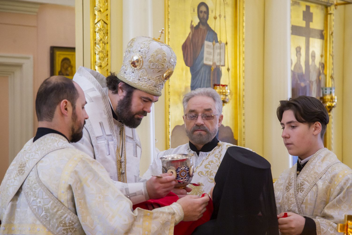 По запричастном стихе проповедь произнёс настоятель Никольского кафедрального собора города Казани протоиерей Иоанн Барсуков.
