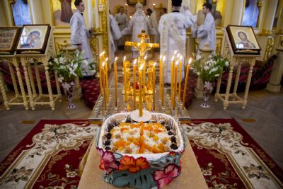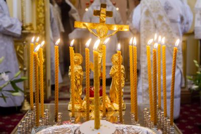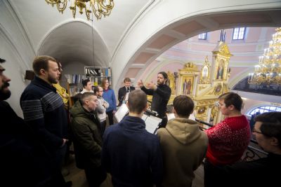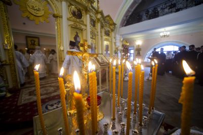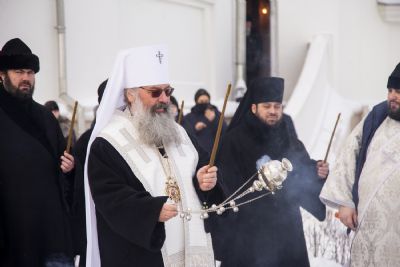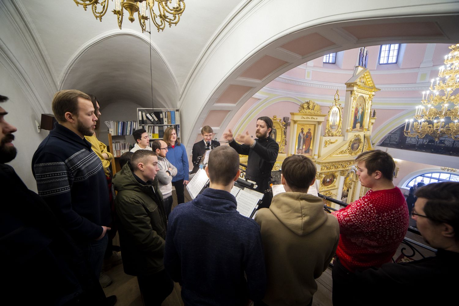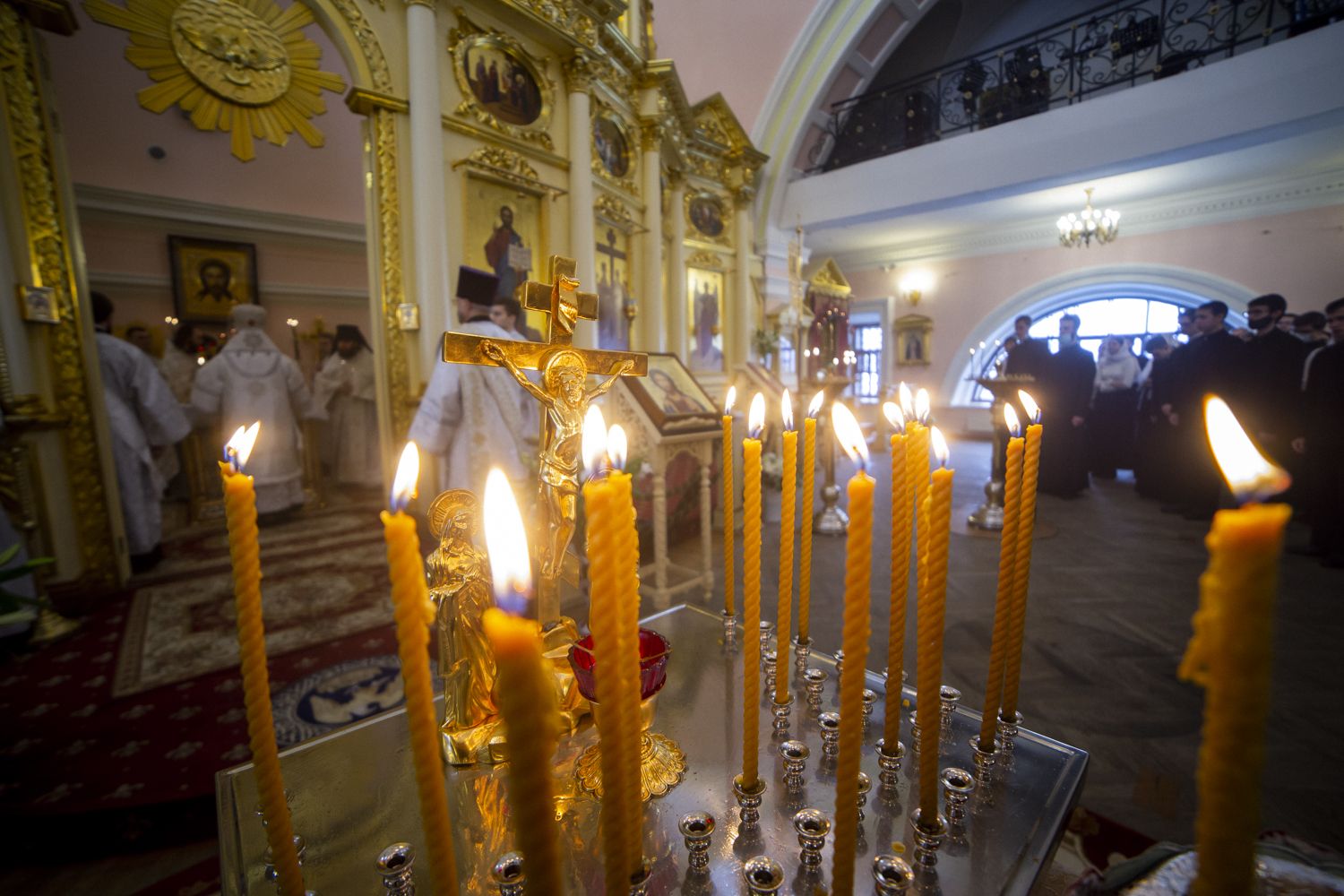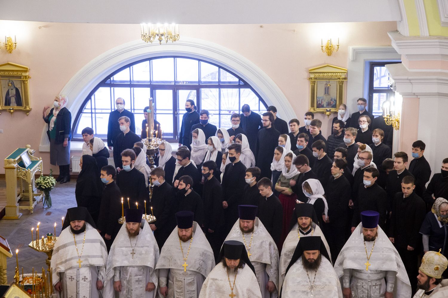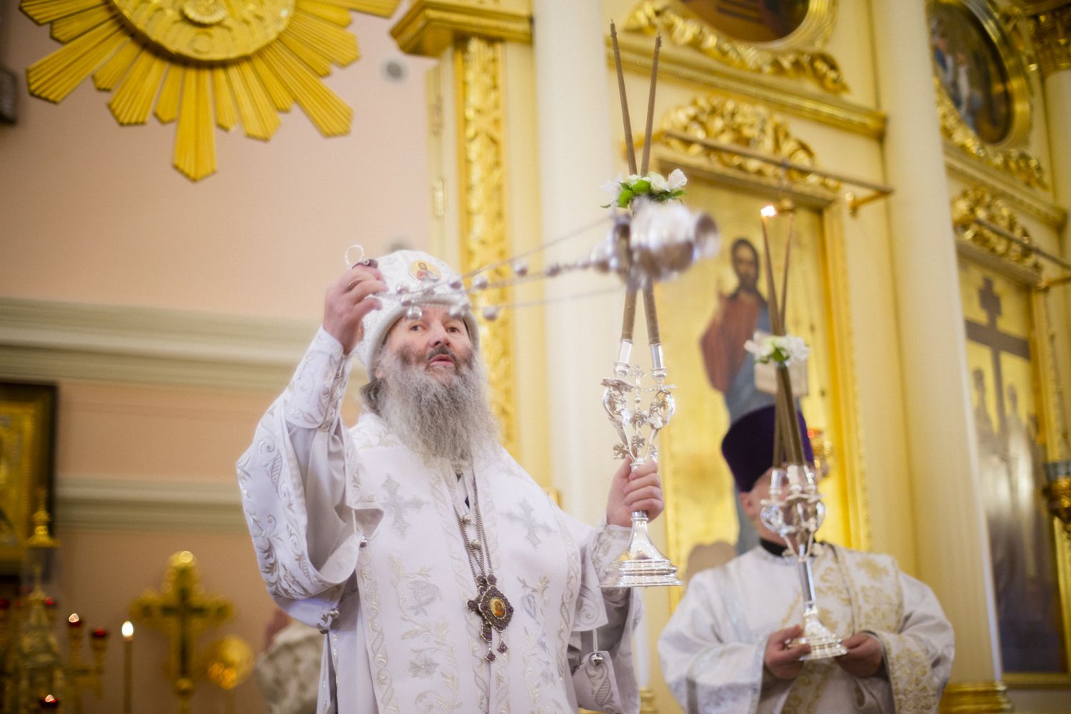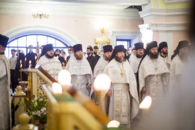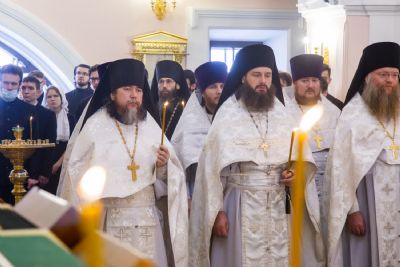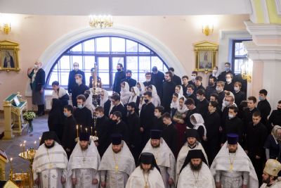 Богослужебные песнопения исполнялись архиерейским мужским хором под управлением Дениса Рогова.