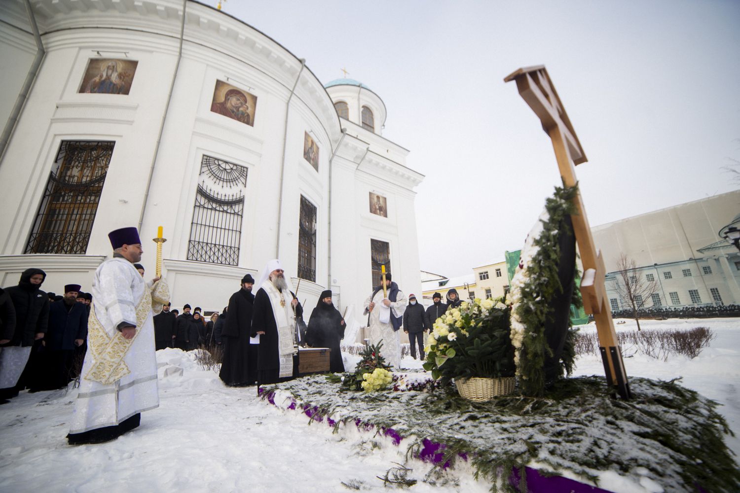 Владыка Феофан своим гигантским трудом во многих и многих местах своего служения заслужил того, чтобы быть погребённым подле Божией Матери, у того Её Казанского образа, у которого молились миллионы людей. Кто здесь погребён? Единицы, и владыка причтён к этим единицам. Из своего 73-летнего жизненного пути он только пять лет пробыл здесь, в Татарстане, но был удостоен этой великой чести, которую Богородица даровала ему — возможности быть рядом с Ней. Именно он, его сила и энергия подвигли очень разных людей воздвигнуть здесь дом Пресвятой Богородицы, воздвигнуть на прежнем месте святилище Божией Матери. Это великая честь от Бога, и она сегодня дана видимым образом владыке Феофану.
