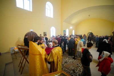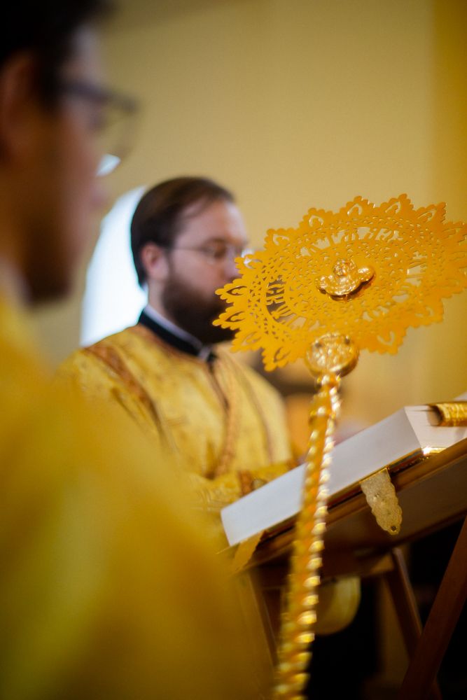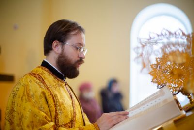 После запричастного стиха отец Кирилл (Корытко) произнёс проповедь.