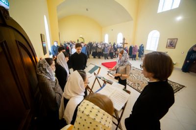 Песнопения исполнил смешанный хор студентов Казанской духовной семинарии под управлением Ксении Савочкиной.