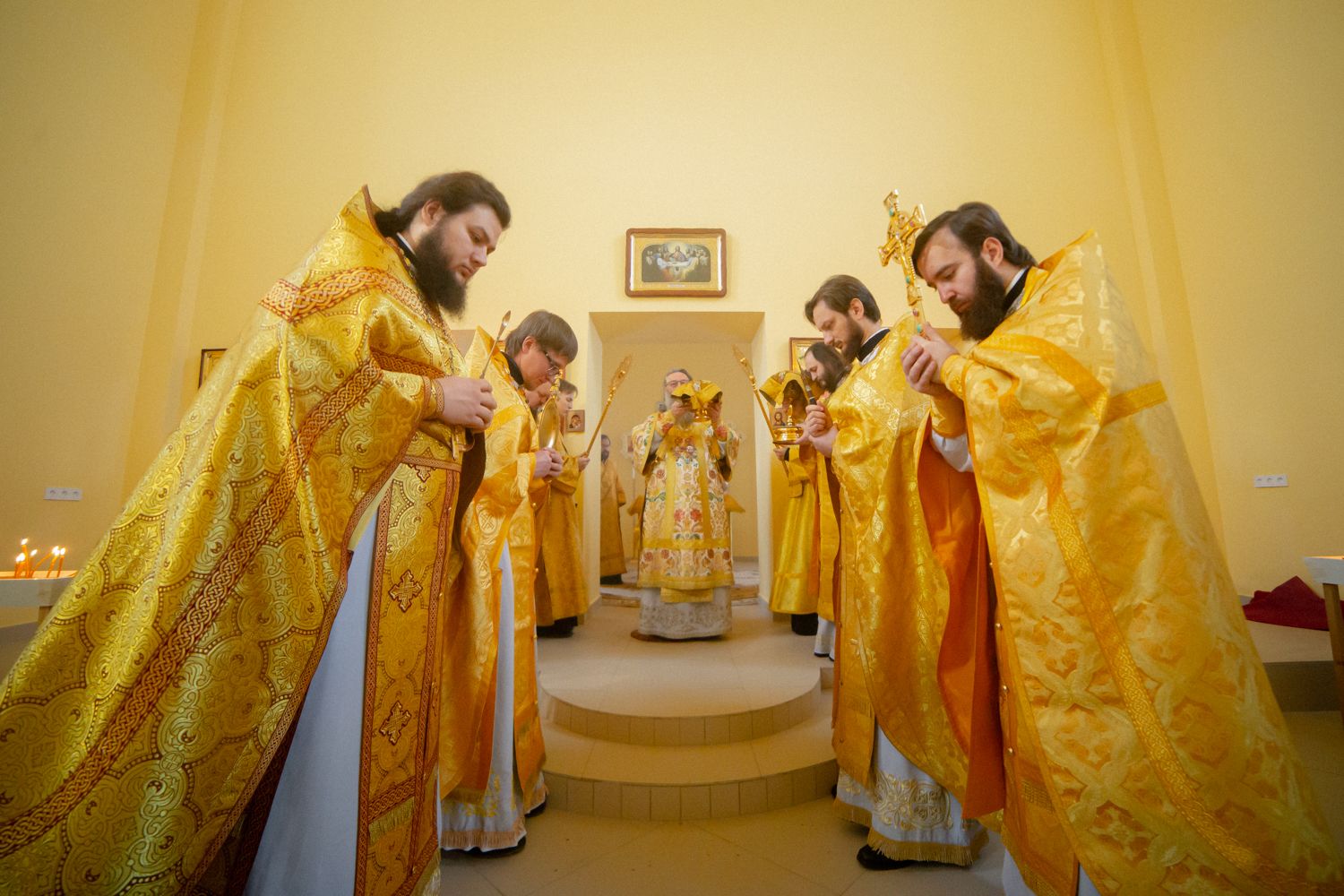 За Литургией Его Высокопреосвященству сослужили секретарь Татарстанской митрополии иеромонах Кирилл (Корытко), настоятель Богоявленского собора города Казани протоиерей Алексий Державин, настоятель Ильинского храма иерей Александр Махов, ректор Екатеринбургской духовной семинарии иеромонах Корнилий (Зайцев), проректор по общим вопросам Казанской духовной семинарии иеромонах Филипп (Киселёв), иеромонах Алексий (Яцейко).
