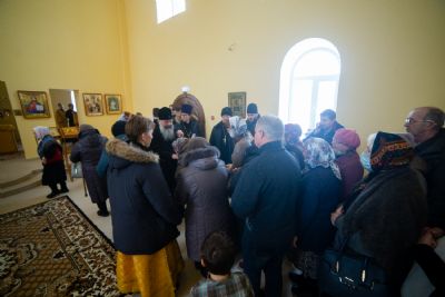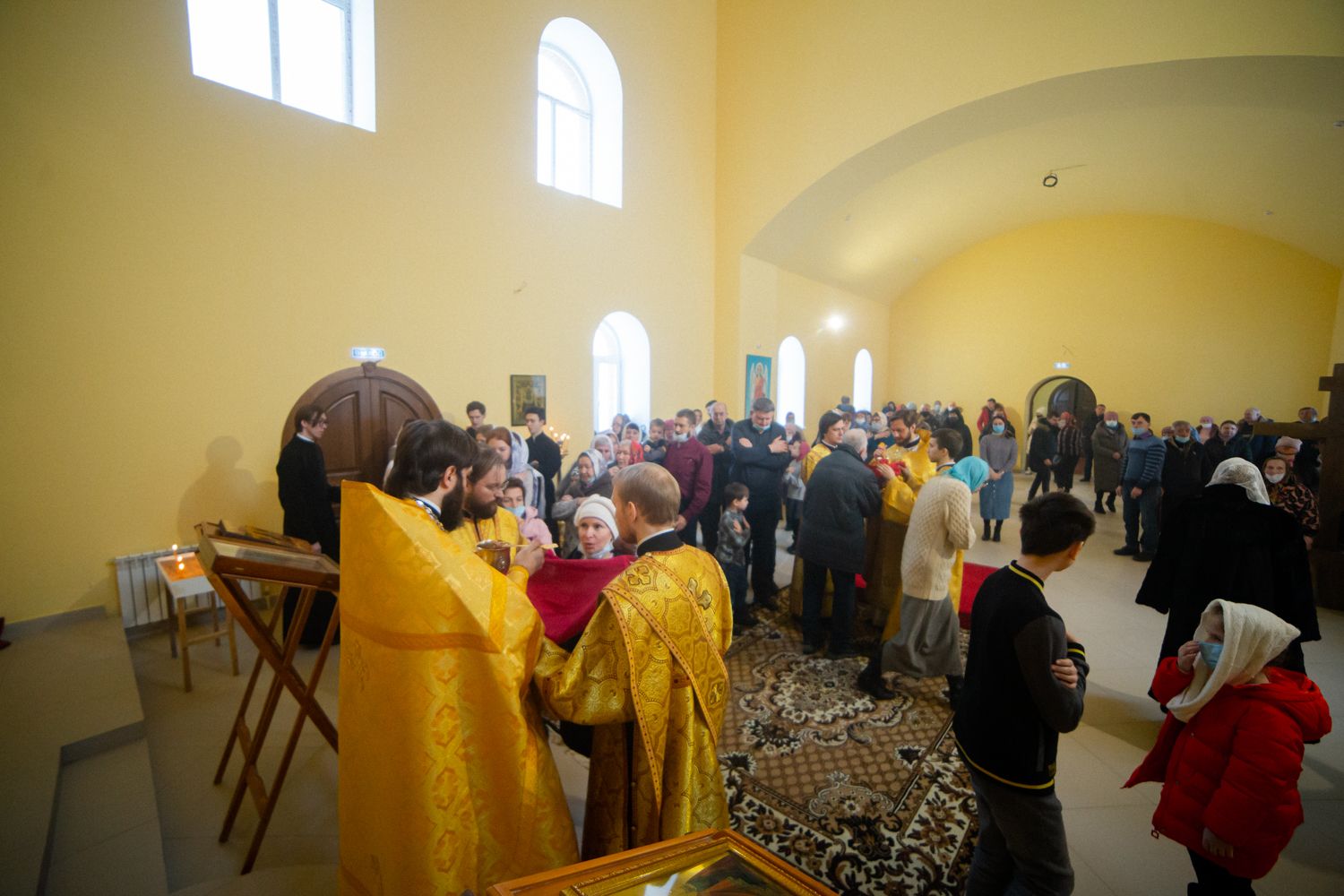 По окончании богослужения митрополит Кирилл поздравил духовенство и прихожан с наступившим гражданским новолетием и приближающимся праздником Рождества Христова. В своём слове архипастырь особо отметил труды инициатора строительства храма — 81-летней жительницы посёлка Борисково Марии Степановны Потаповой. Пенсионерка вкладывает в строительство храма личные сбережения, занимается сбором пожертвований. Значительную материальную помощь приходу оказывают меценаты Казани.