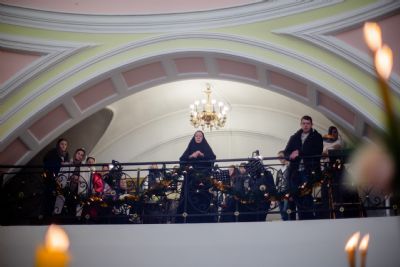 Богослужебные песнопения исполнялись двумя монастырскими хорами — мужским под управлением Дениса Рогова и смешанным под управлением монахини Амвросии (Кочерёжкиной).